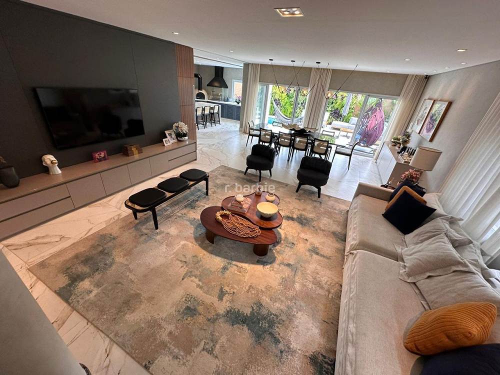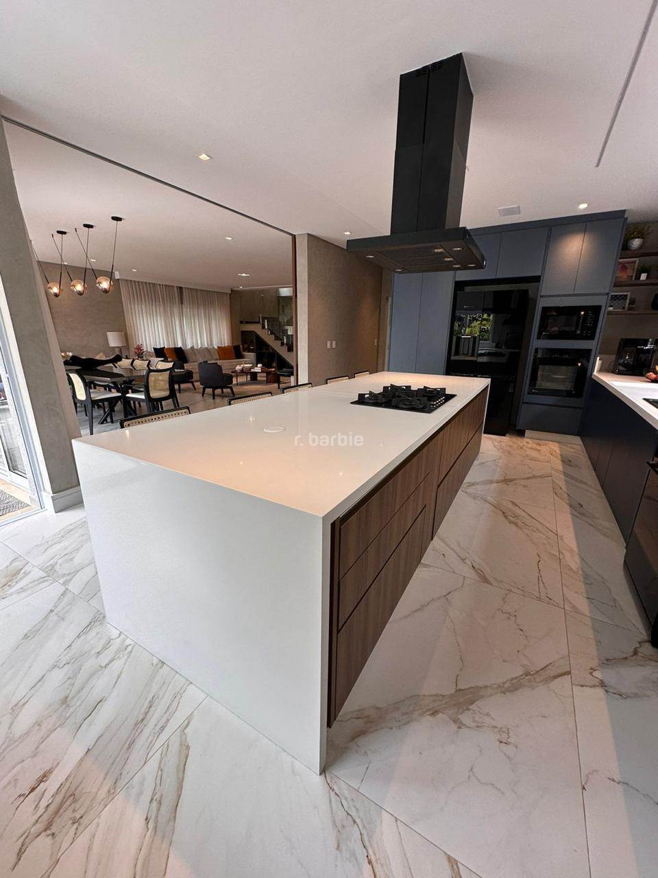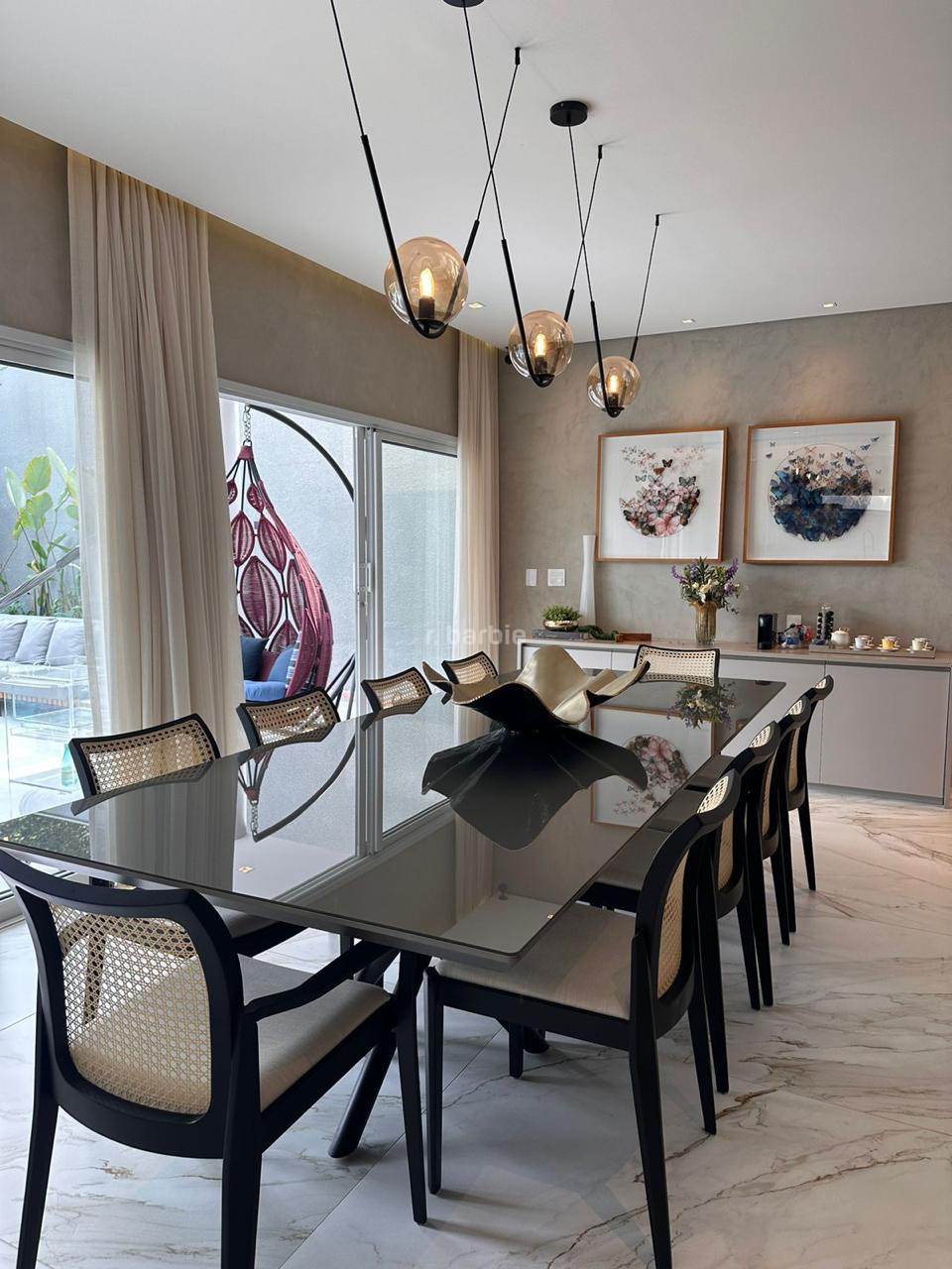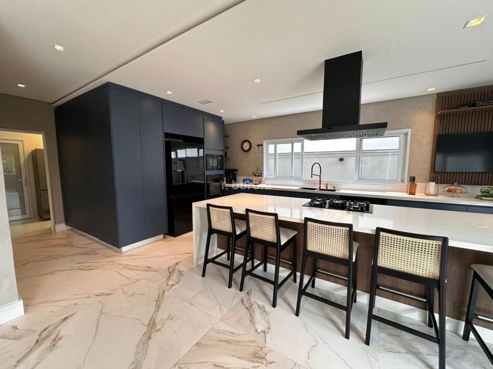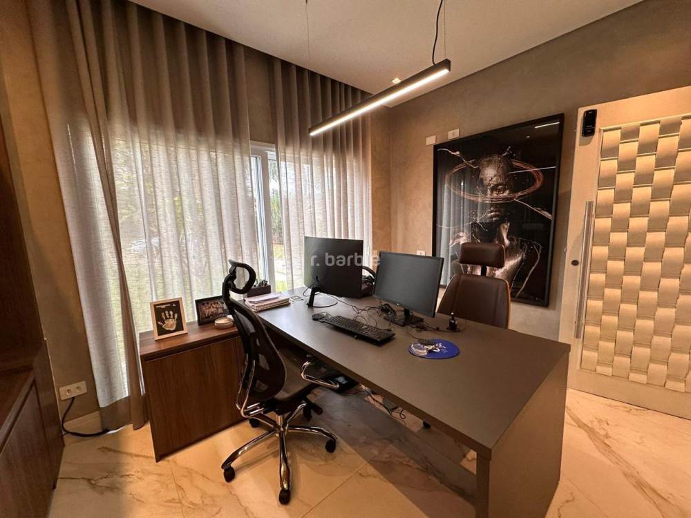 Casa com 4 dormitórios sendo 3 suítes em Alphaville, 420 metros de terreno e 452 metros de área construída, living para 4 ambientes, escritório, cozinha integrada, área gourmet com churrasqueira, piscina e 6 vagas de garagem.