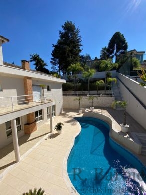 Belíssima casa com 1.190m2 de terreno e 852m2 de construção, sendo 4 amplas suítes com closet, living para 4 ambientes, área gormet integrada com piscina, jacuzzi, sauna úmida com banheiro e amplo jardim, escritório, lareira, sala íntima no piso superior, lavabo, depósito, dependência de empregada e 4 vagas de garagem cobertas.