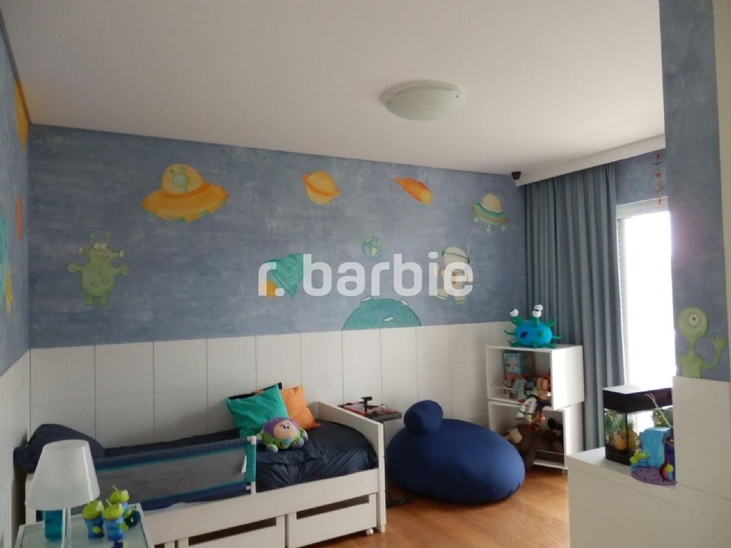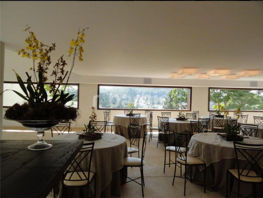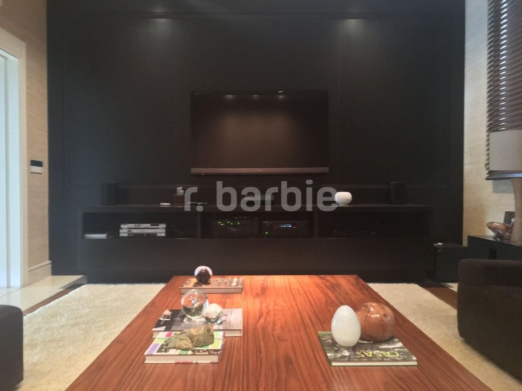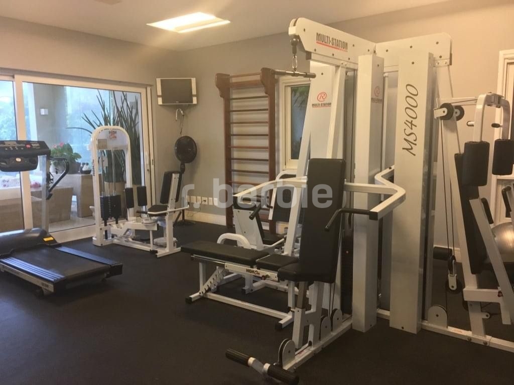 Com 1754 metros de terreno e 1054 metros de área construída, distribuído em 4 suítes sendo a master com banheiro ele/ela, varanda gourmet, piscina, academia, sauna, brinquedoteca, salão de jogos, prataria, escritório, biblioteca, salão de festas para 50 pessoas sentadas, viveiro, 2 dormitórios de serviço mais banheiro e 5 vagas de garagem.