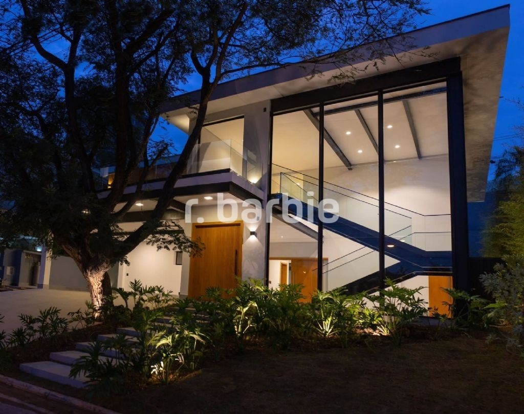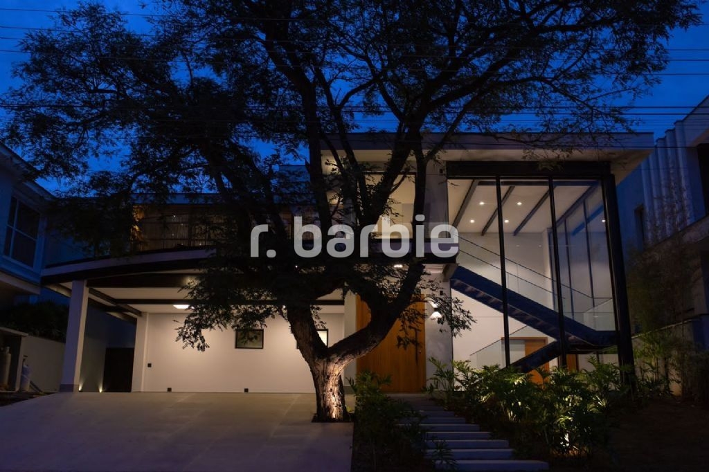 Belíssima casa recém construída, com 750 metros de terreno e 540 metros de área construída, 4 amplas suítes, living para 3 ambientes com pé direito duplo, área gourmet integrando os ambientes, piscina, sauna úmida, aquecimento solar, marcenaria completa GW premium, lareira, ar condicionado, dependência de empregada e 5 vagas de garagem.