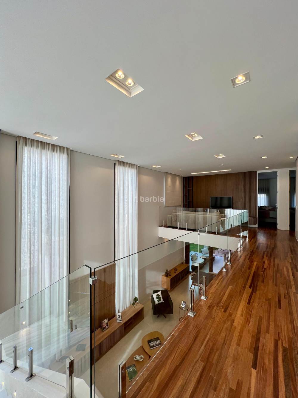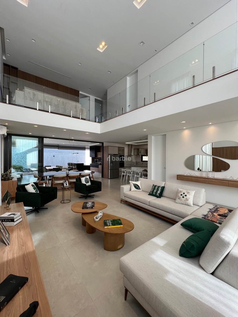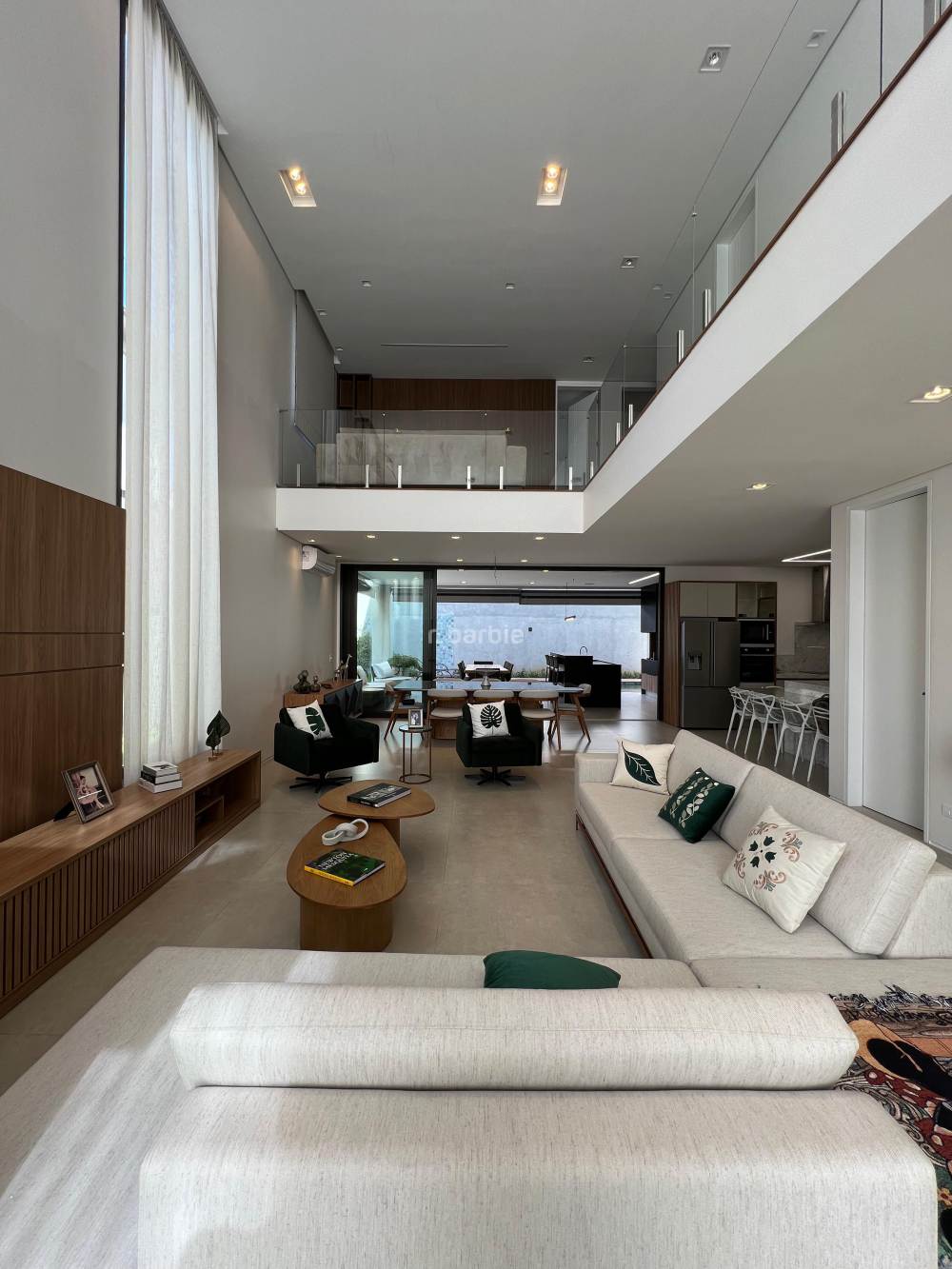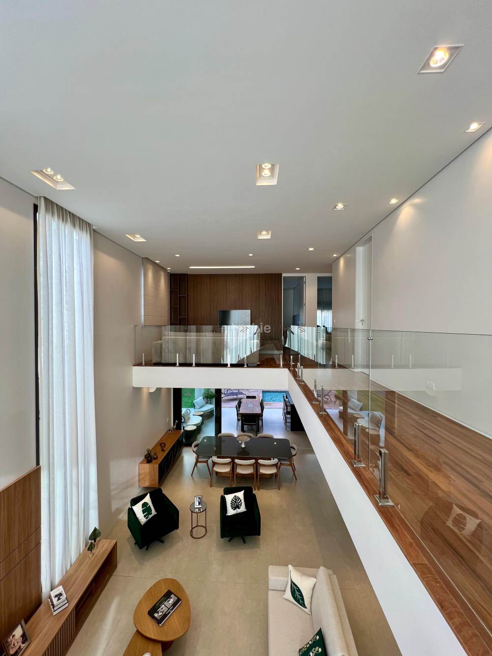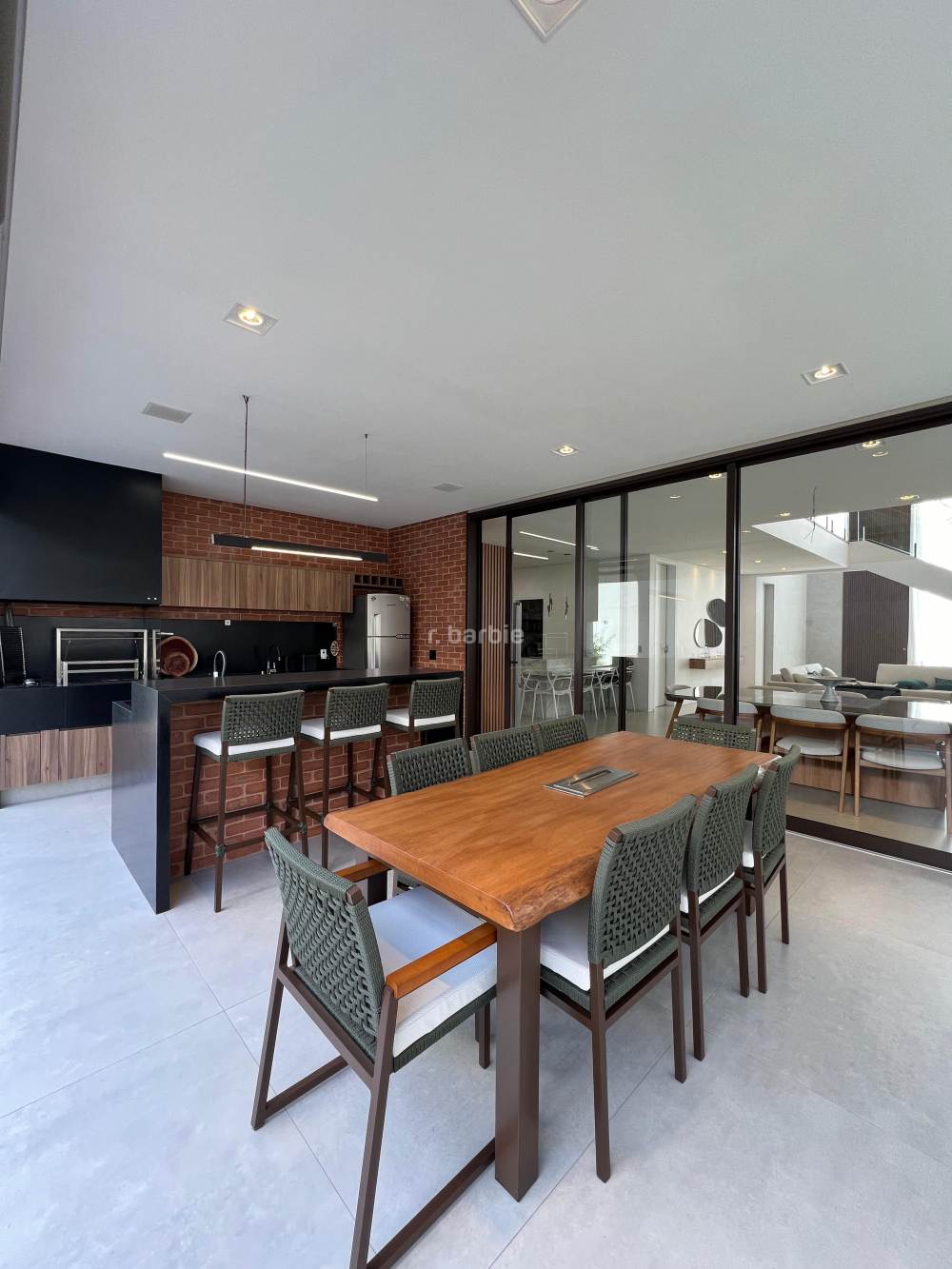 Casa recém construída com 4 suítes em Alphaville, 441 metros de terreno e 349 metros de área construída, living para 3 ambientes, cozinha ampla com armários planejados, lavabo, área gourmet com churrasqueira e ilha, piscina e 4 vagas de garagem.