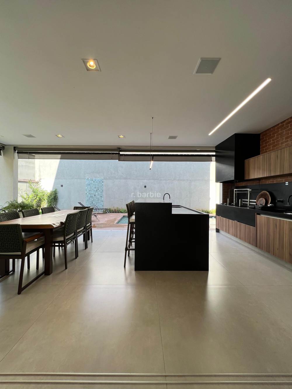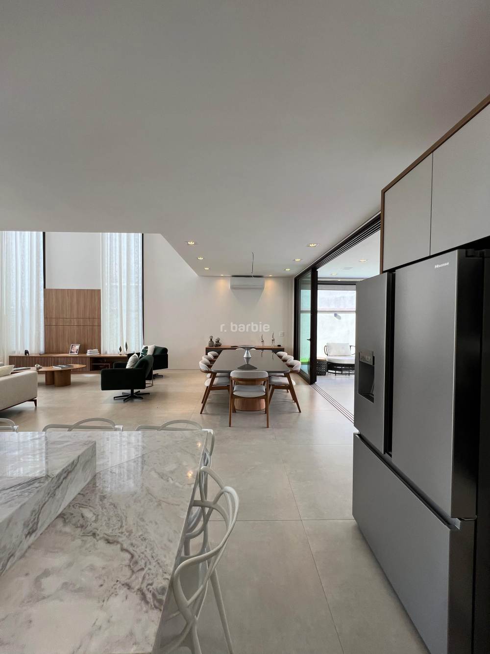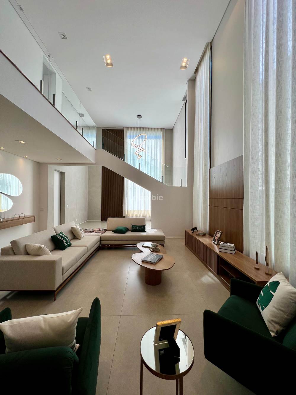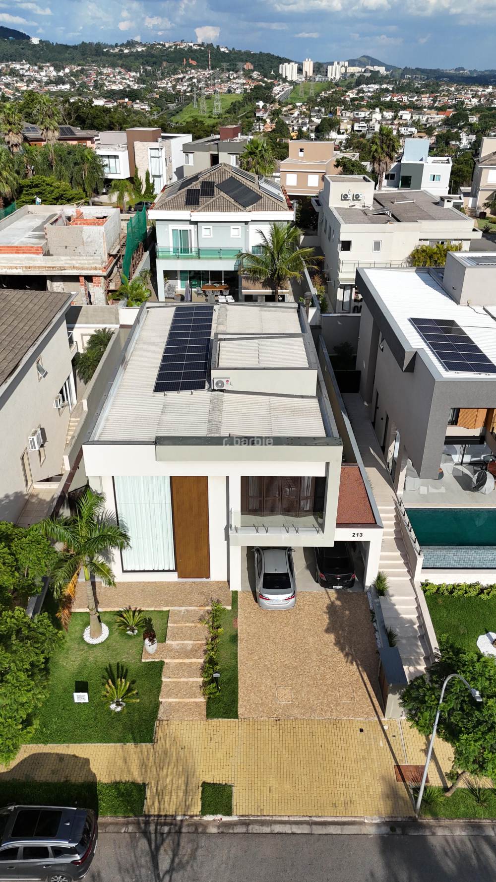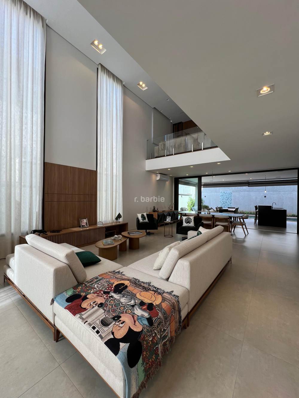 Casa recém construída com 4 suítes em Alphaville, 441 metros de terreno e 349 metros de área construída, living para 3 ambientes, cozinha ampla com armários planejados, lavabo, área gourmet com churrasqueira e ilha, piscina e 4 vagas de garagem.