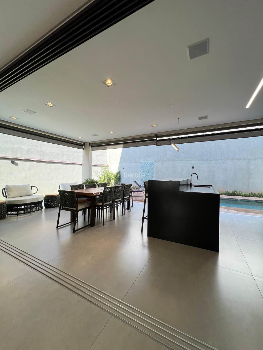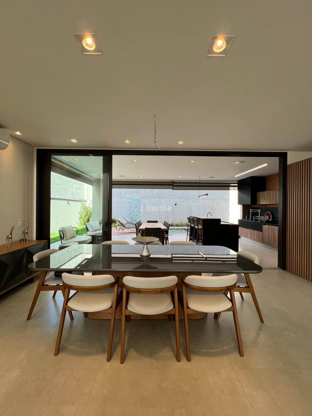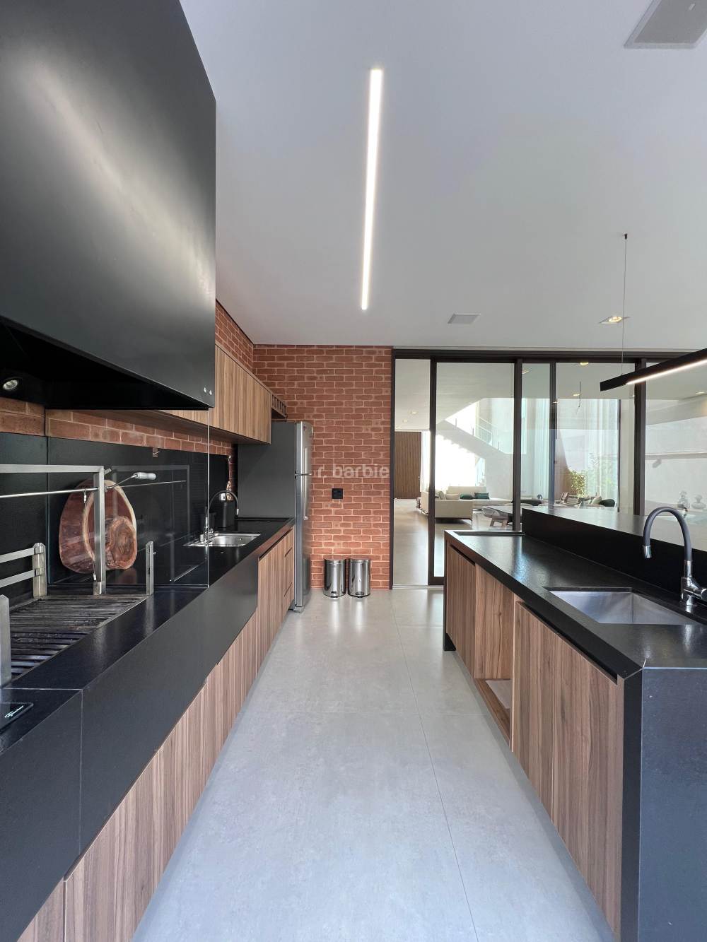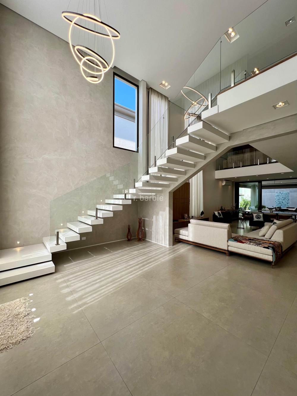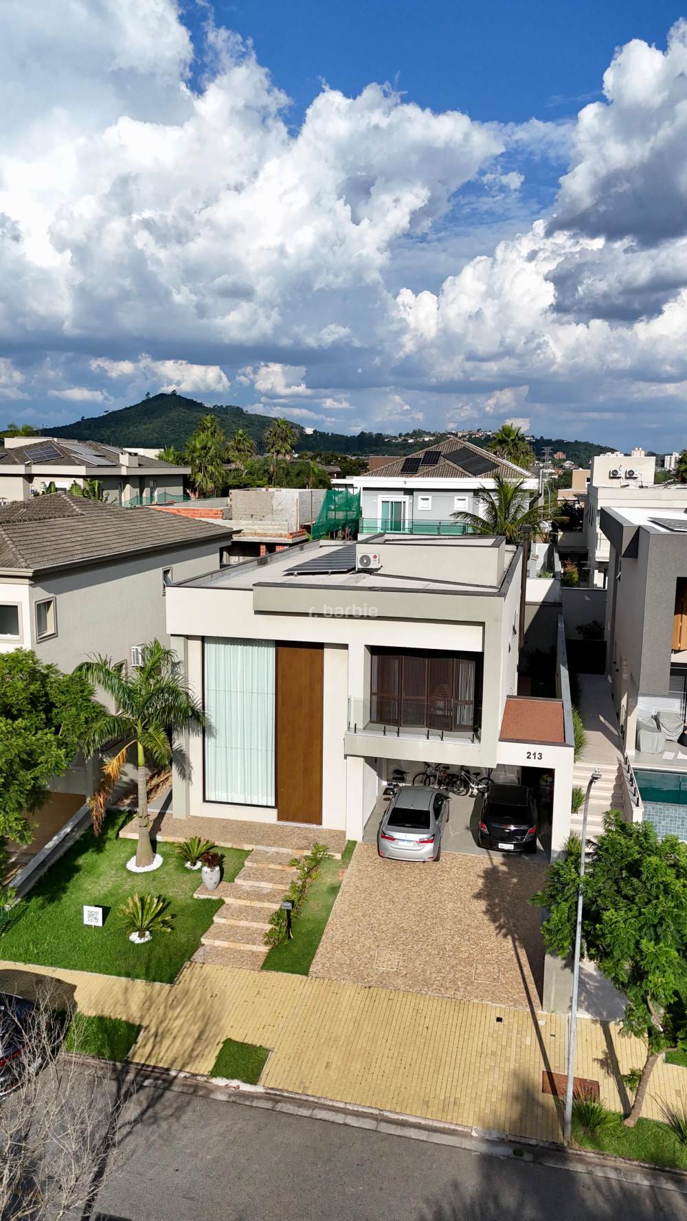 Casa recém construída com 4 suítes em Alphaville, 441 metros de terreno e 349 metros de área construída, living para 3 ambientes, cozinha ampla com armários planejados, lavabo, área gourmet com churrasqueira e ilha, piscina e 4 vagas de garagem.
