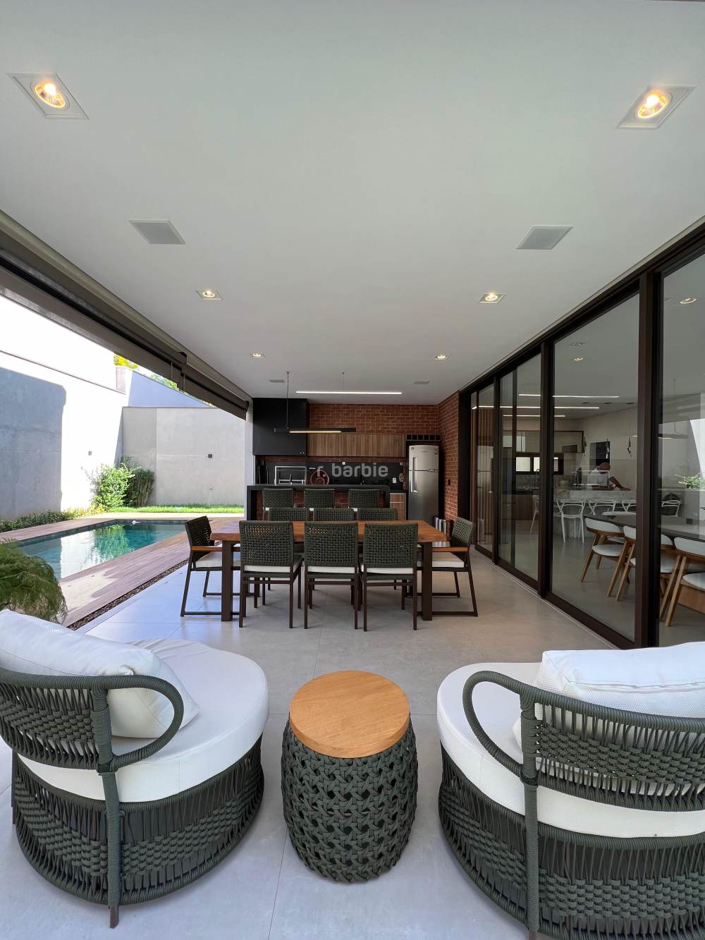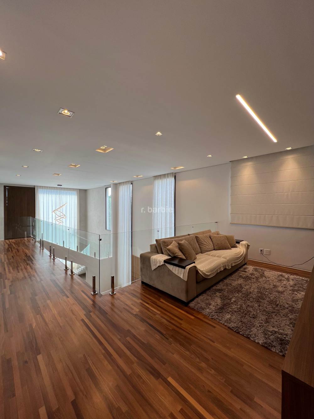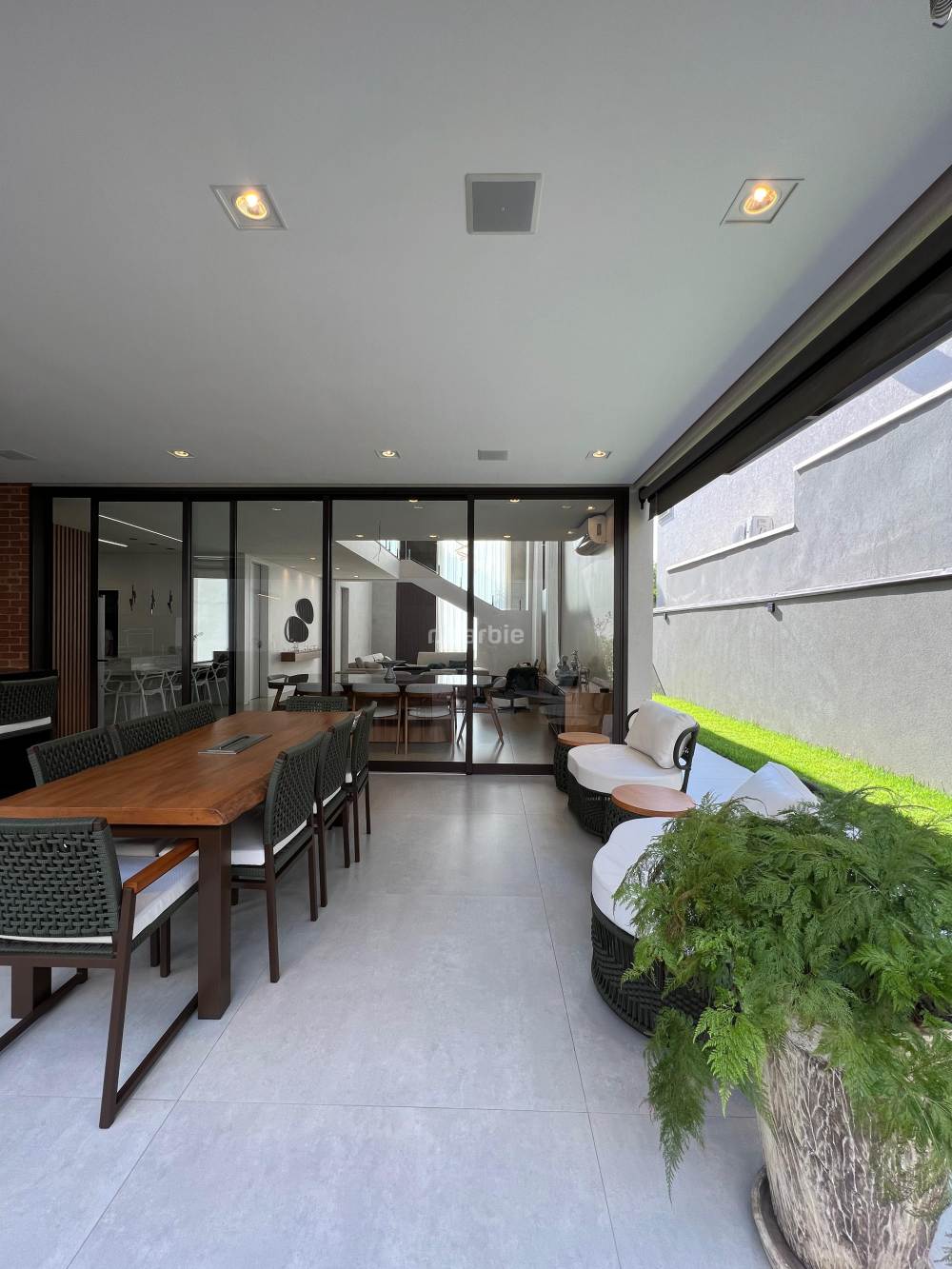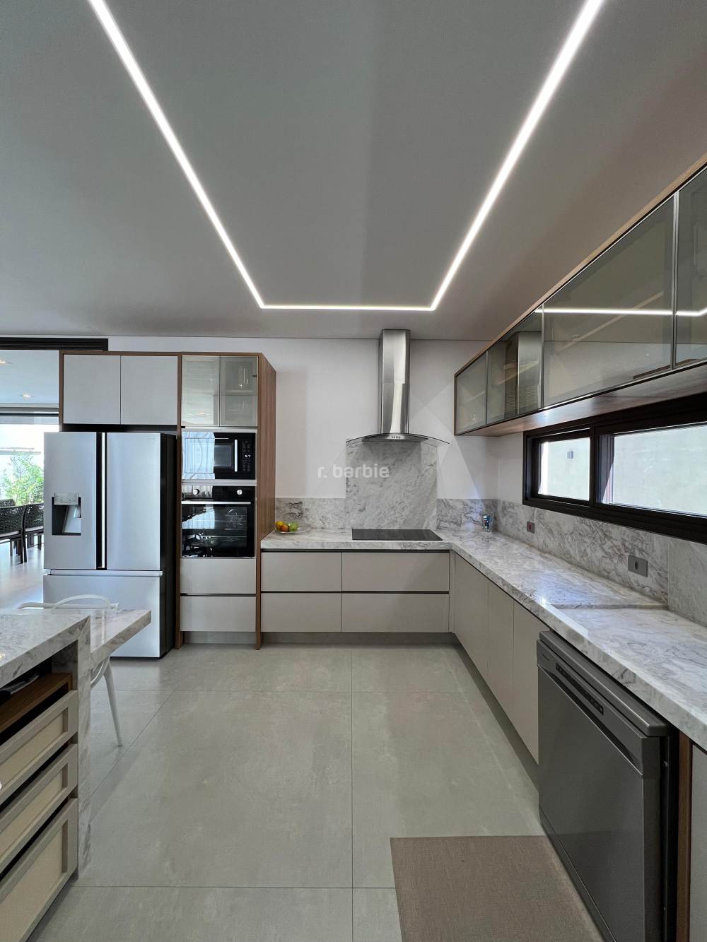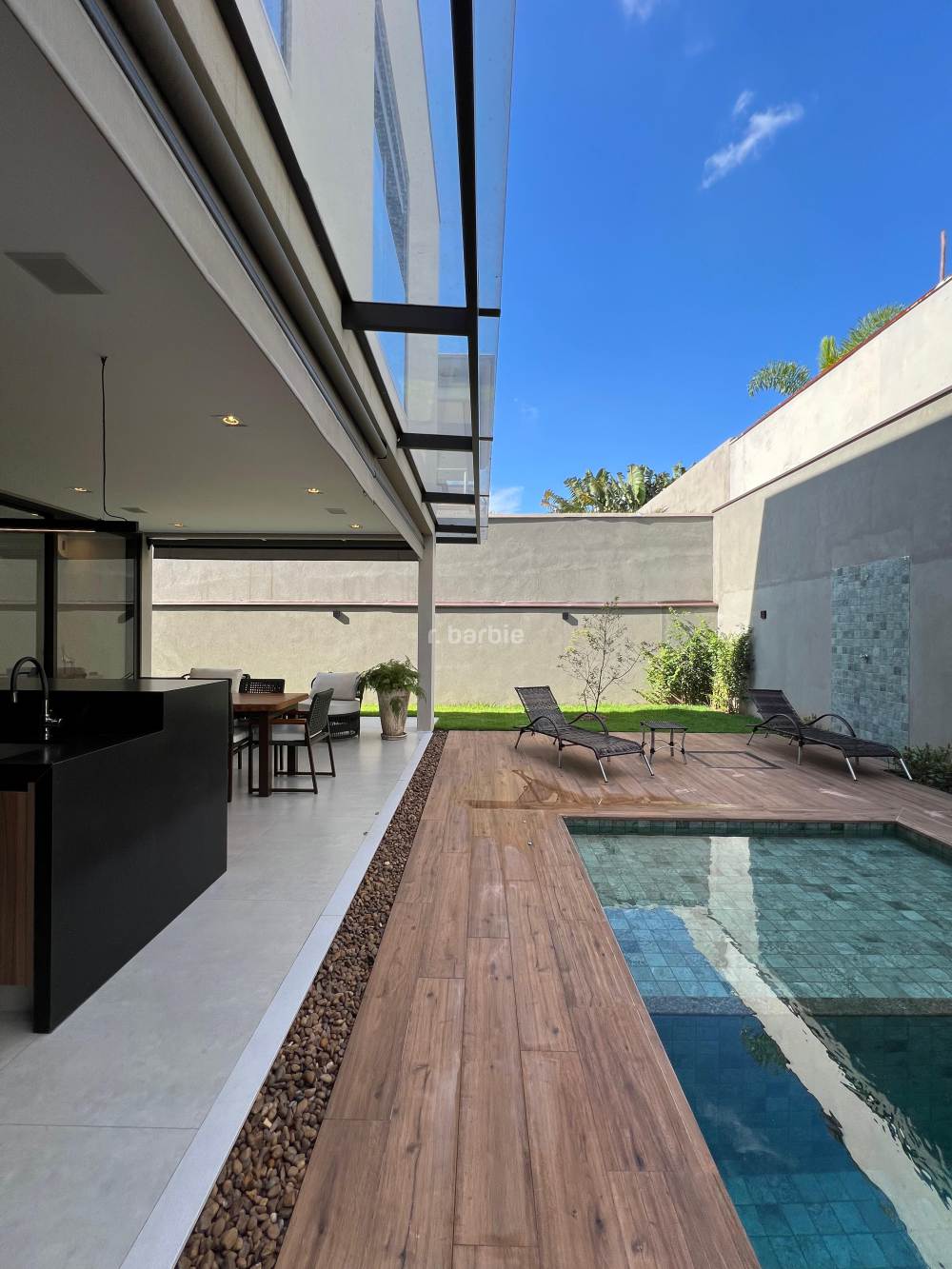 Casa recém construída com 4 suítes em Alphaville, 441 metros de terreno e 349 metros de área construída, living para 3 ambientes, cozinha ampla com armários planejados, lavabo, área gourmet com churrasqueira e ilha, piscina e 4 vagas de garagem.