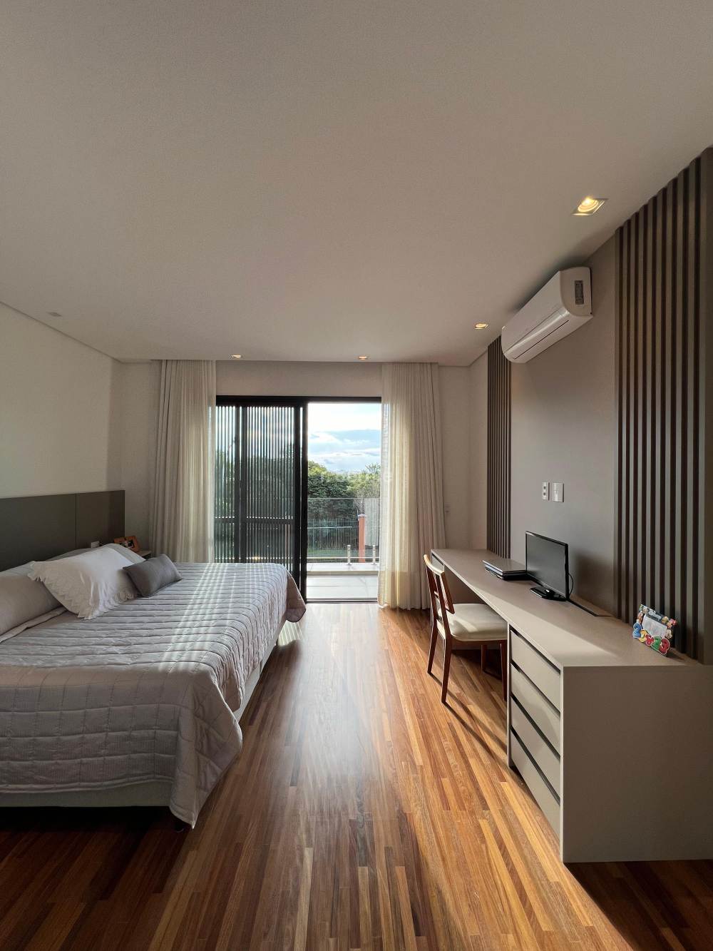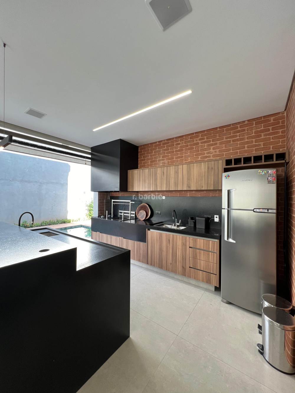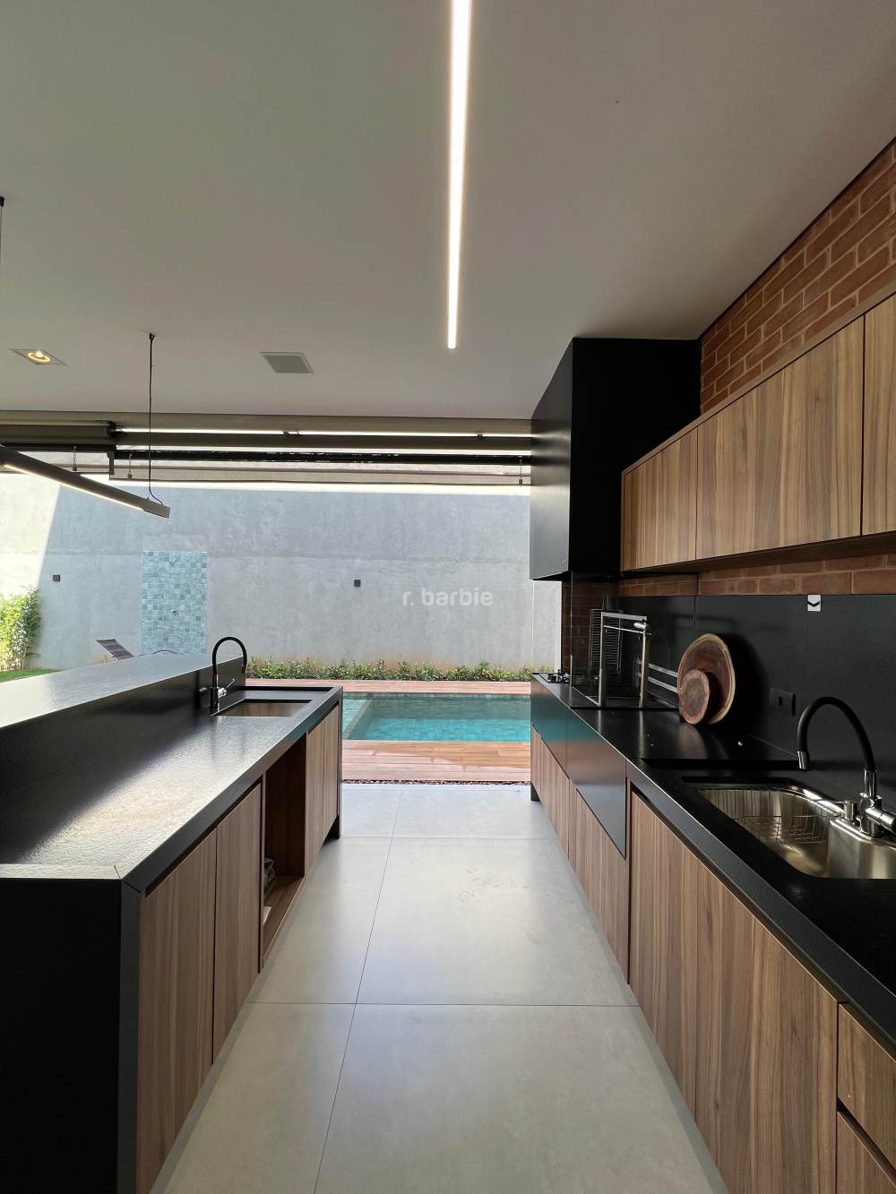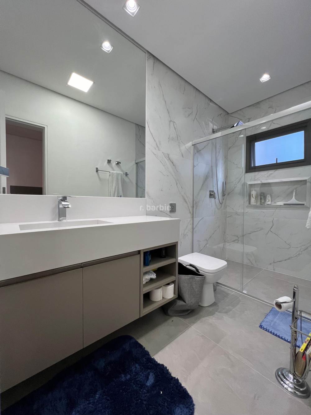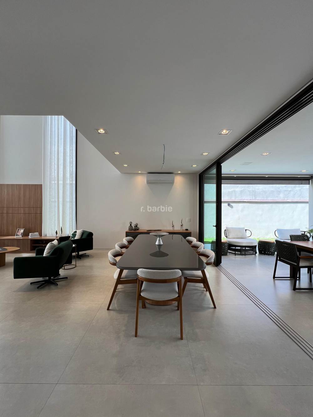 Casa recém construída com 4 suítes em Alphaville, 441 metros de terreno e 349 metros de área construída, living para 3 ambientes, cozinha ampla com armários planejados, lavabo, área gourmet com churrasqueira e ilha, piscina e 4 vagas de garagem.