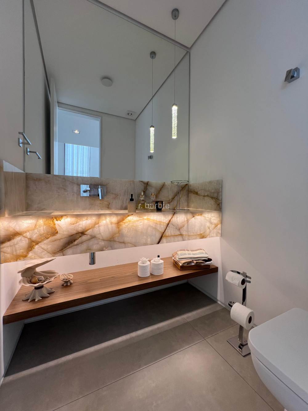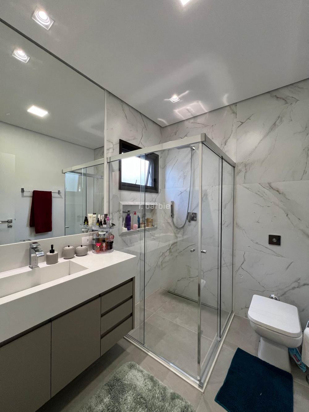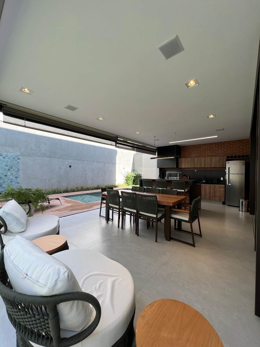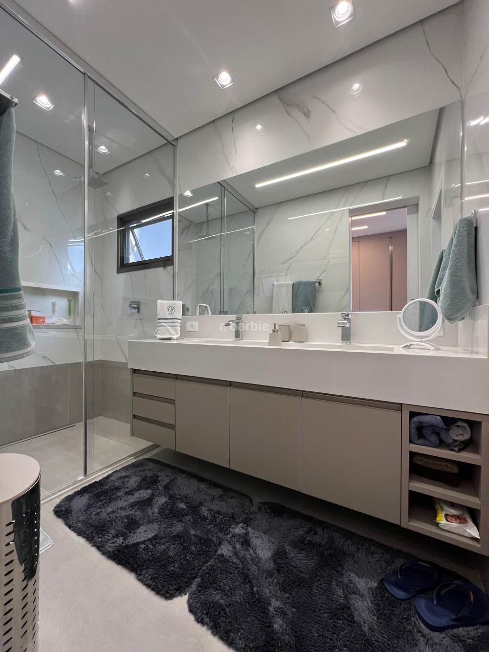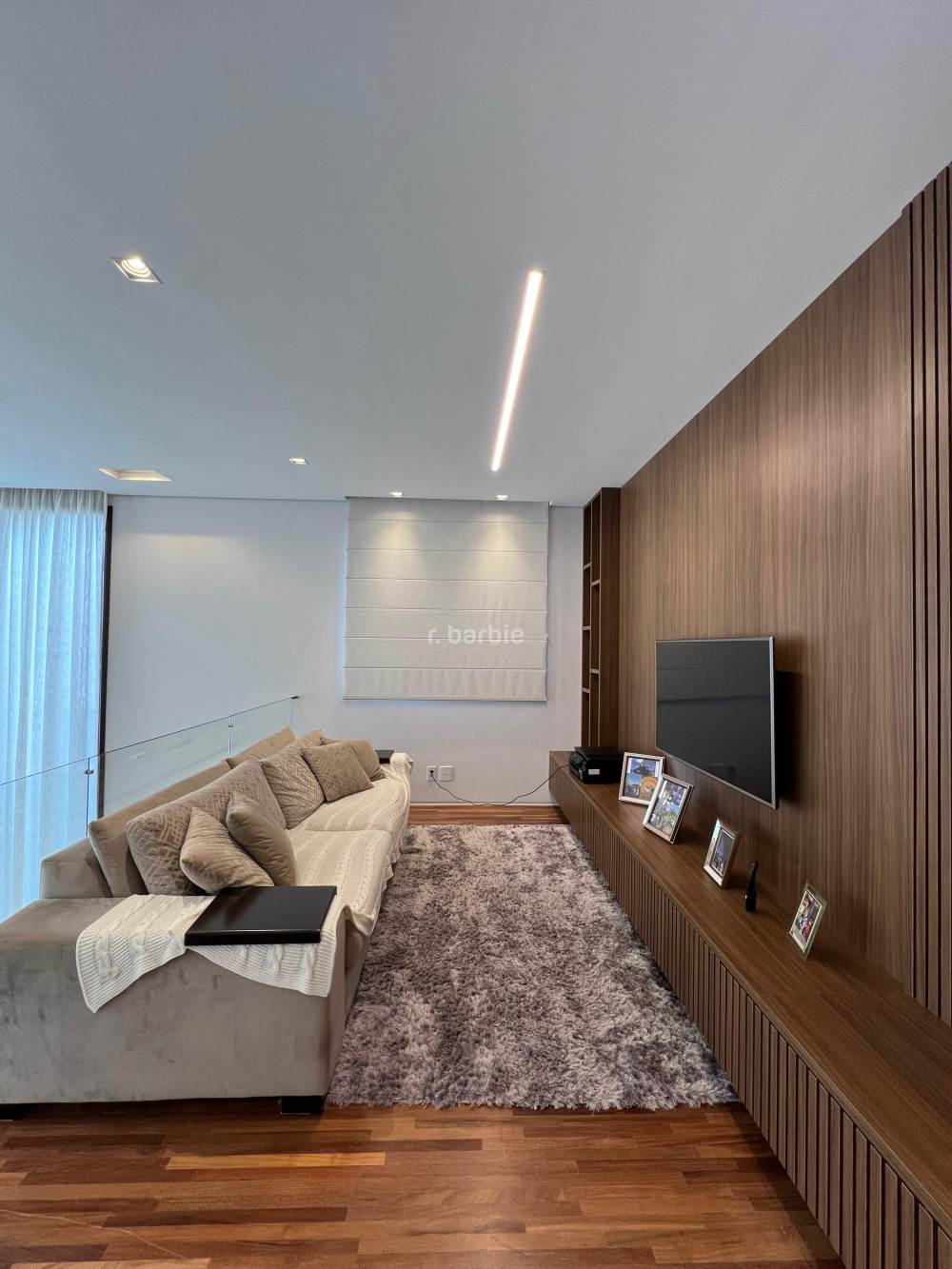 Casa recém construída com 4 suítes em Alphaville, 441 metros de terreno e 349 metros de área construída, living para 3 ambientes, cozinha ampla com armários planejados, lavabo, área gourmet com churrasqueira e ilha, piscina e 4 vagas de garagem.