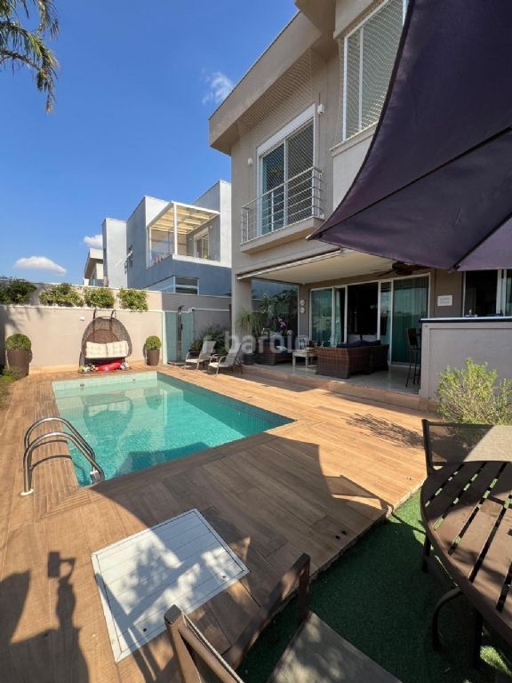 Excelente casa, venda porteira fechada, com 441 metros de terreno e 350 metros de área construída, 4 suítes sendo master com banheira e closet, living para 3 ambientes, escritório, cozinha com armários planejados, lavanderia, lavabo, área gourmet com churrasqueira, piscina e 4 vagas de garagem