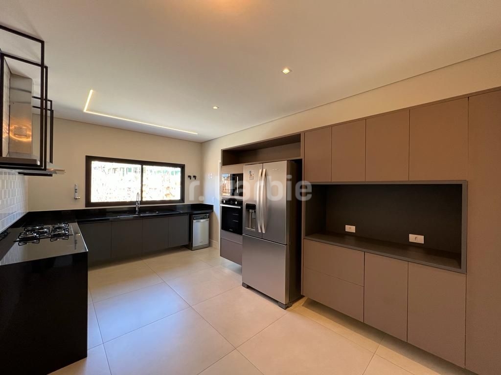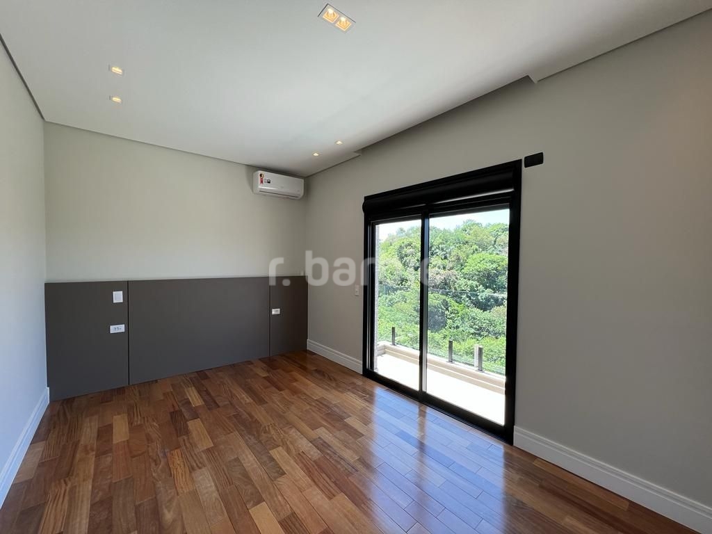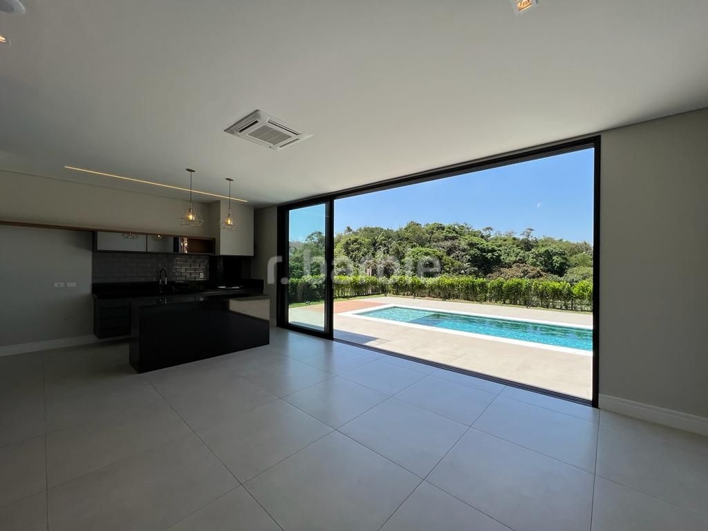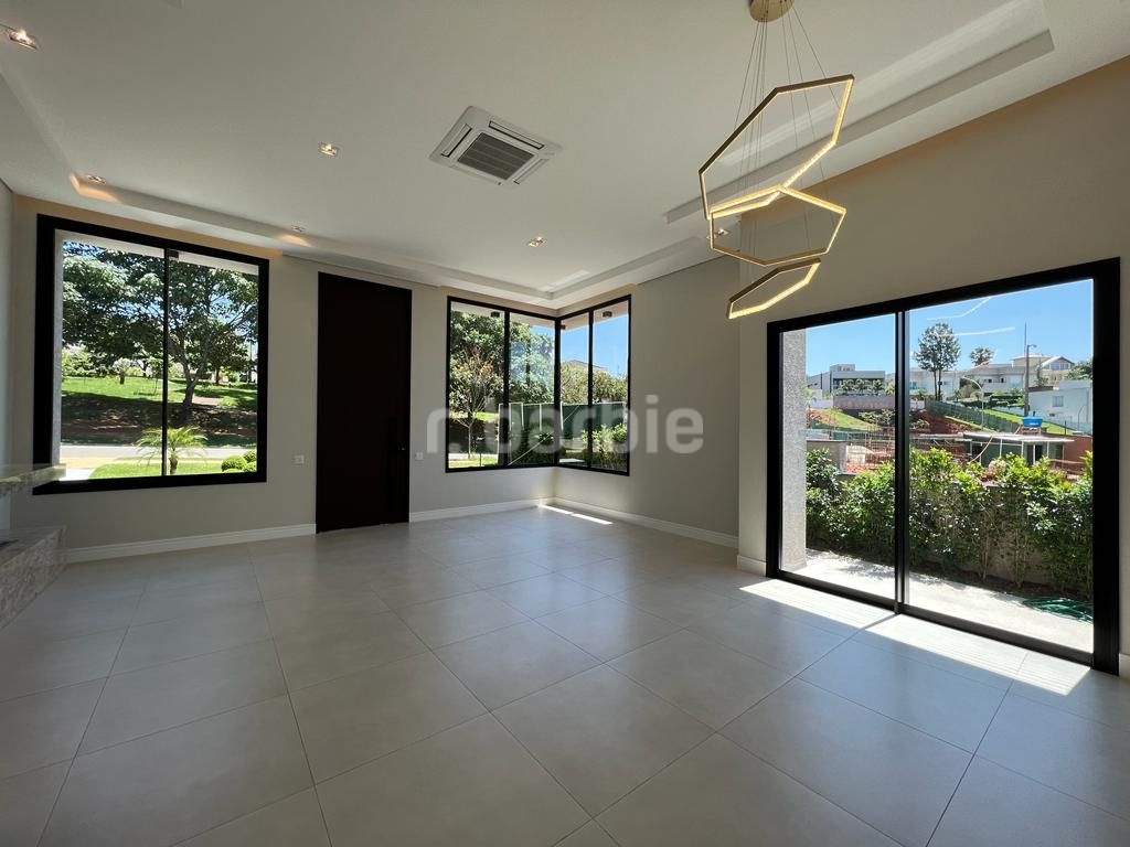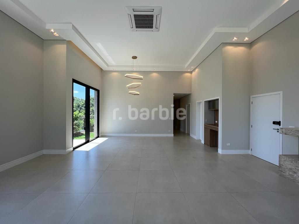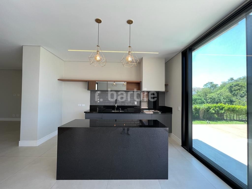 Linda casa recém construída com 691 metros de terreno e 428 metros de área construída, 4 amplas 4 amplas suítes, living para 3 ambientes com pé direito, ampla área gourmet integrando os ambientes, piscina com prainha e vista para reserva, escritório, aspiração central, closet, lareira, lavabo, dependência de empregada e 6 vagas de garagem.