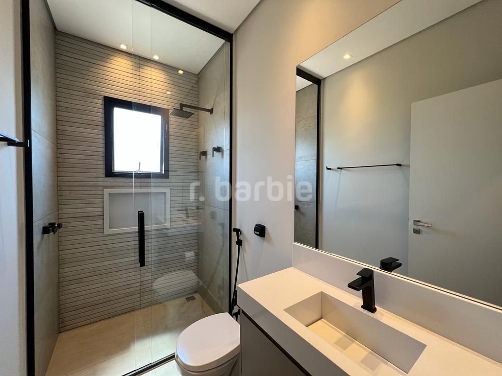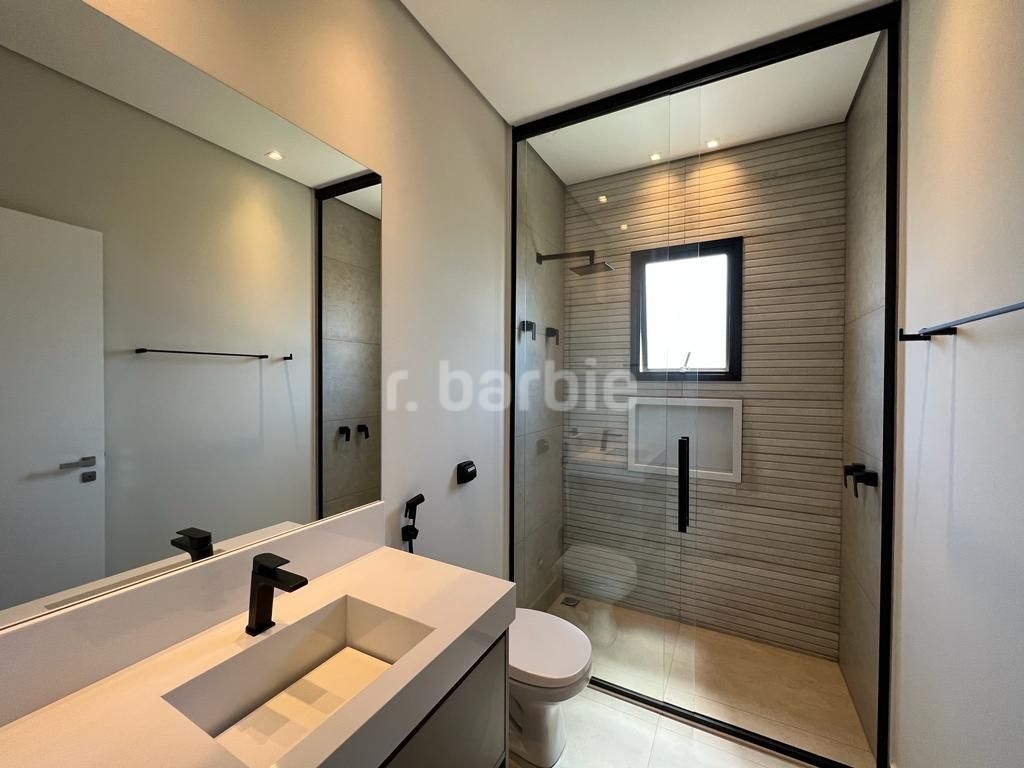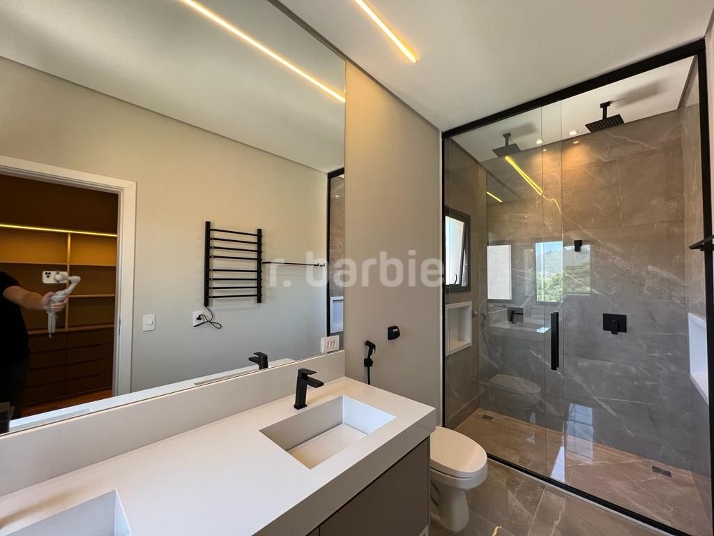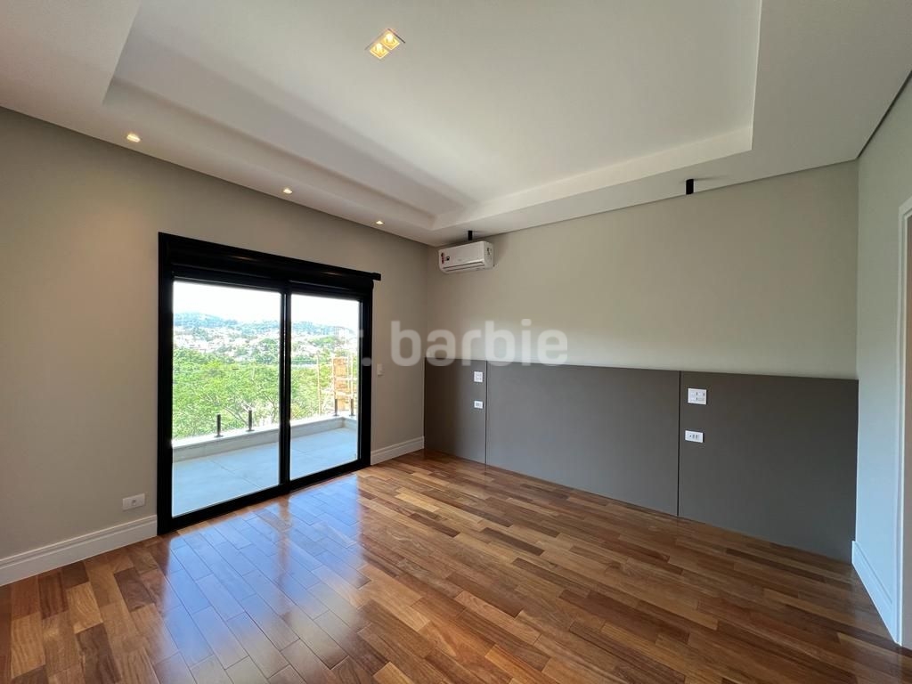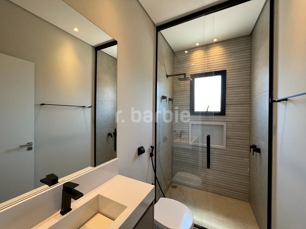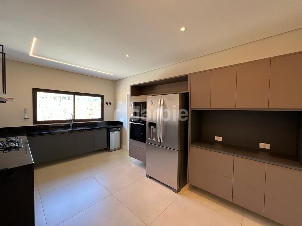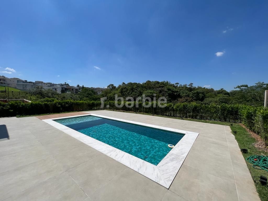 Linda casa recém construída com 691 metros de terreno e 428 metros de área construída, 4 amplas 4 amplas suítes, living para 3 ambientes com pé direito, ampla área gourmet integrando os ambientes, piscina com prainha e vista para reserva, escritório, aspiração central, closet, lareira, lavabo, dependência de empregada e 6 vagas de garagem.