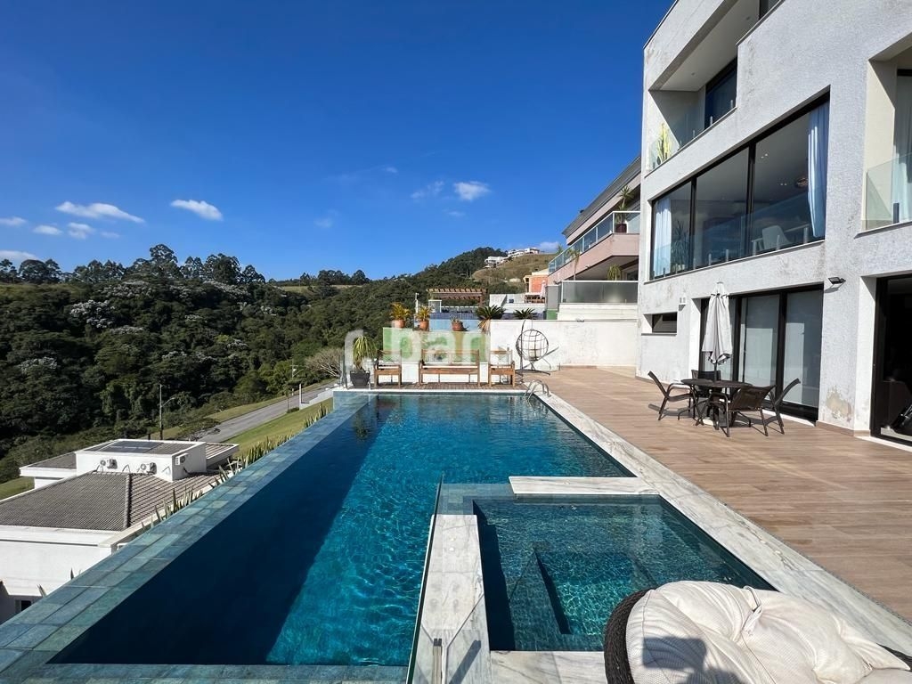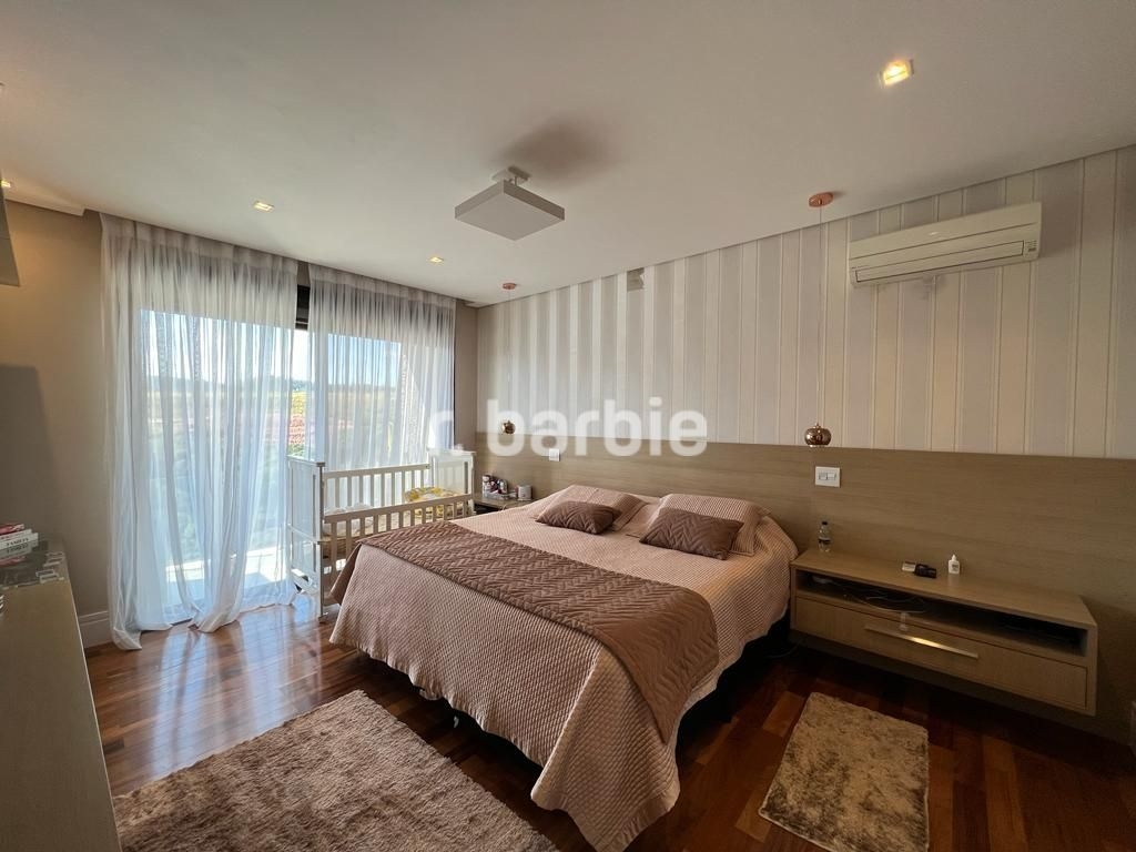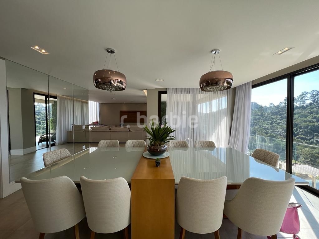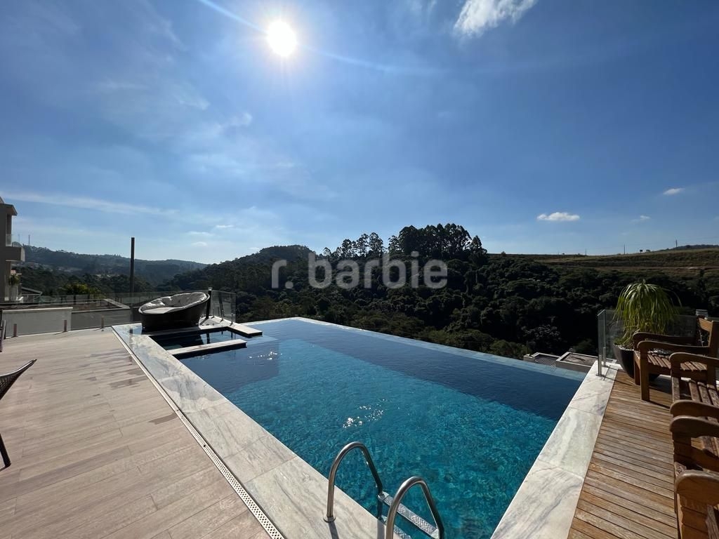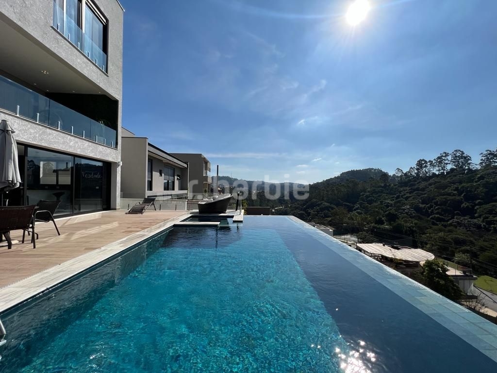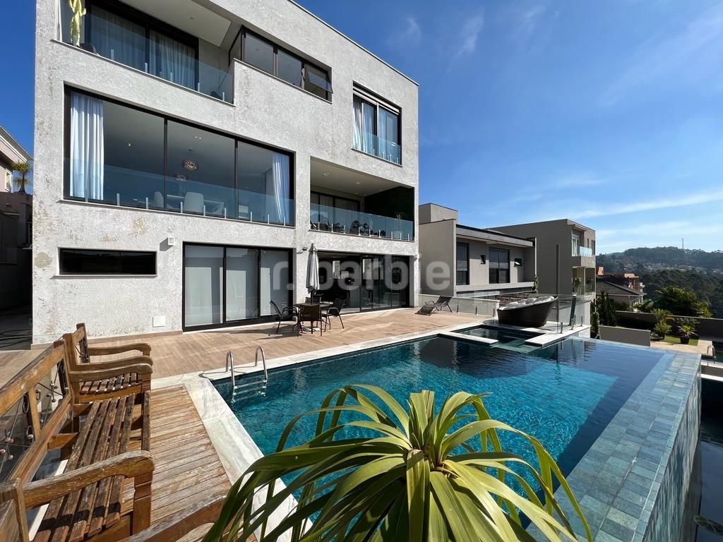 Excelente casa com 640 metros de terreno e 640 metros de área construída, sendo 4 suítes, suíte master com amplo closet, varanda e banheira de hidromassagem, living para 4 ambientes, repleta de armários, acabamentos de primeira qualidade, ar condicionado em todos os ambientes, escritório, jardim de inverno, suíte de empregada, shaft de roupas para lavar, cozinha de apoio, todos dos banheiros com clara boia, sistema de água de reuso, aquecimento solar, sistema de som integrado, área gourmet com cozinha privativa, espaço para adega, sauna seca, projetor, piscina com borda infinita com belíssima vista para mata de preservação e 8 vagas de garagem.