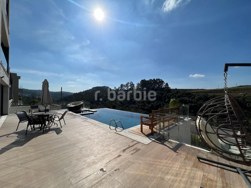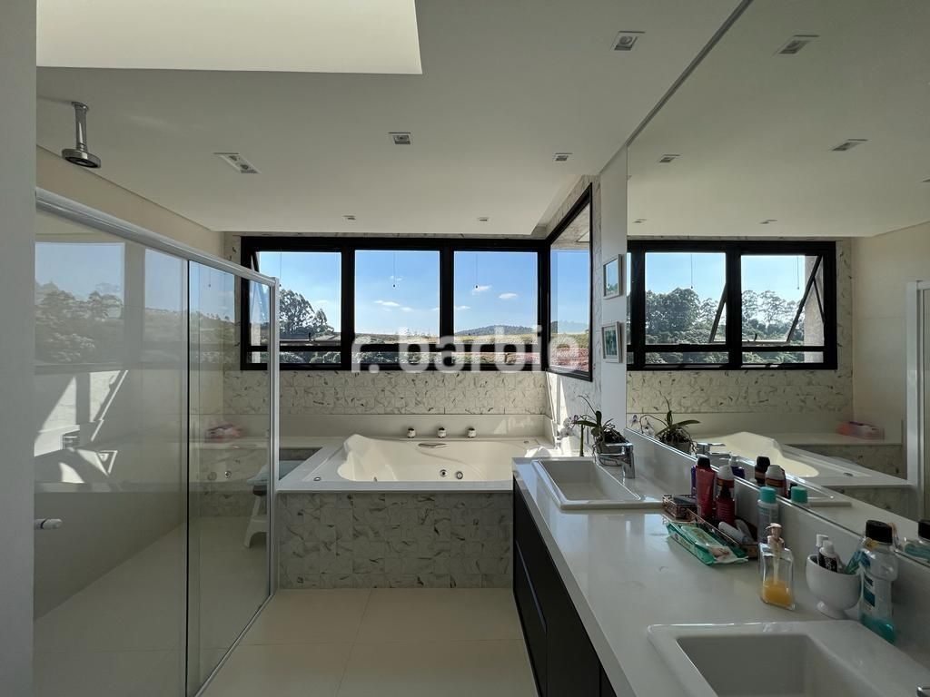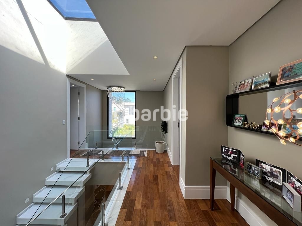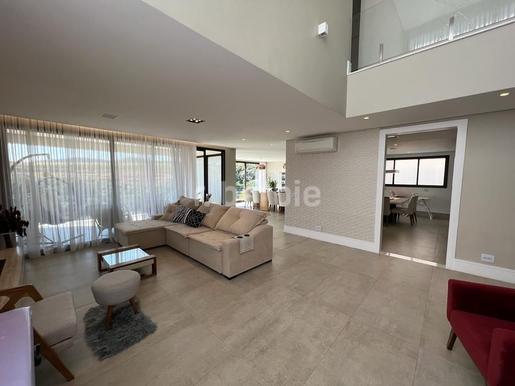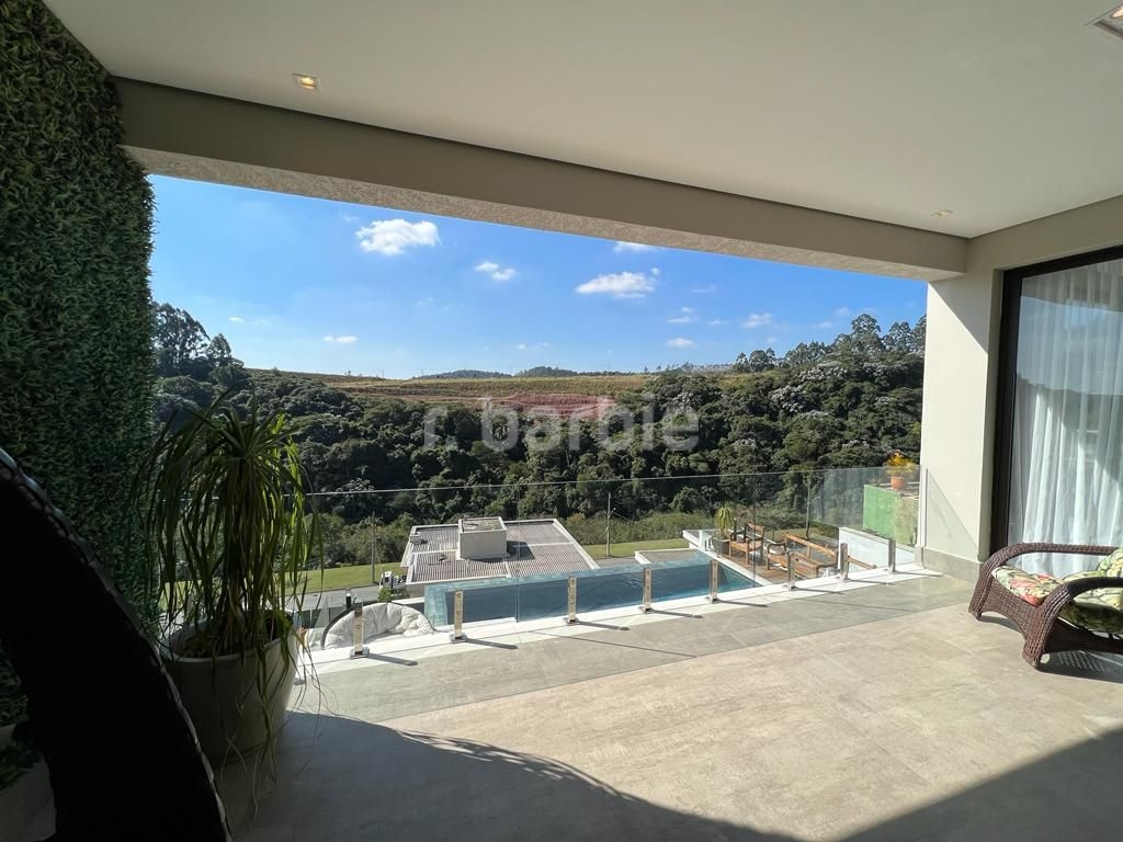 Excelente casa com 640 metros de terreno e 640 metros de área construída, sendo 4 suítes, suíte master com amplo closet, varanda e banheira de hidromassagem, living para 4 ambientes, repleta de armários, acabamentos de primeira qualidade, ar condicionado em todos os ambientes, escritório, jardim de inverno, suíte de empregada, shaft de roupas para lavar, cozinha de apoio, todos dos banheiros com clara boia, sistema de água de reuso, aquecimento solar, sistema de som integrado, área gourmet com cozinha privativa, espaço para adega, sauna seca, projetor, piscina com borda infinita com belíssima vista para mata de preservação e 8 vagas de garagem.