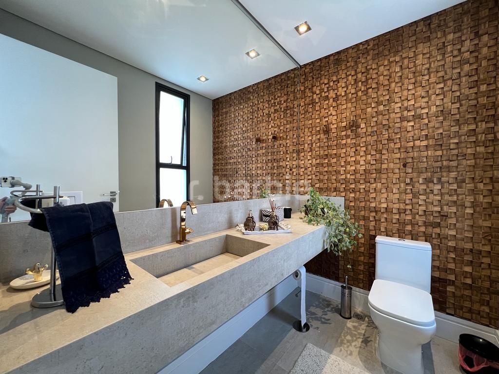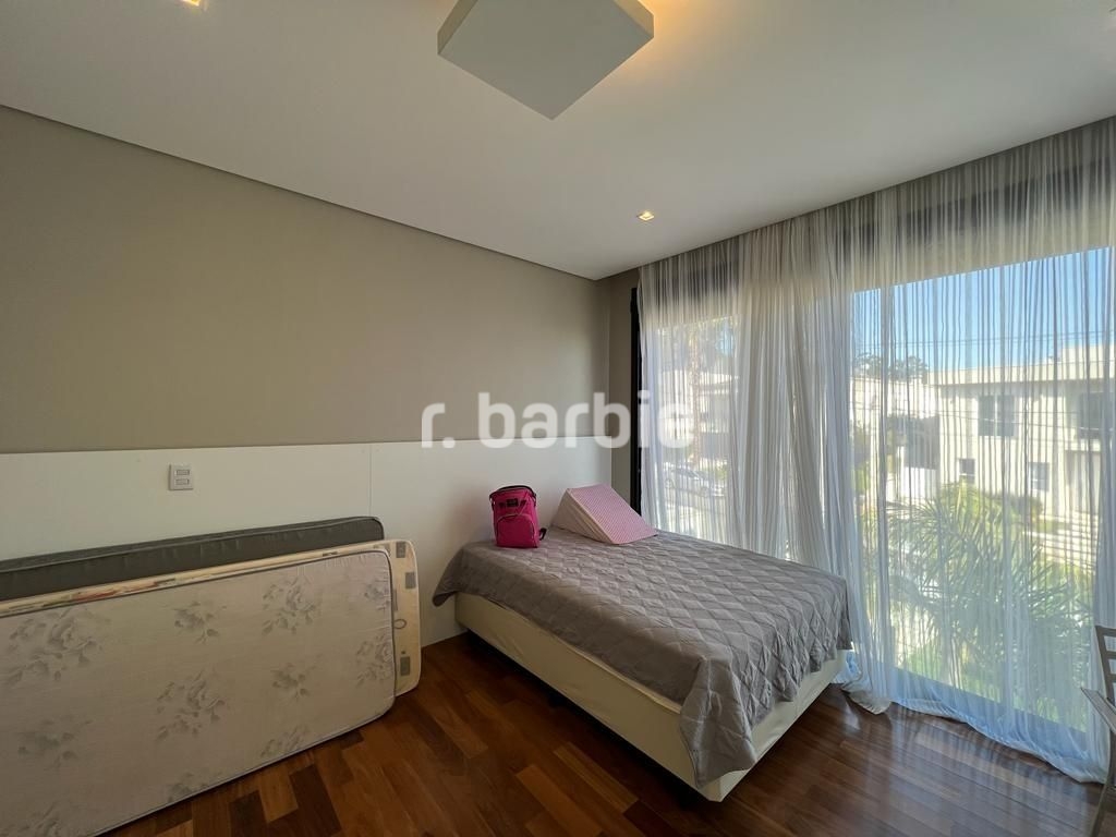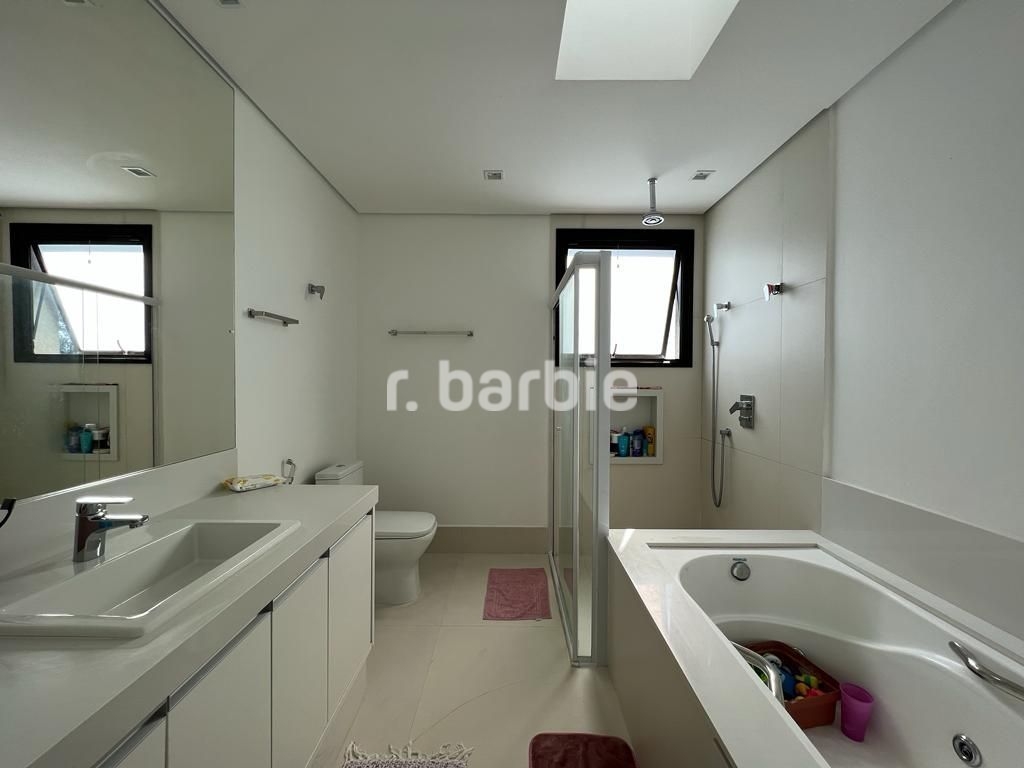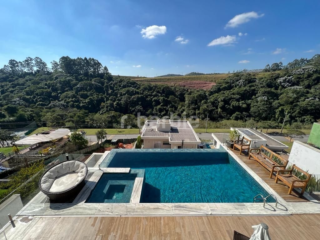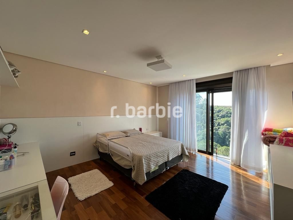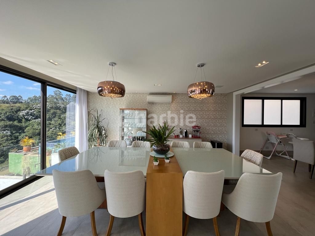 Excelente casa com 640 metros de terreno e 640 metros de área construída, sendo 4 suítes, suíte master com amplo closet, varanda e banheira de hidromassagem, living para 4 ambientes, repleta de armários, acabamentos de primeira qualidade, ar condicionado em todos os ambientes, escritório, jardim de inverno, suíte de empregada, shaft de roupas para lavar, cozinha de apoio, todos dos banheiros com clara boia, sistema de água de reuso, aquecimento solar, sistema de som integrado, área gourmet com cozinha privativa, espaço para adega, sauna seca, projetor, piscina com borda infinita com belíssima vista para mata de preservação e 8 vagas de garagem.