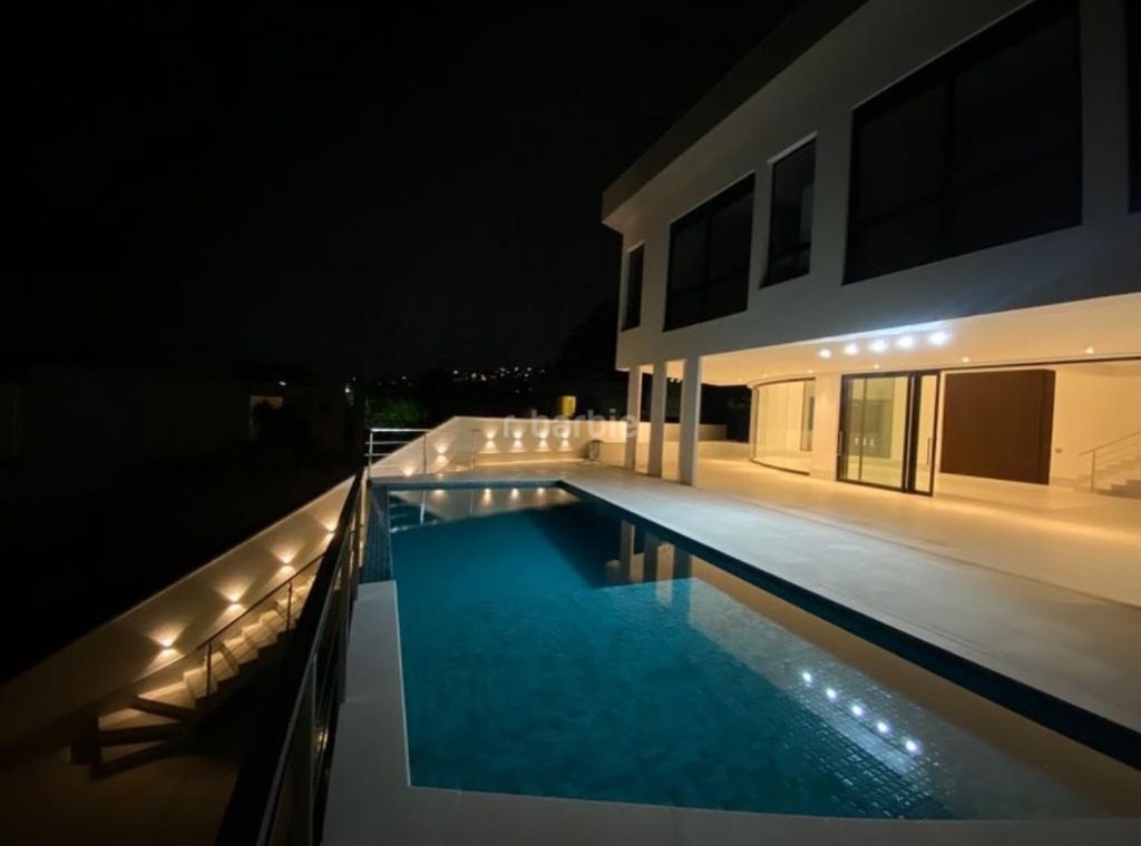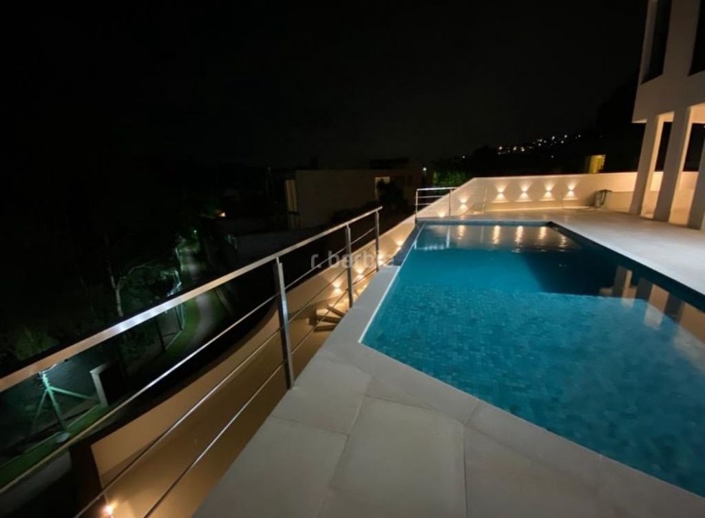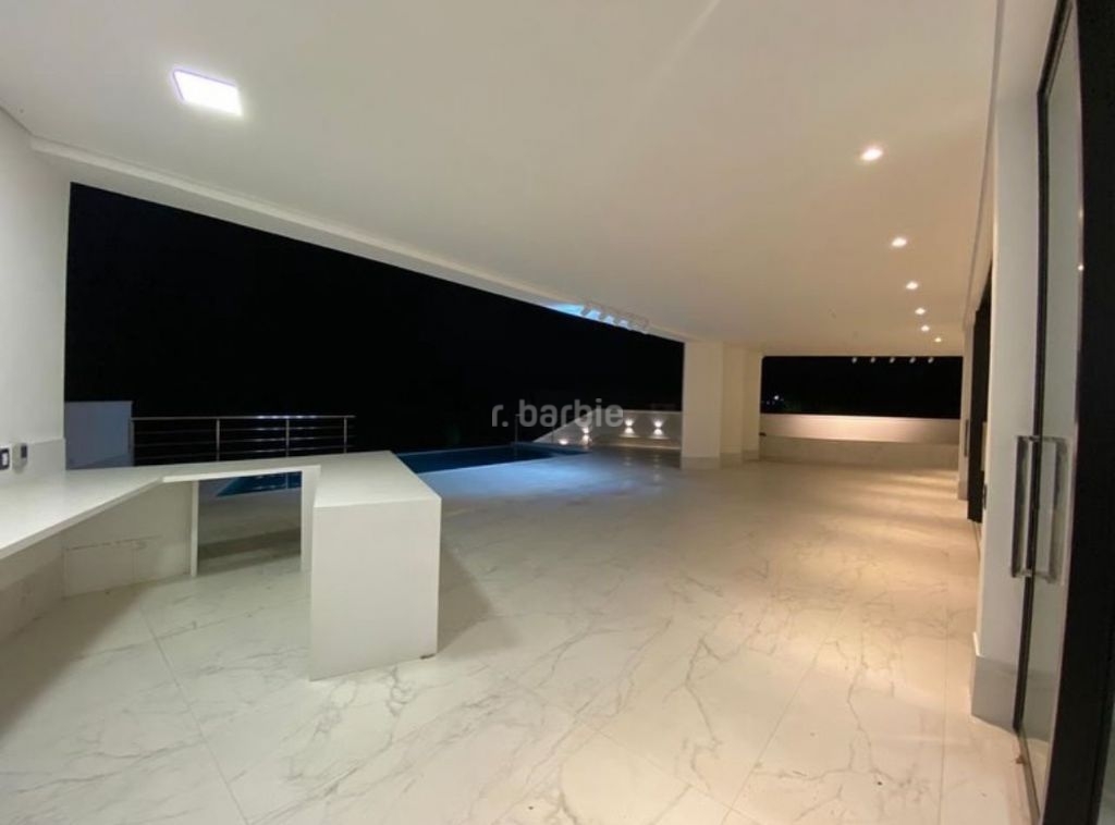 Casa em Alphaville, recém construída com 606 metros de terreno e 525 metros de área construída, 4 suítes sendo master com banheira, living integrado para 4 ambientes, cozinha ampla, 7 banheiros, lavanderia, área gourmet, piscina com borda infinita e 4 vagas de garagem.