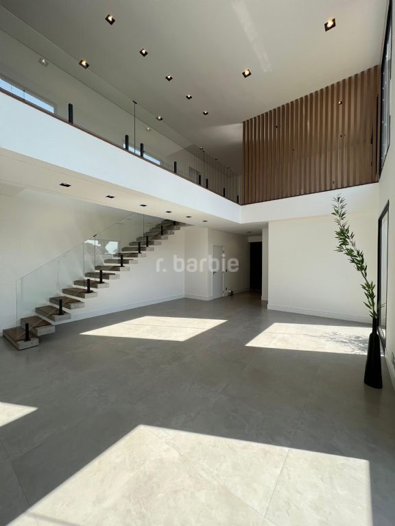 Casa em Alphaville recém construída com 465 metros de terreno e 399 metros de área construída, 4 suítes com varanda, sendo master com amplo closet, pia e ducha dupla e banheira vitoriana, living integrado para 3 ambientes, cozinha em conceito aberto, lavanderia, 7 banheiros, área gourmet, piscina e 4 vagas de garagem.