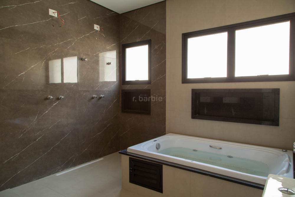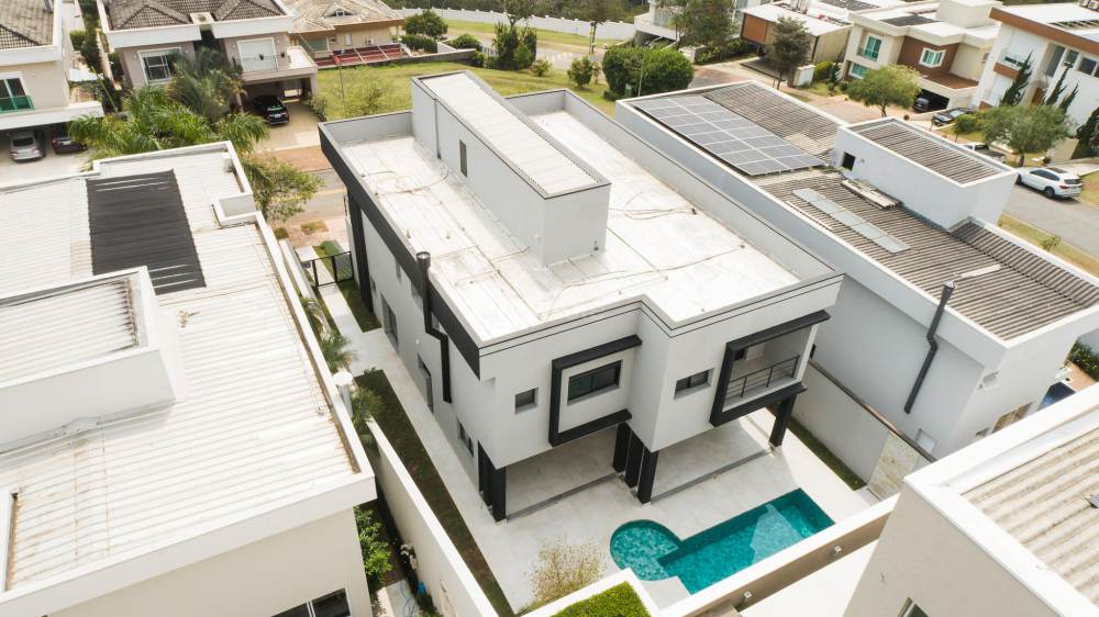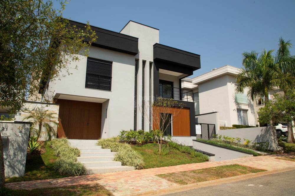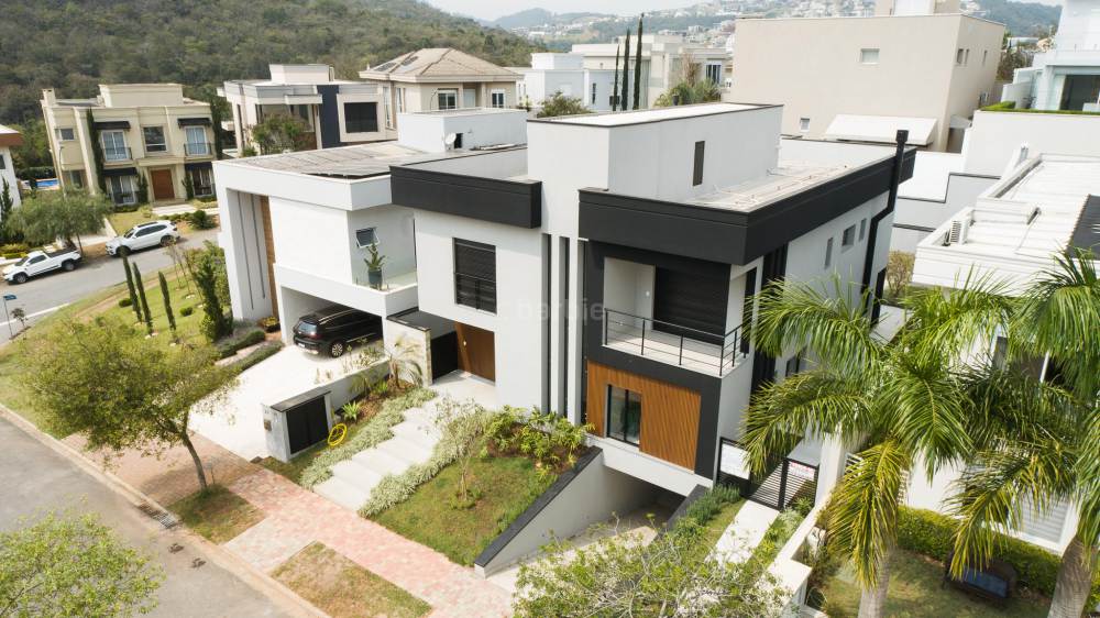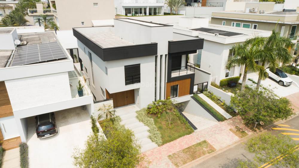 Casa recém construída em Alphaville, 4 suítes sendo master com amplo closet e banheiro com hidromassagem, 480 metros de terreno e 525 metros de área construída, living integrado para 3 ambientes, cozinha integrada com ilha central, despensa, lavanderia, escritório com banheiro, área gourmet com churrasqueira, piscina com infra para aquecimento a gás ou elétrico, todas as suítes com persianas blackout automáticas e infra para ar condicionado, deposito e 6 vagas de garagem.