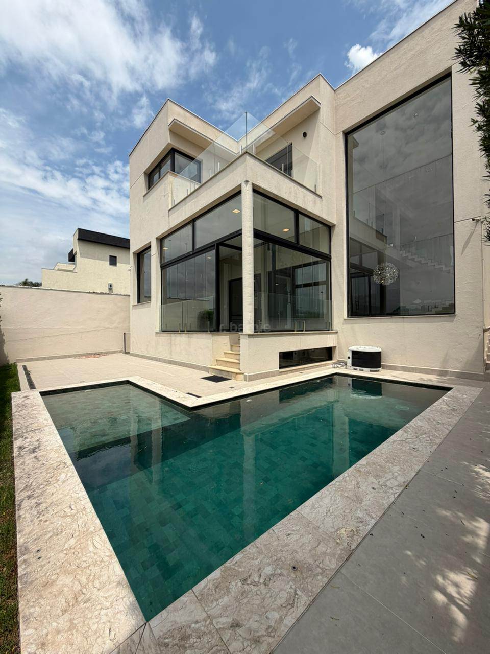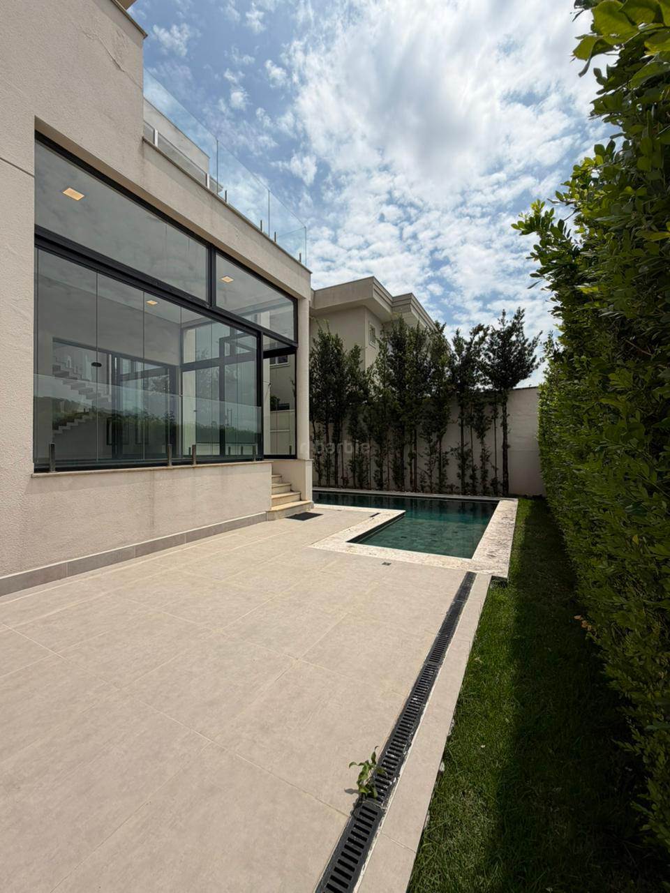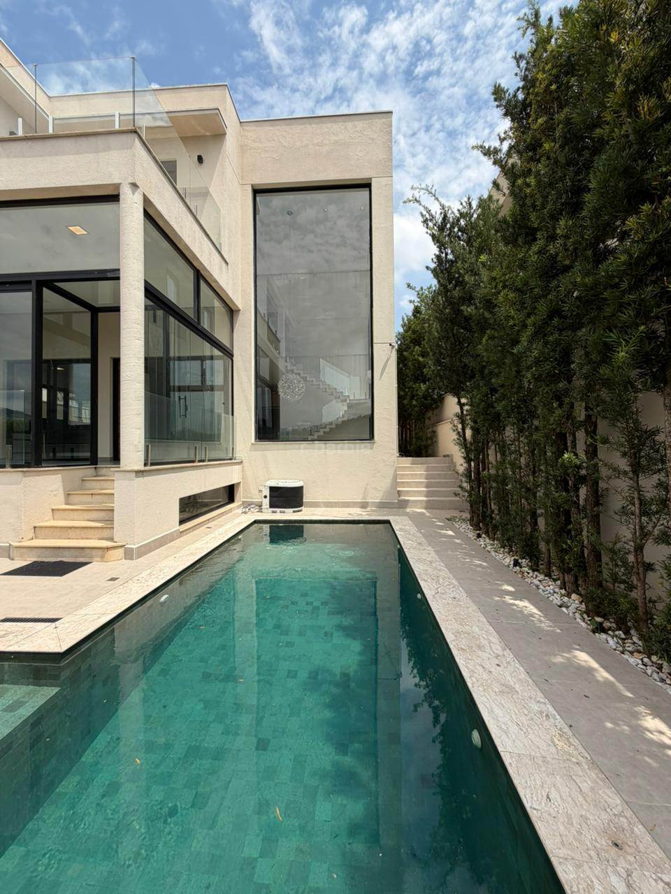 Linda residência de 450 metros de terreno e 440 metros de área construída com 4 suítes em Alphaville, com acabamento fino e clean, lavabo living para 3 ambientes com um pé direito, cozinha planejada com cooktop e coifa de teto, área gourmet com churrasqueira, piscina, academia completa, ar condicionado em todos os ambientes, 7 banheiros e garagem para 4 carros sendo 2 cobertos.