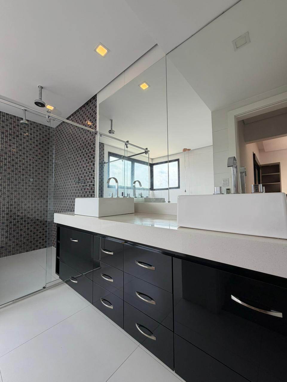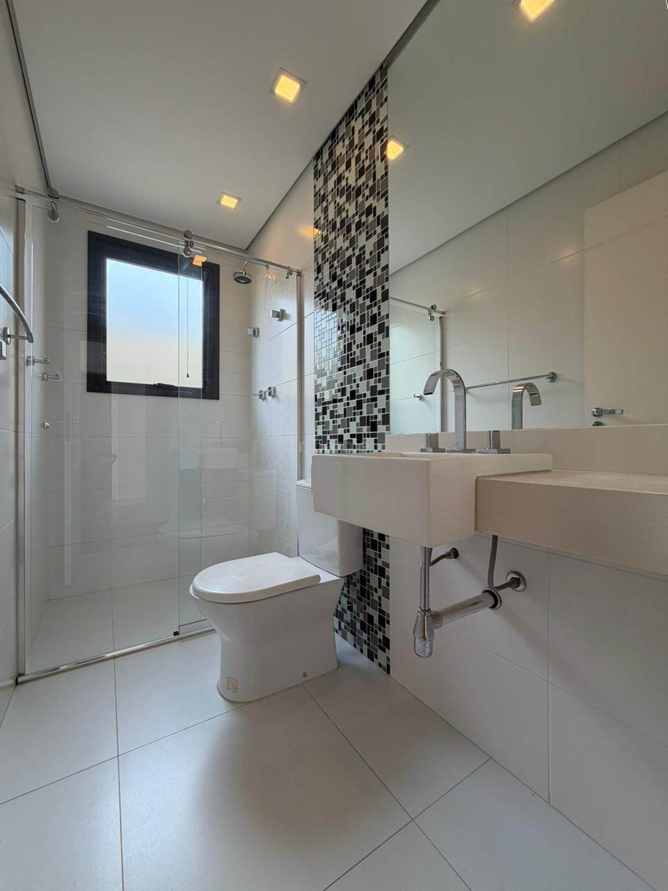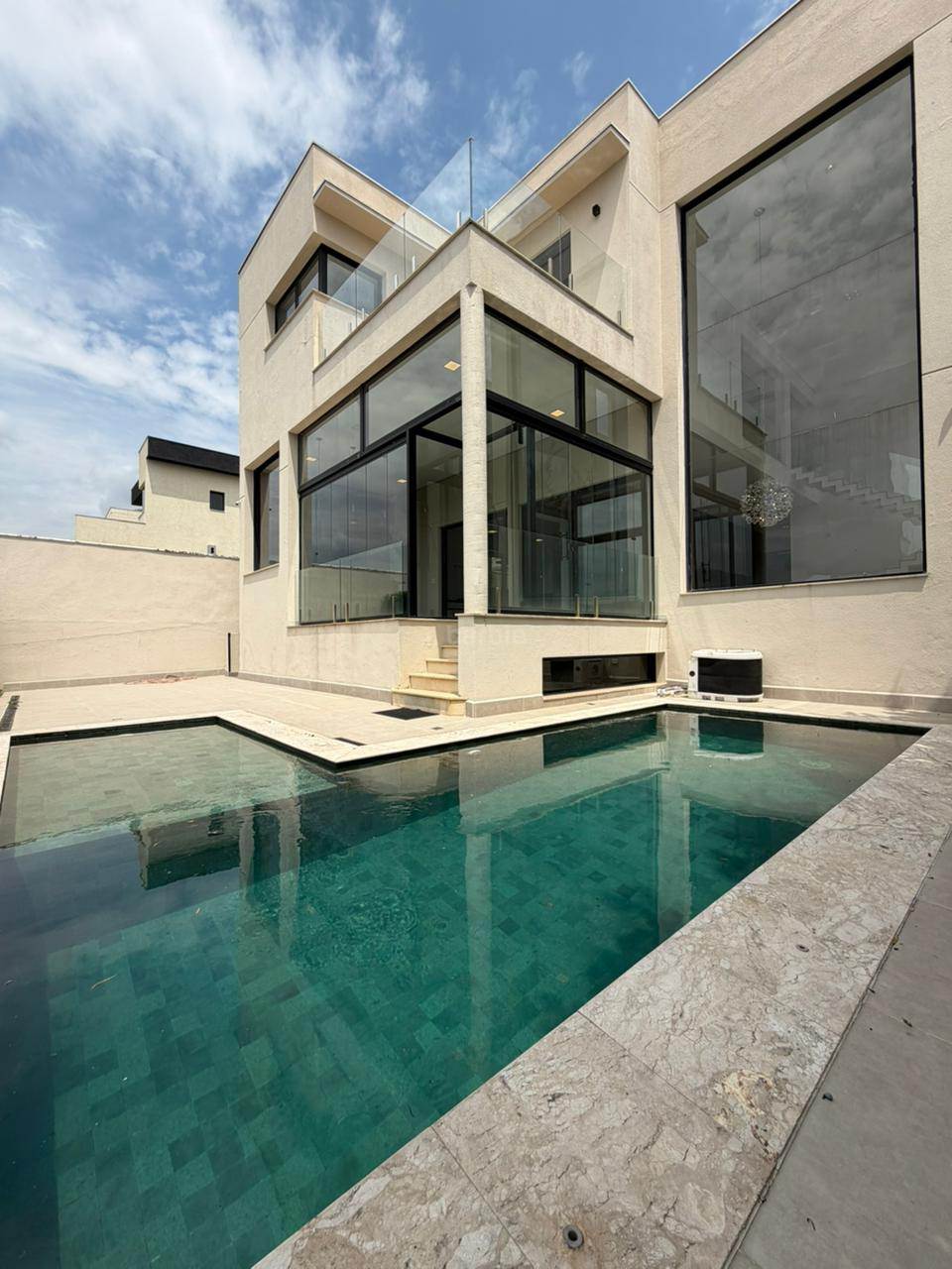 Linda residência de 450 metros de terreno e 440 metros de área construída com 4 suítes em Alphaville, com acabamento fino e clean, lavabo living para 3 ambientes com um pé direito, cozinha planejada com cooktop e coifa de teto, área gourmet com churrasqueira, piscina, academia completa, ar condicionado em todos os ambientes, 7 banheiros e garagem para 4 carros sendo 2 cobertos.