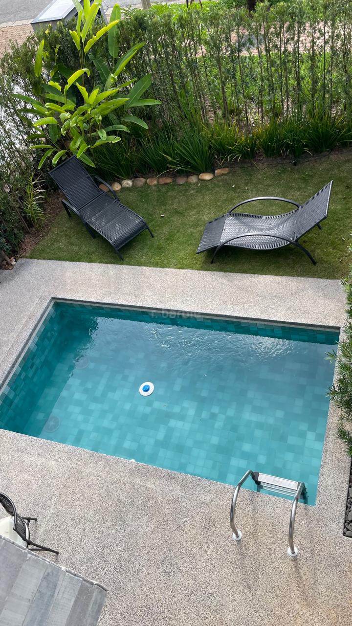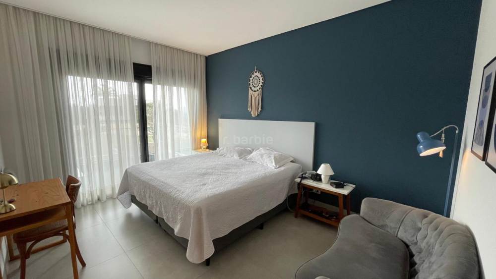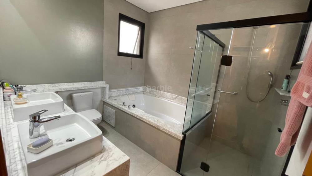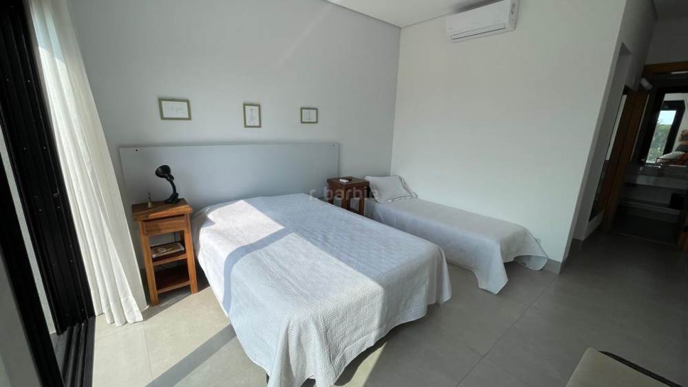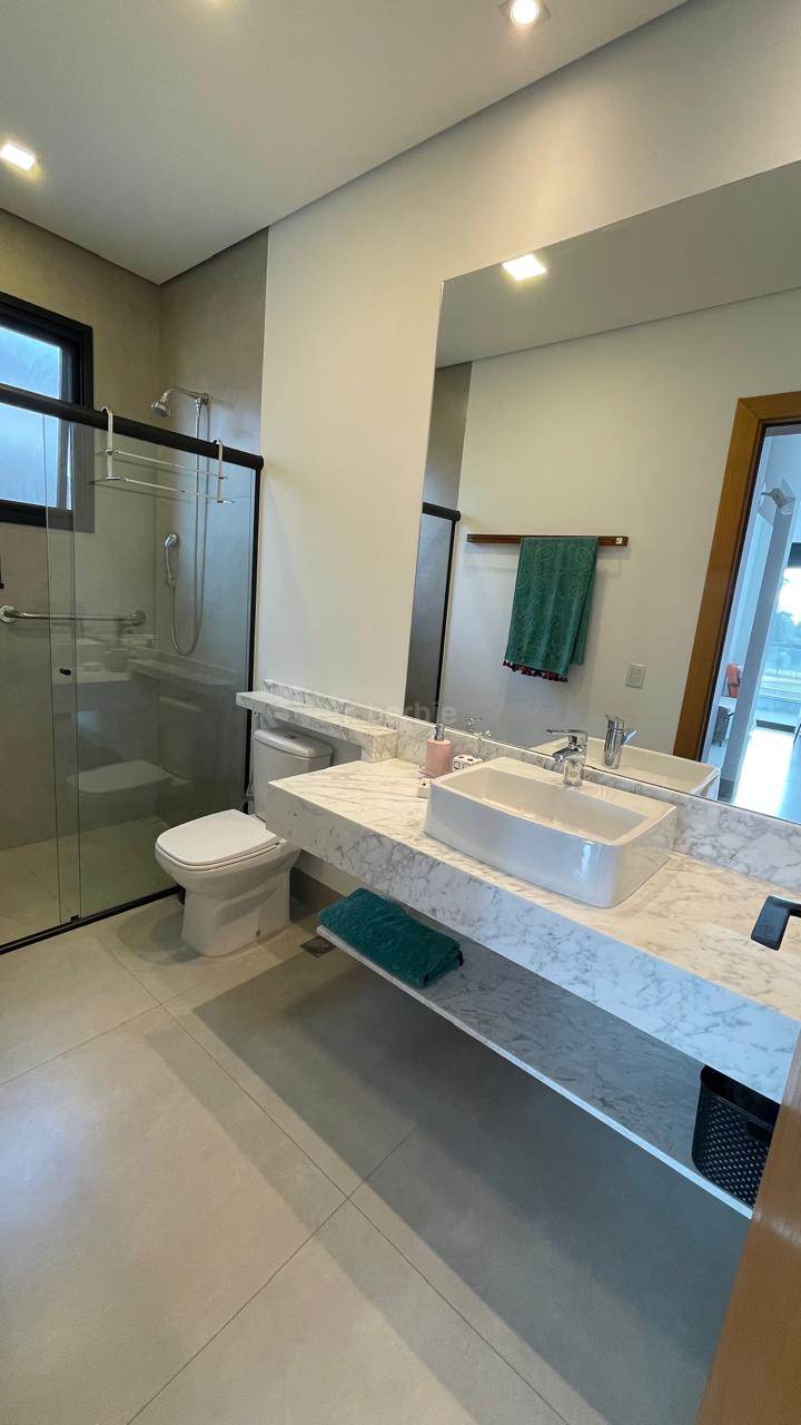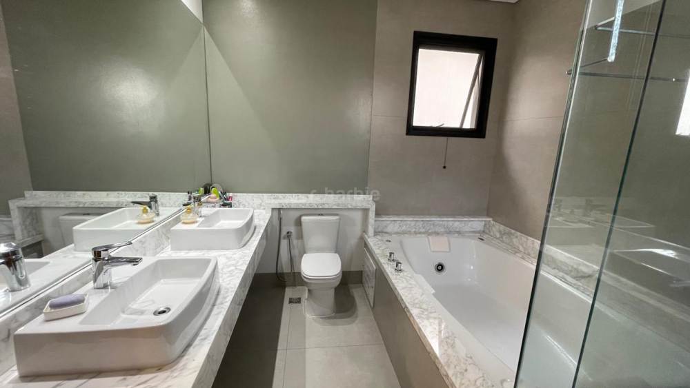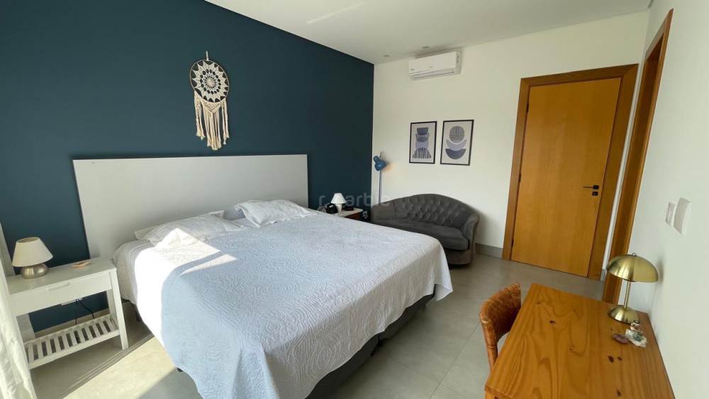 Casa com 4 suítes em Alphaville, 420 metros de terreno e 330 metros de área construída, living para 3 ambientes, cozinha ampla com armários planejados, lavanderia, lavabo, ar condicionado, área gourmet com churrasqueira a carvão, piscina aquecida, quintal com vista para mata e garagem para 4 carros.