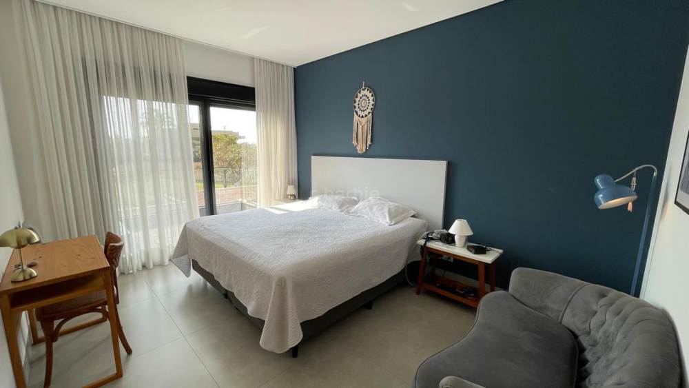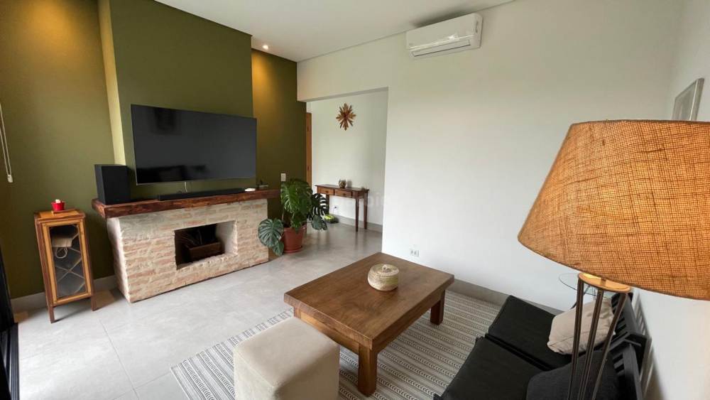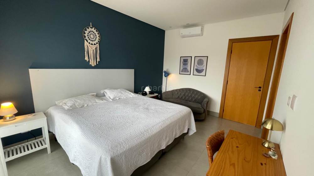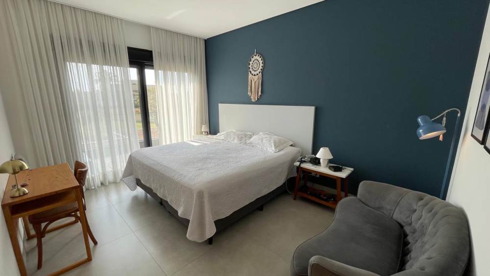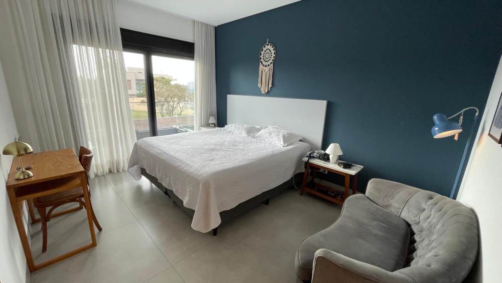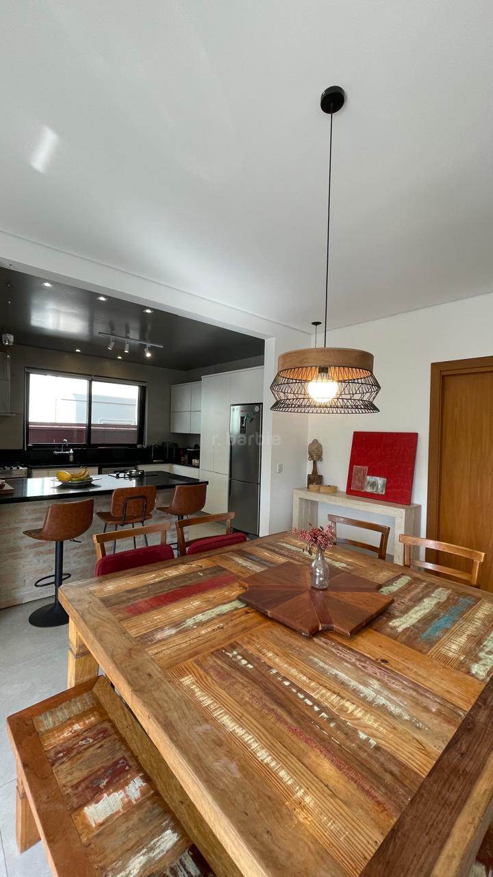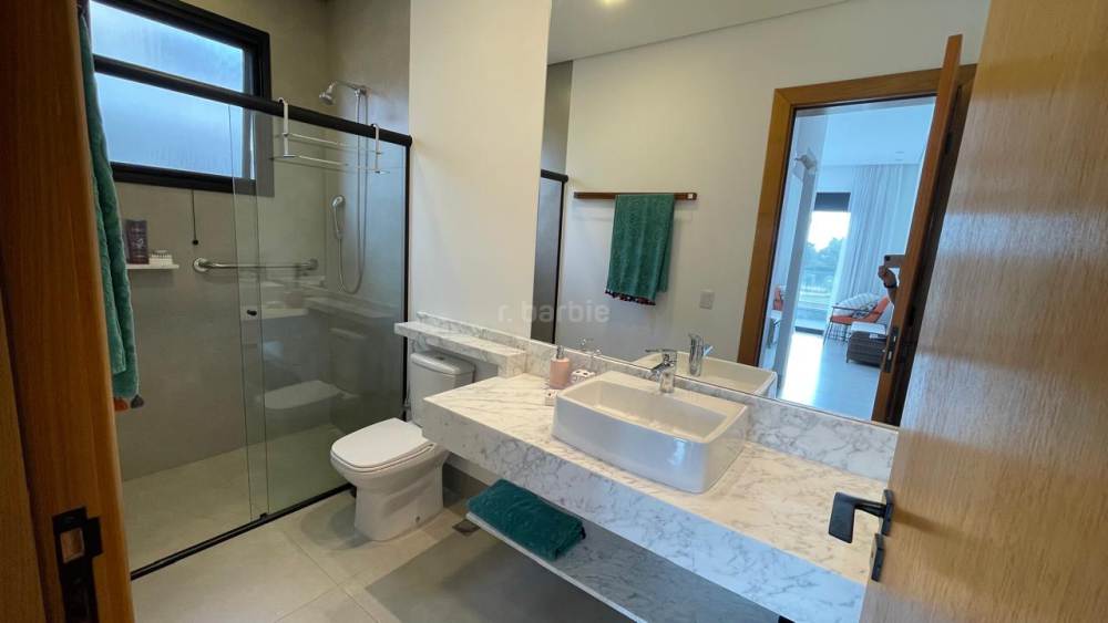 Casa com 4 suítes em Alphaville, 420 metros de terreno e 330 metros de área construída, living para 3 ambientes, cozinha ampla com armários planejados, lavanderia, lavabo, ar condicionado, área gourmet com churrasqueira a carvão, piscina aquecida, quintal com vista para mata e garagem para 4 carros.