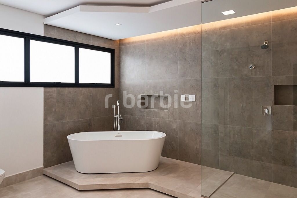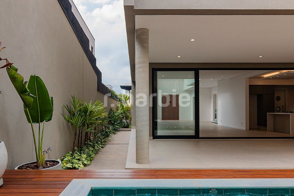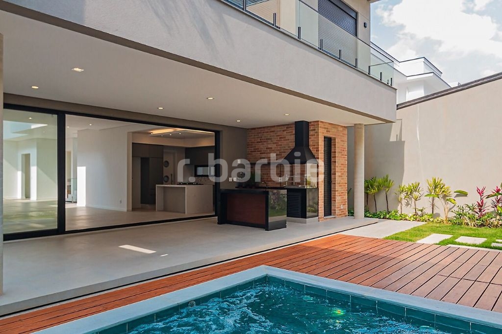Casa com 4 suítes recém construída em Alphaville, 450 metros de terreno e 480 metros de área construída, com acabamento que se destaca pelo design moderno e clean, living para 3 ambientes com um pé direito, cozinha em conceito aberto com ilha central, dependência de serviço (suíte), área gourmet com churrasqueira, piscina e garagem para 5 carros.