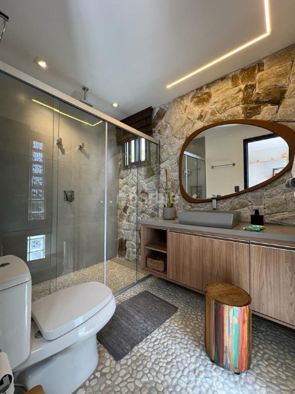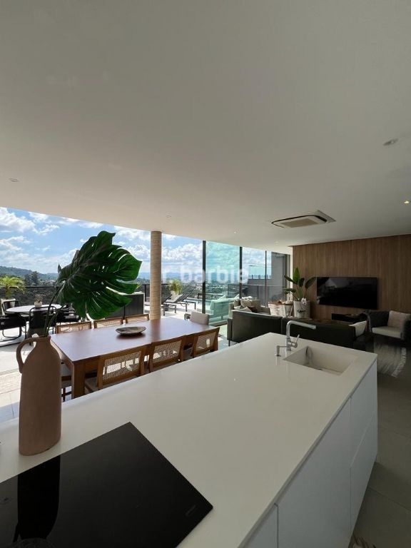 Excelente casa mobiliada com uma vista deslumbrante, sendo 450 metros de terreno e 360 metros de área construída, 4 suítes, escritório, living integrado para 3 ambientes, cozinha em conceito aberto com eletrodomésticos embutidos, marcenaria alto padrão, iluminação automatizada, 2 depósitos, lavabo, vista livre para mata, sol o dia todo, sem vizinhos na frente e no fundo, área gourmet com churrasqueira e piscina aquecida e 9 vagas de garagem.