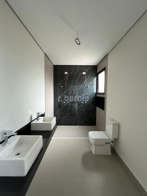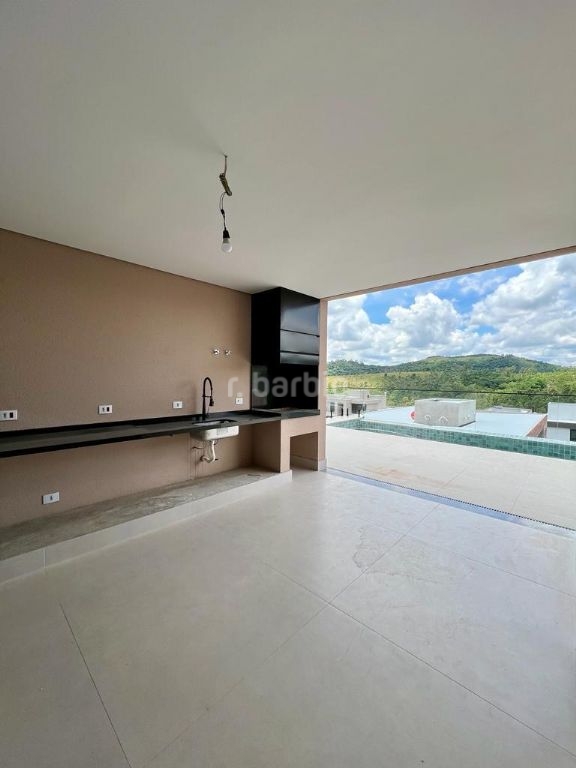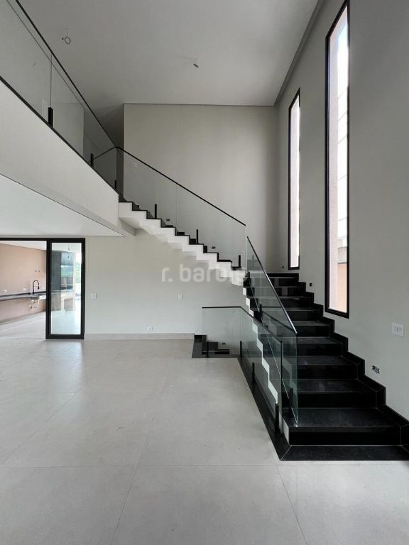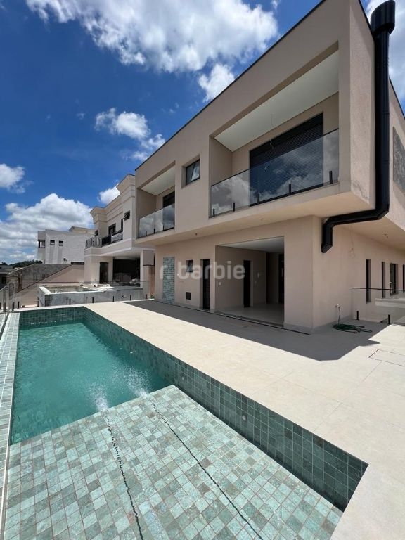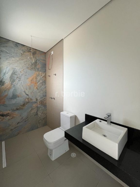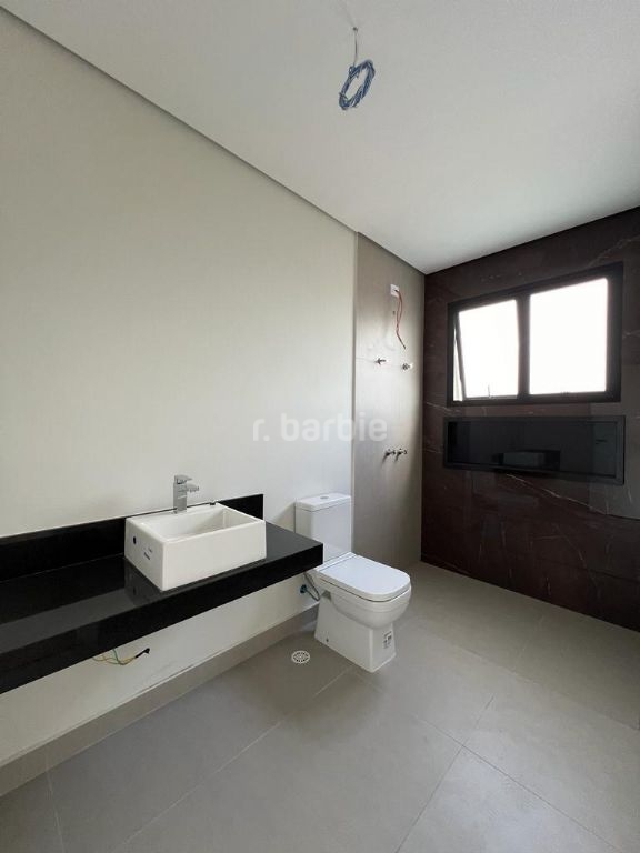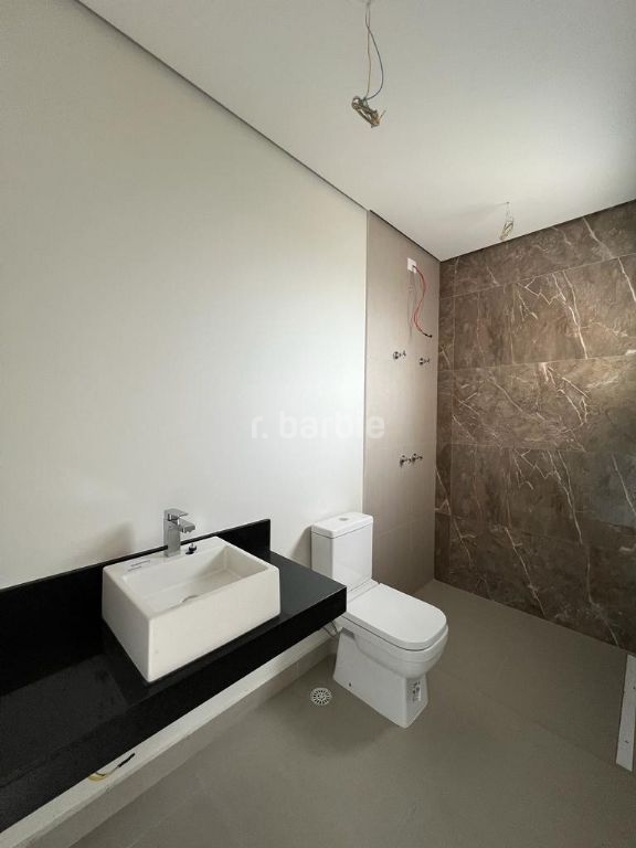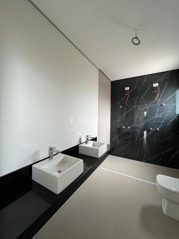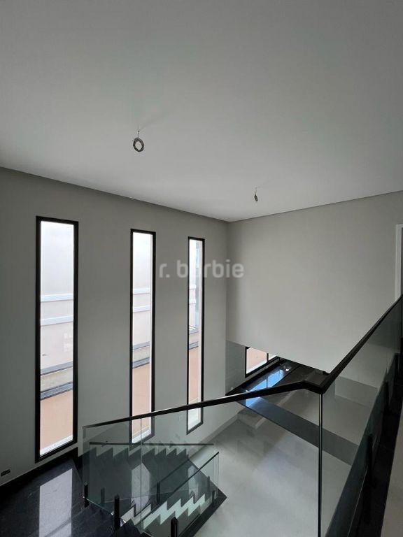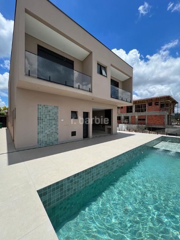 Excelente casa em recém construída com 436 metros de terreno e 501 metros de área construída, 4 suítes com closet sendo a master com varanda, todas terão persianas automáticas blackout, infra estrutura para ar condicionado, living para 3 ambientes, cozinha integrada com ilha central, escritório, despensa, lavabo, salão de jogos, suíte de serviço, sauna, churrasqueira, piscina com prainha, deck e 6 vagas de garagem.