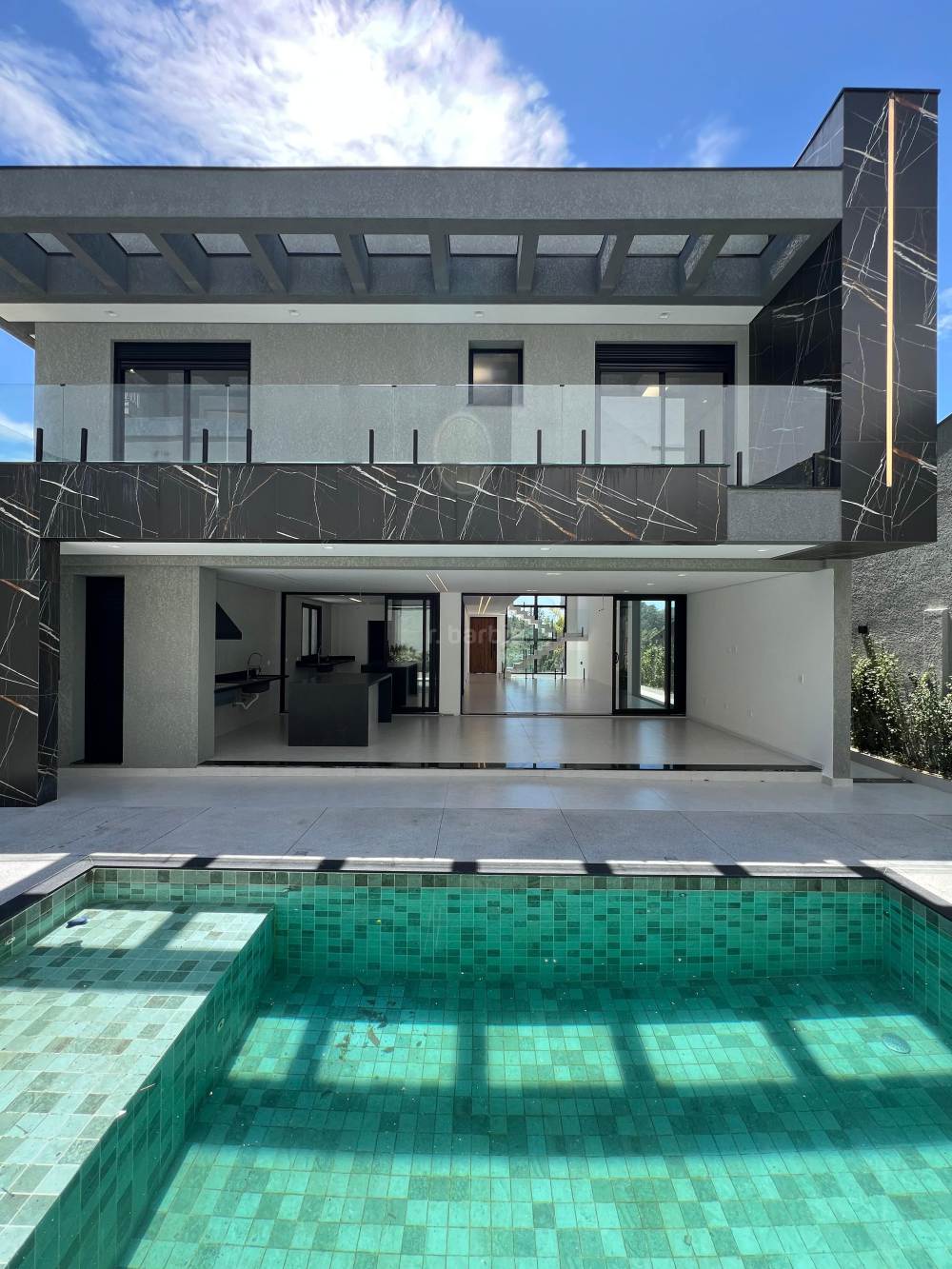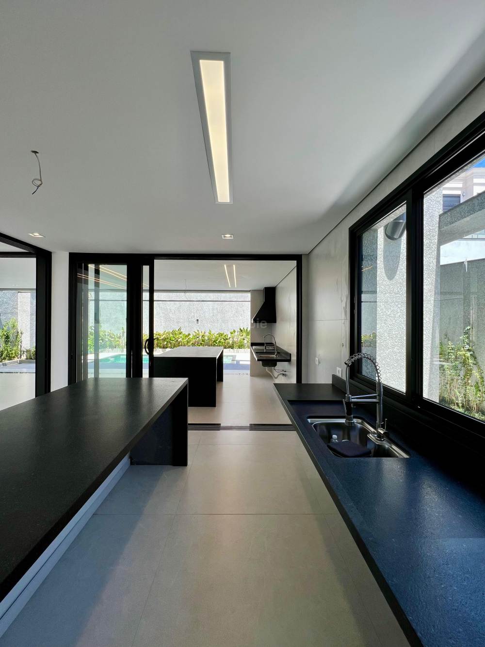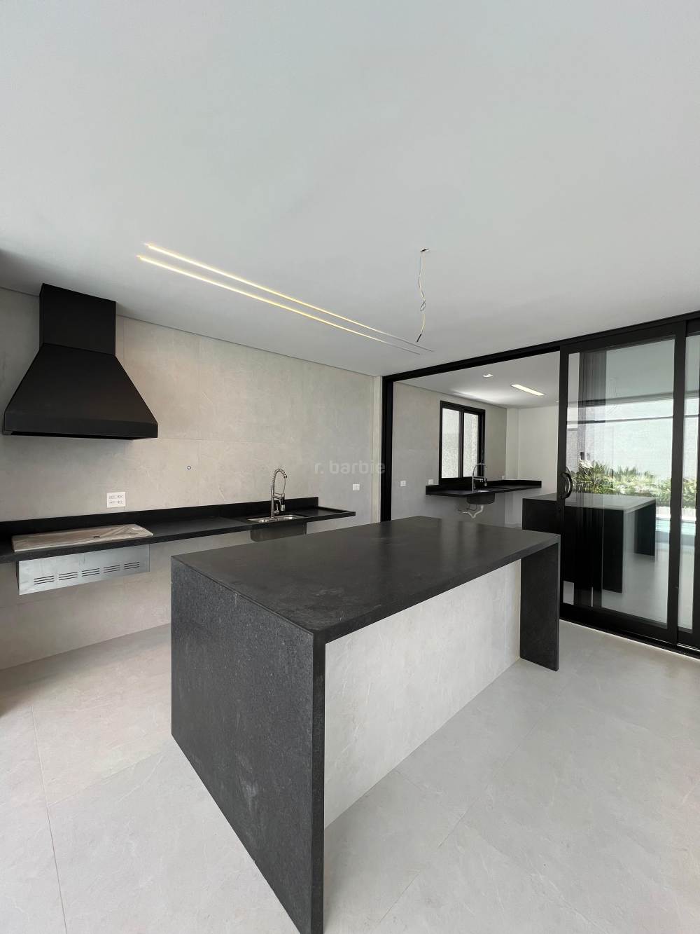 Casa recém construída com 4 suítes em Alphaville, 420 metros de terreno e 387 metros de área construída, living para 3 ambientes, cozinha em conceito aberto com ilha, lavanderia, lavabo, área gourmet com churrasqueira, piscina e garagem para 4 carros com infra para carro elétrico.