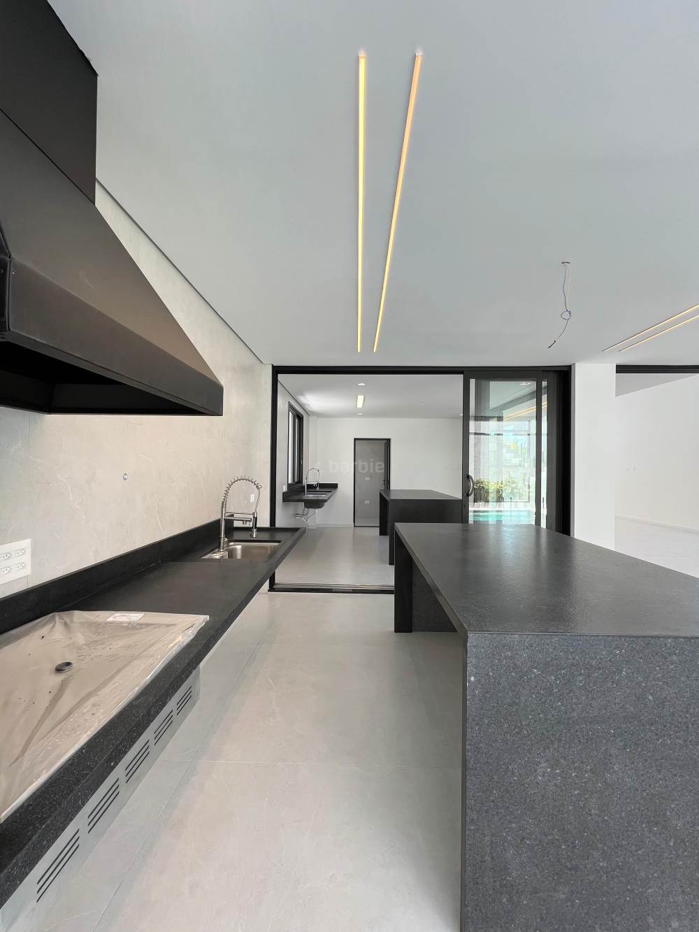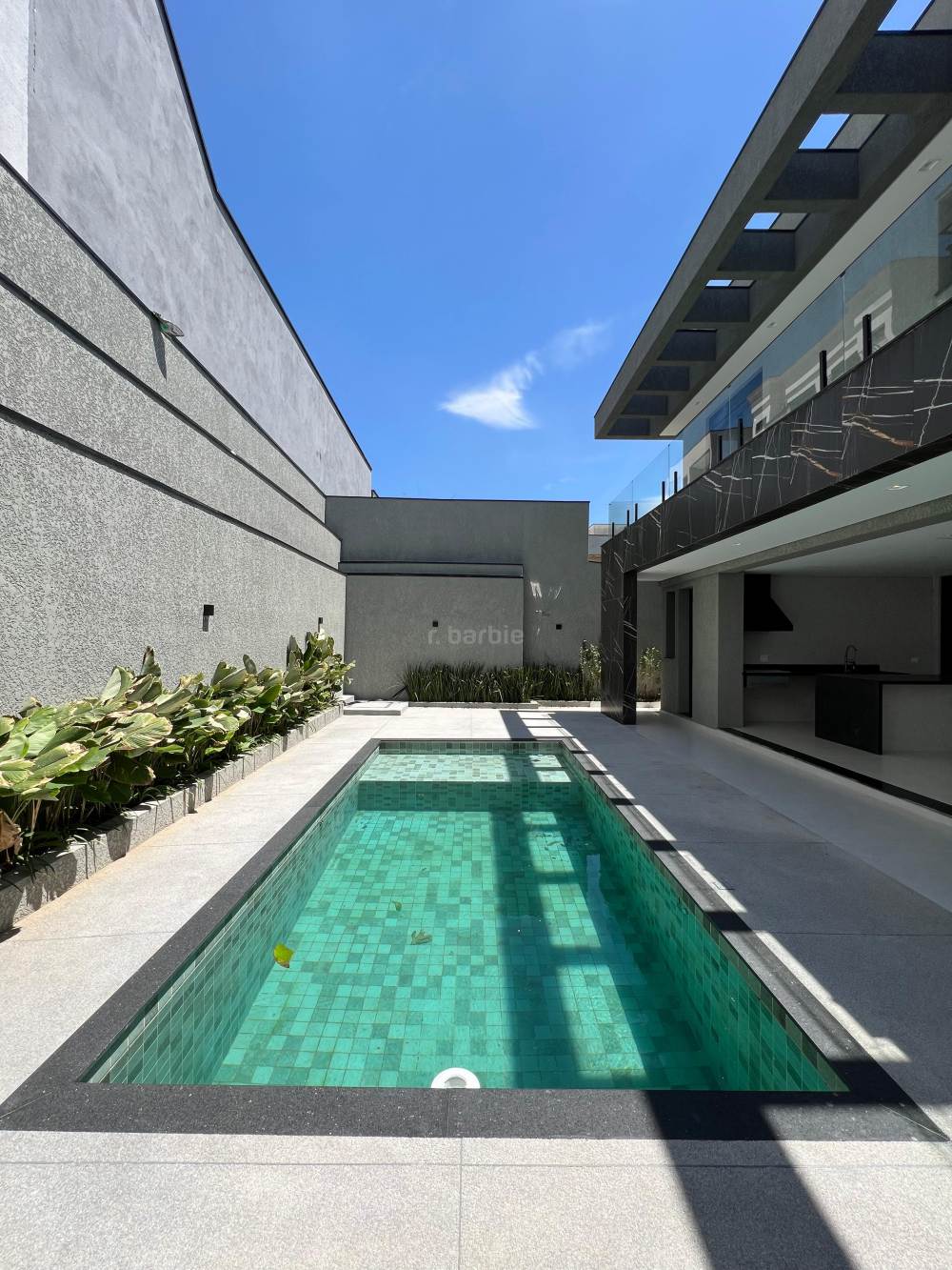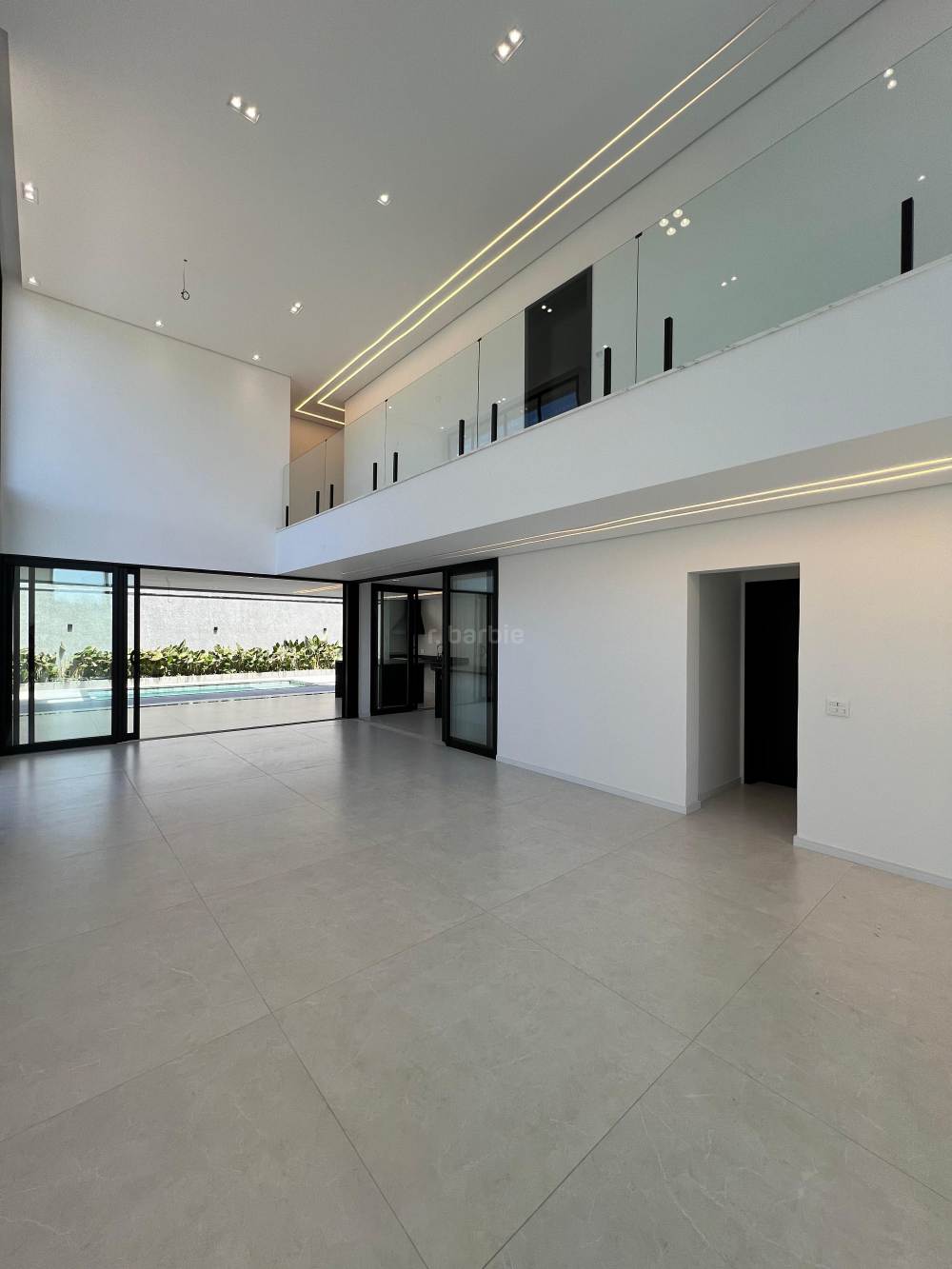 Casa recém construída com 4 suítes em Alphaville, 420 metros de terreno e 387 metros de área construída, living para 3 ambientes, cozinha em conceito aberto com ilha, lavanderia, lavabo, área gourmet com churrasqueira, piscina e garagem para 4 carros com infra para carro elétrico.
