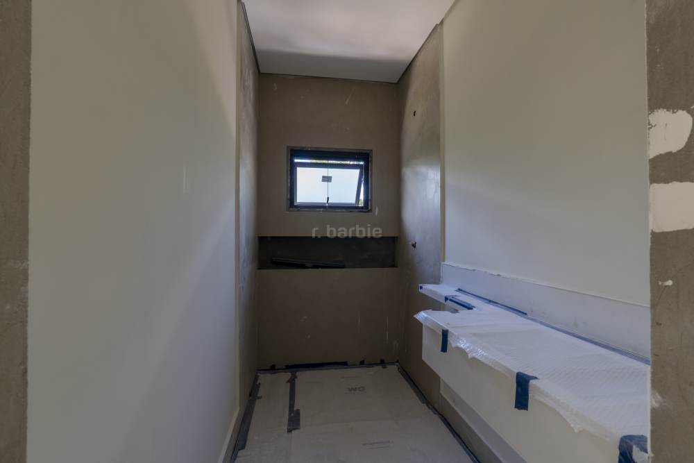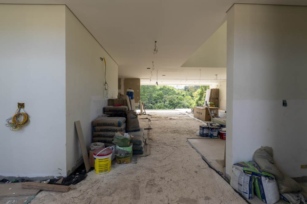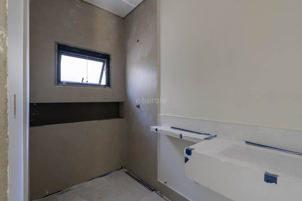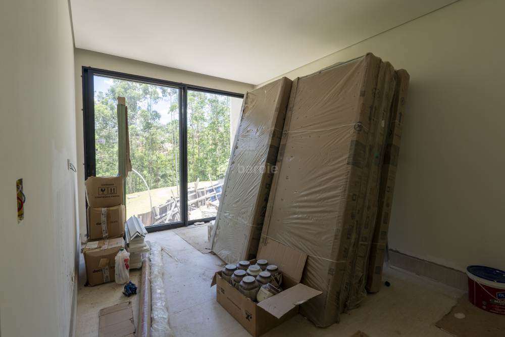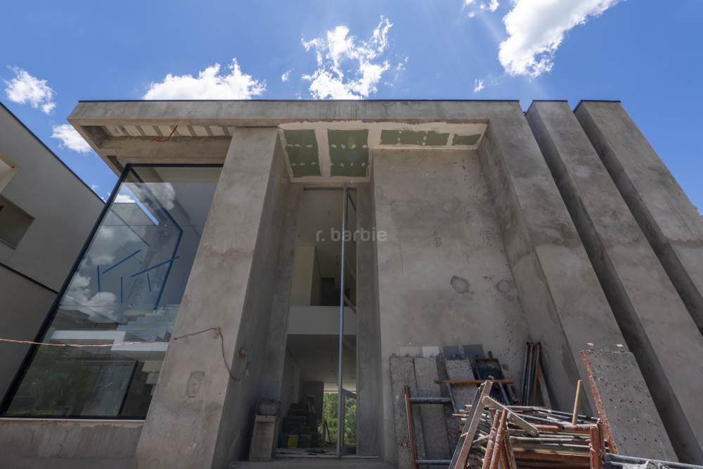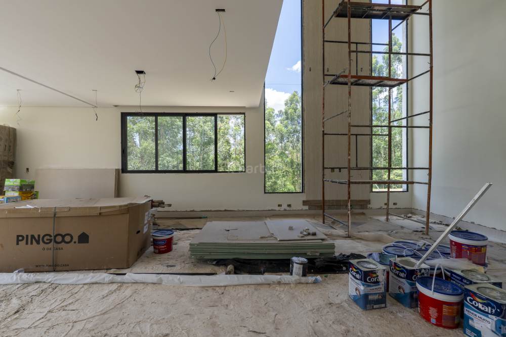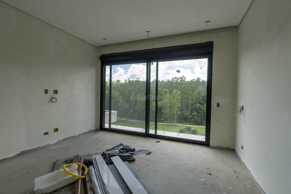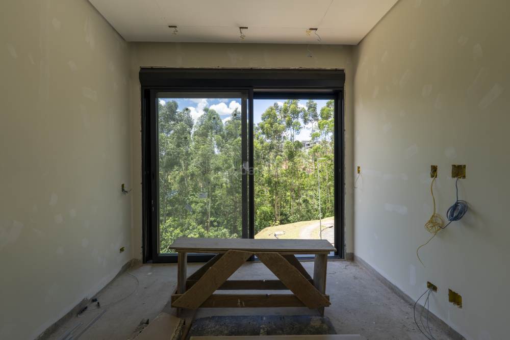 Casa com 4 suítes em Alphaville, 420 metros de terreno e 456 metros de área construída, living para 3 ambientes, cozinha em conceito aberto, 7 banheiros, elevador com telemetria remota e automação, despensa, lavanderia, suíte para prestador de serviço, escritório, depósito, área gourmet, piscina com borda infinita, sauna úmida e jacuzzi, vista para mata e garagem para 5 carros.
