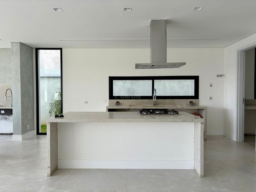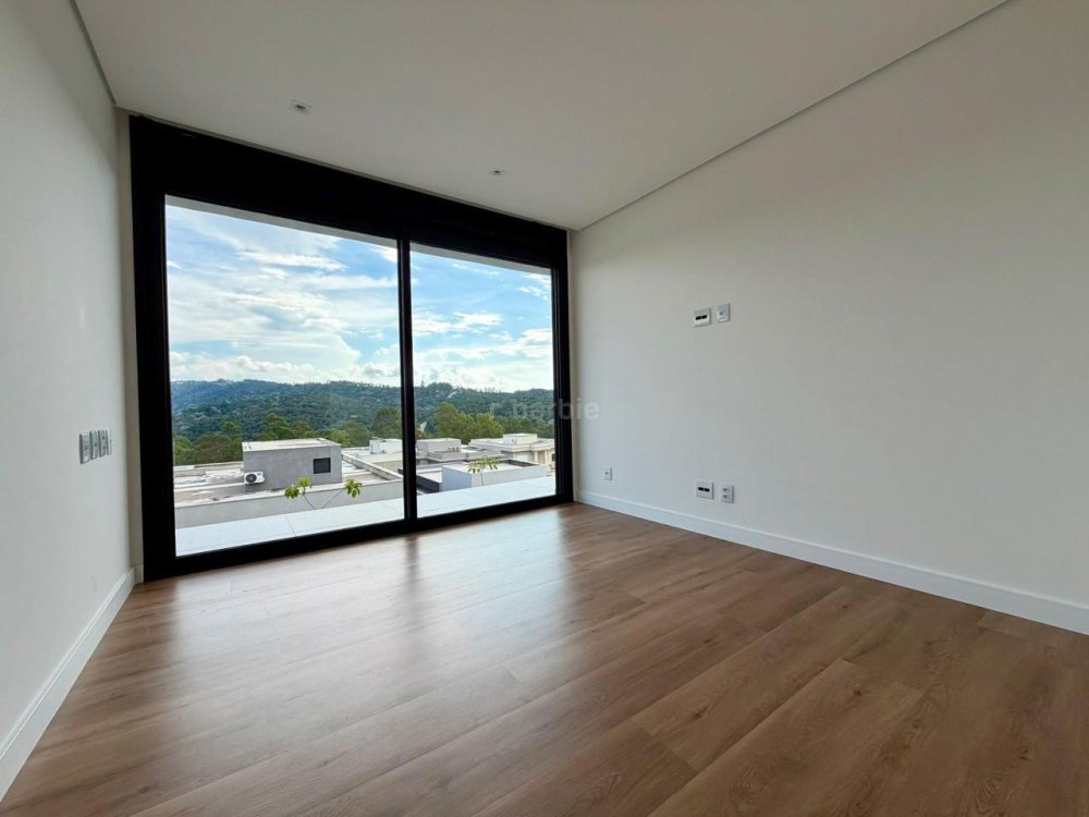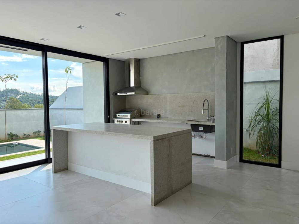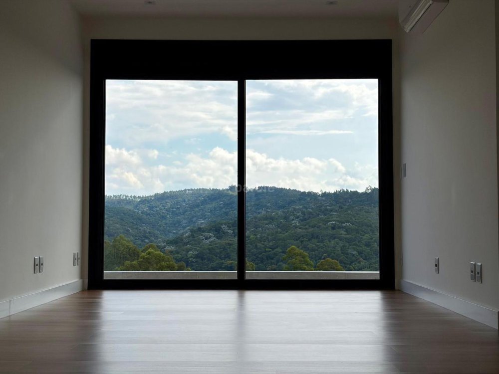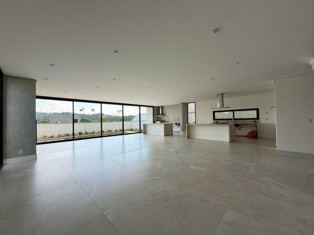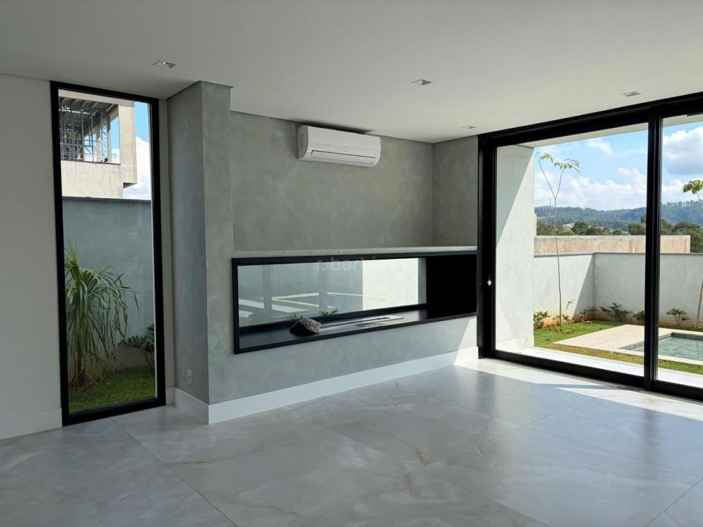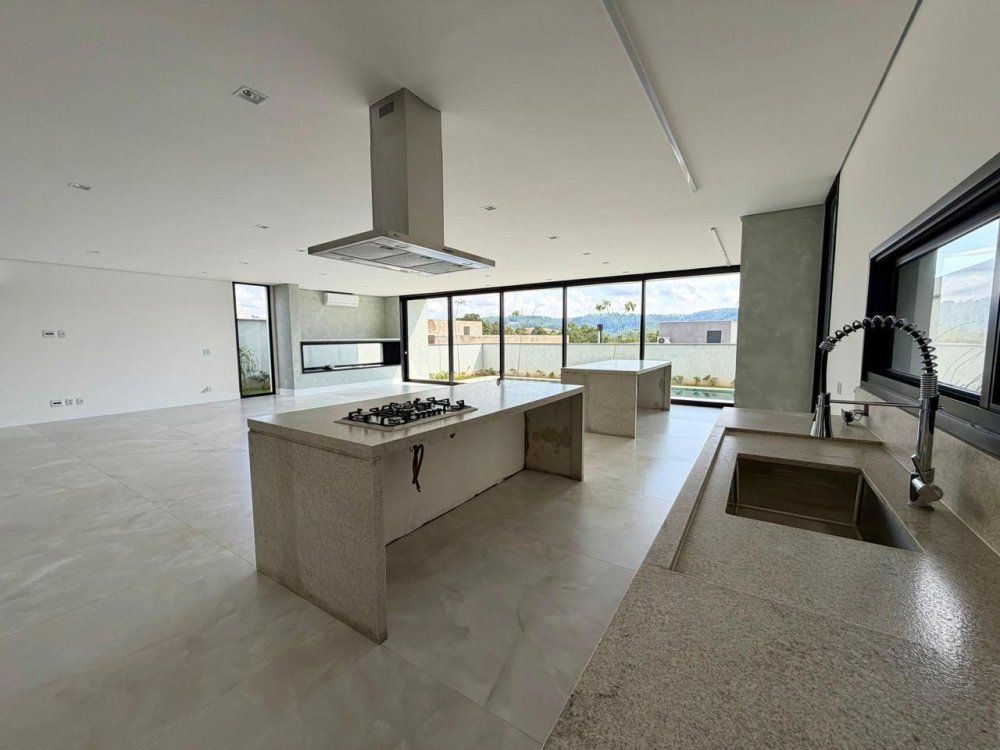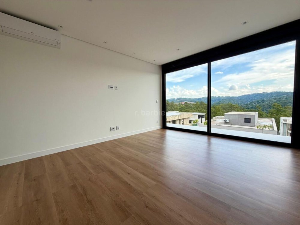 Casa recém construída com 4 suítes em Alphaville, 42 metros de terreno e 430 metros de área construída, living integrado para 3 ambientes com lareira, cozinha com ilha, cooktop e coifa, lavanderia, 7 banheiros, área gourmet integrado com churrasqueira a gás, ar condicionado instalado, vista para mata e garagem para 5 carros.