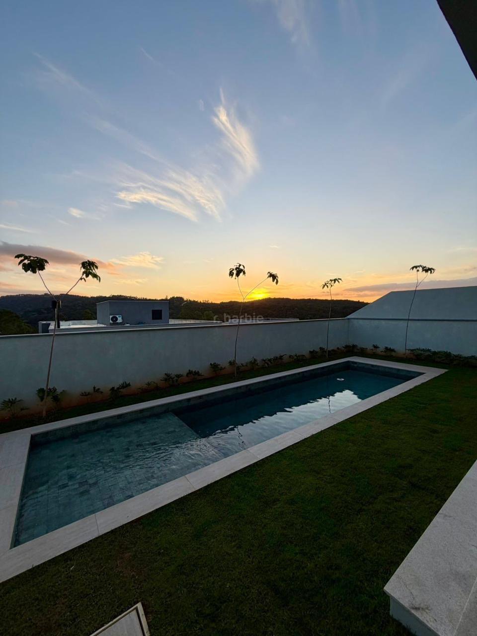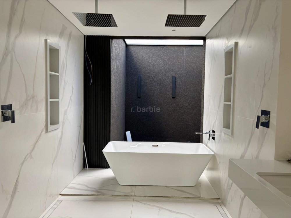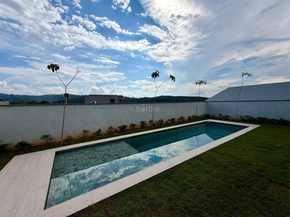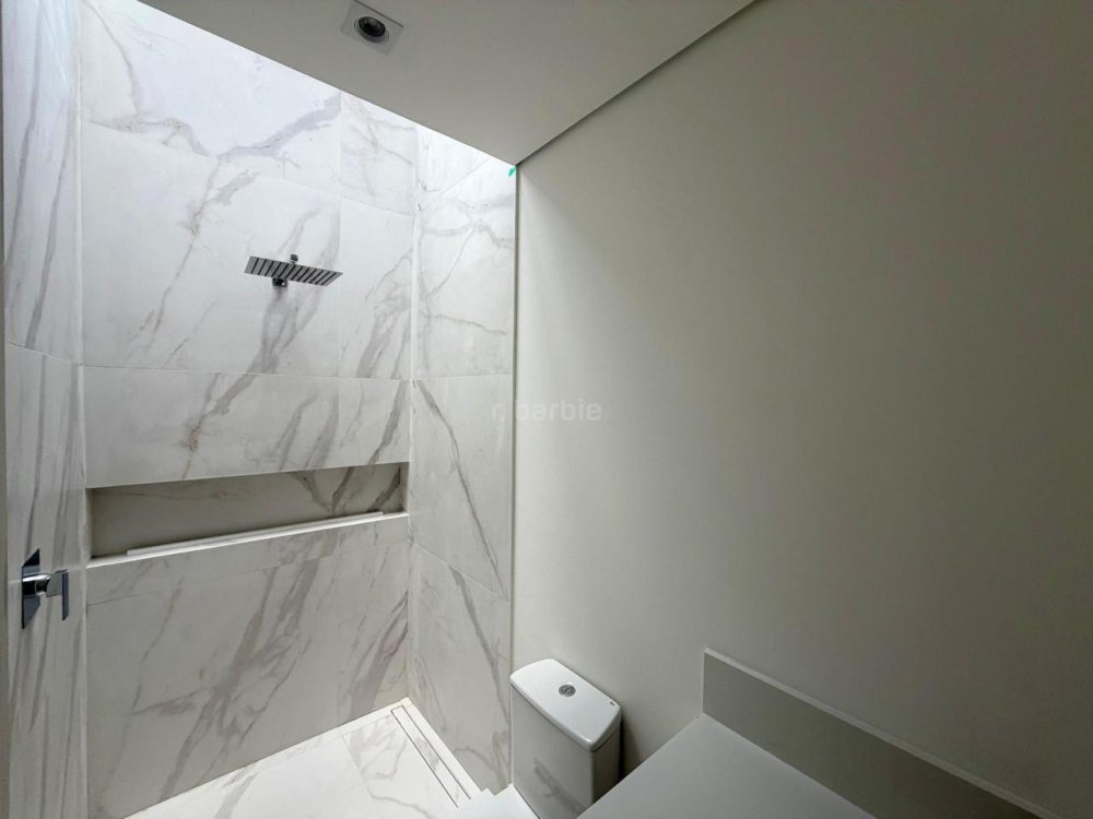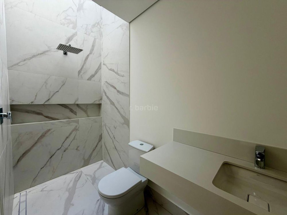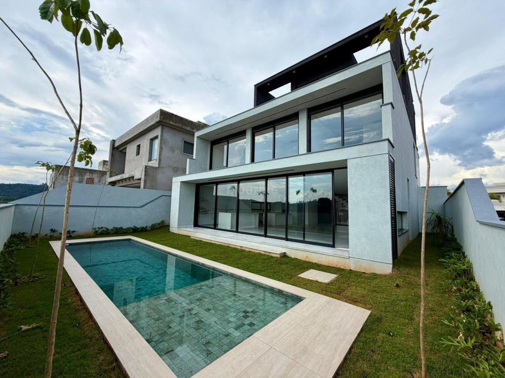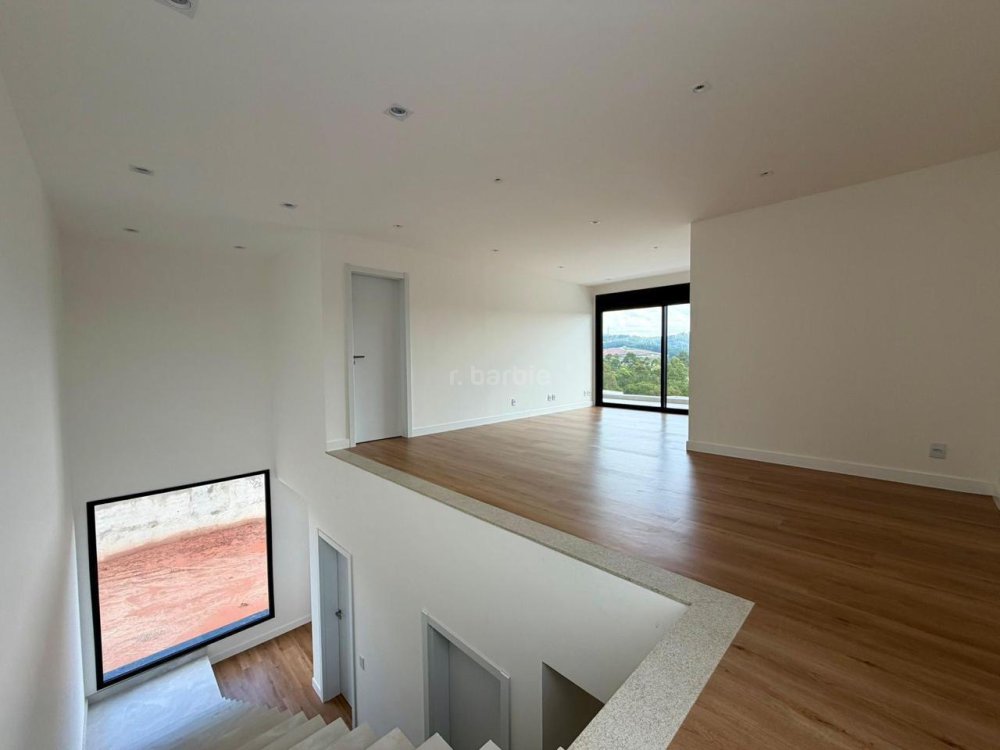 Casa recém construída com 4 suítes em Alphaville, 42 metros de terreno e 430 metros de área construída, living integrado para 3 ambientes com lareira, cozinha com ilha, cooktop e coifa, lavanderia, 7 banheiros, área gourmet integrado com churrasqueira a gás, ar condicionado instalado, vista para mata e garagem para 5 carros.