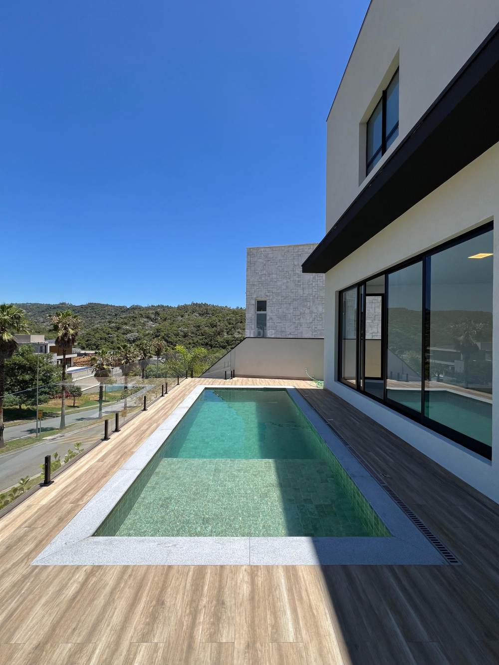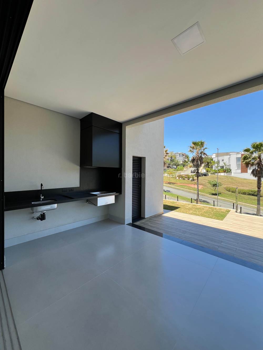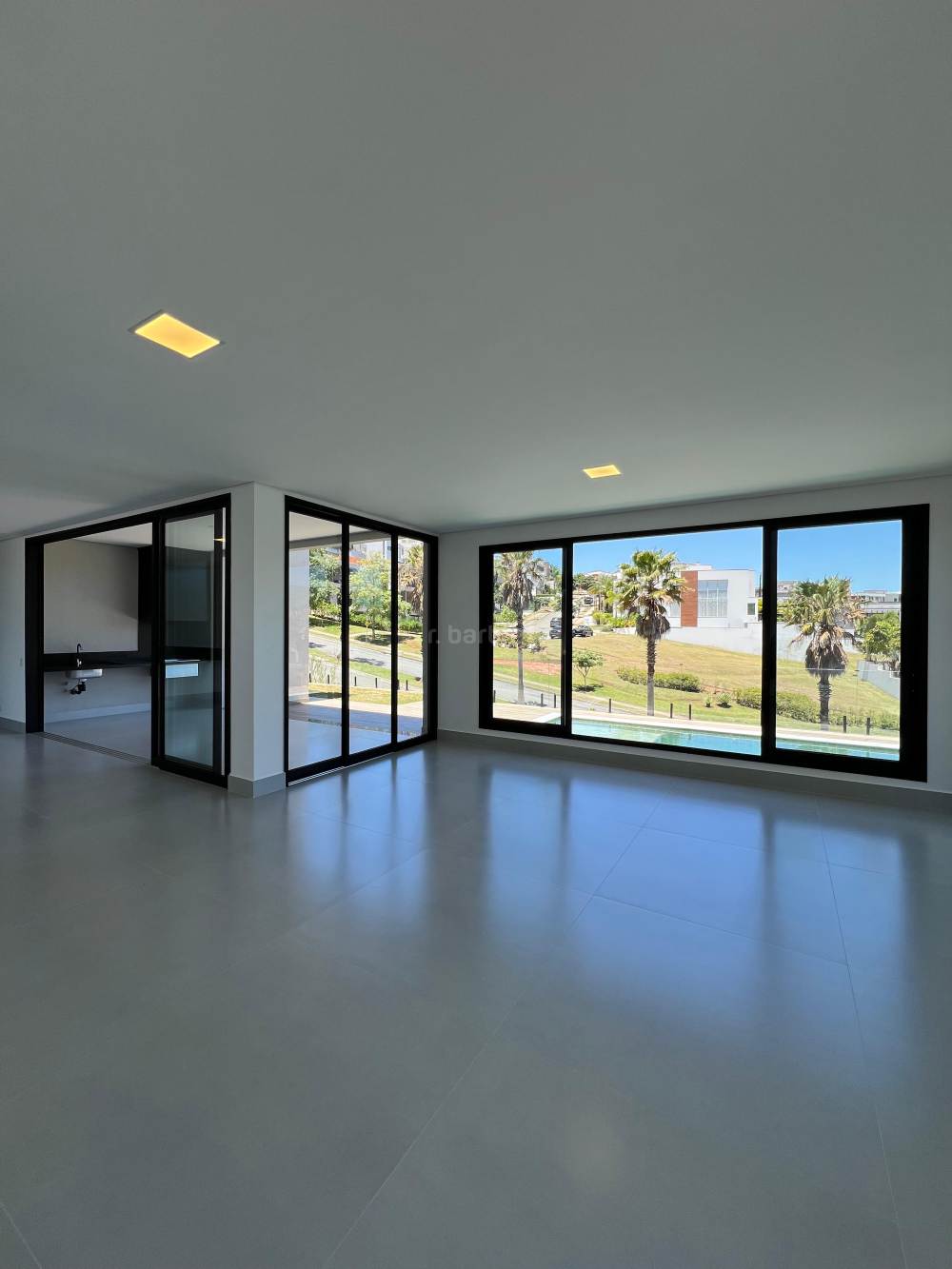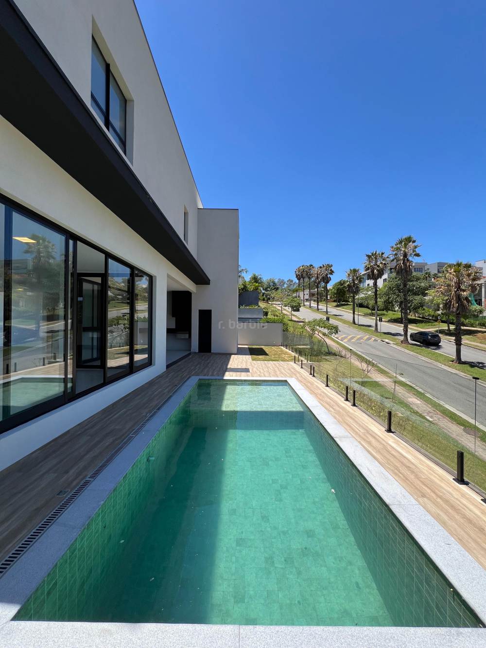 Casa recém construída com 4 suítes em Alphaville, 422 metros de terreno e 350 metros de área construída, living integrado para 3 ambientes, escritório, cozinha ampla, lavanderia, lavabo, dormitório para prestador de serviço, infra para ar condicionado nas suítes, área gourmet com churrasqueira, piscina e 4 vagas de garagem.