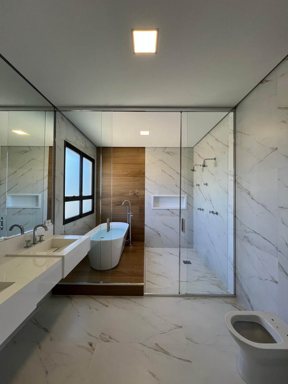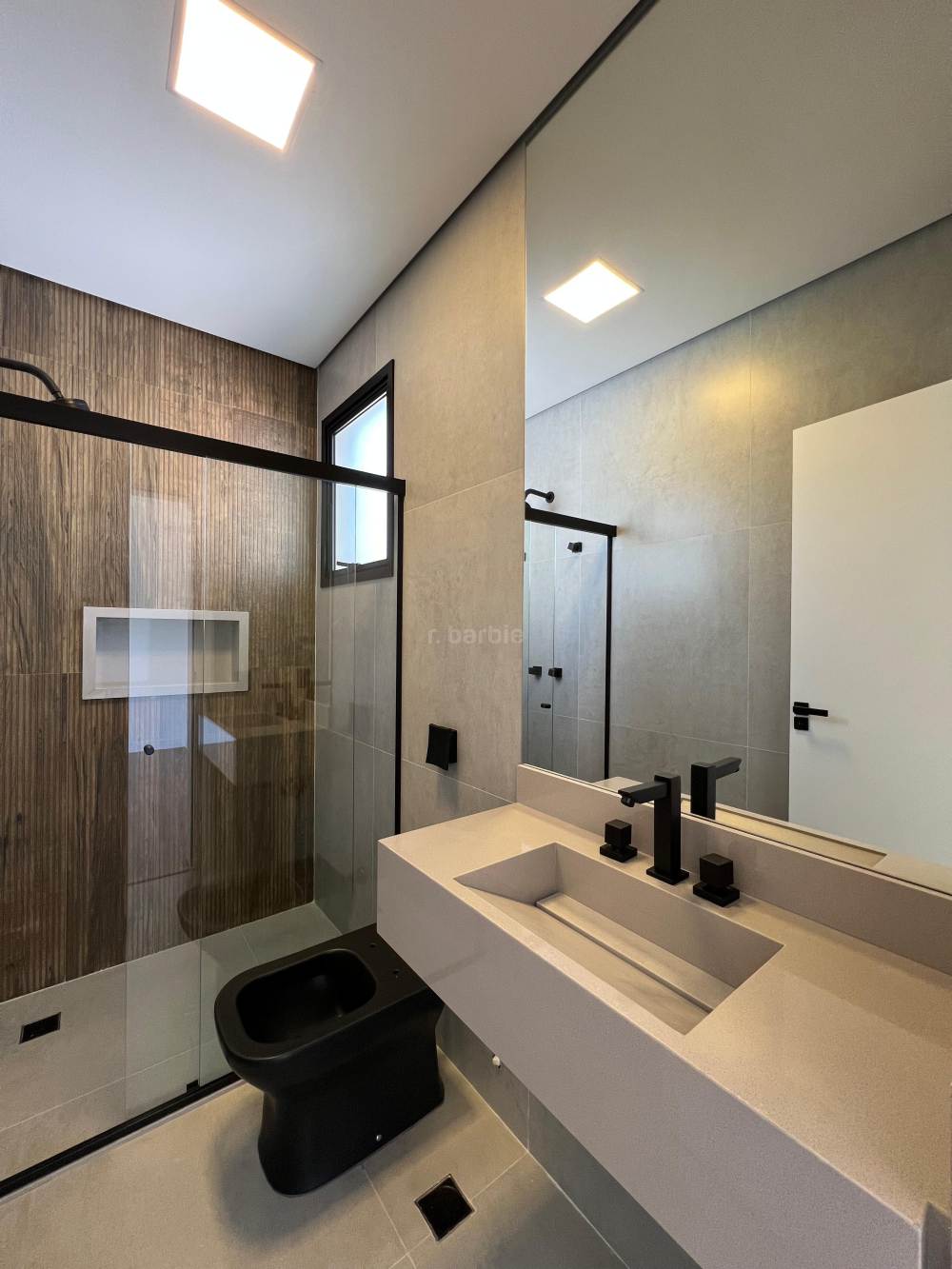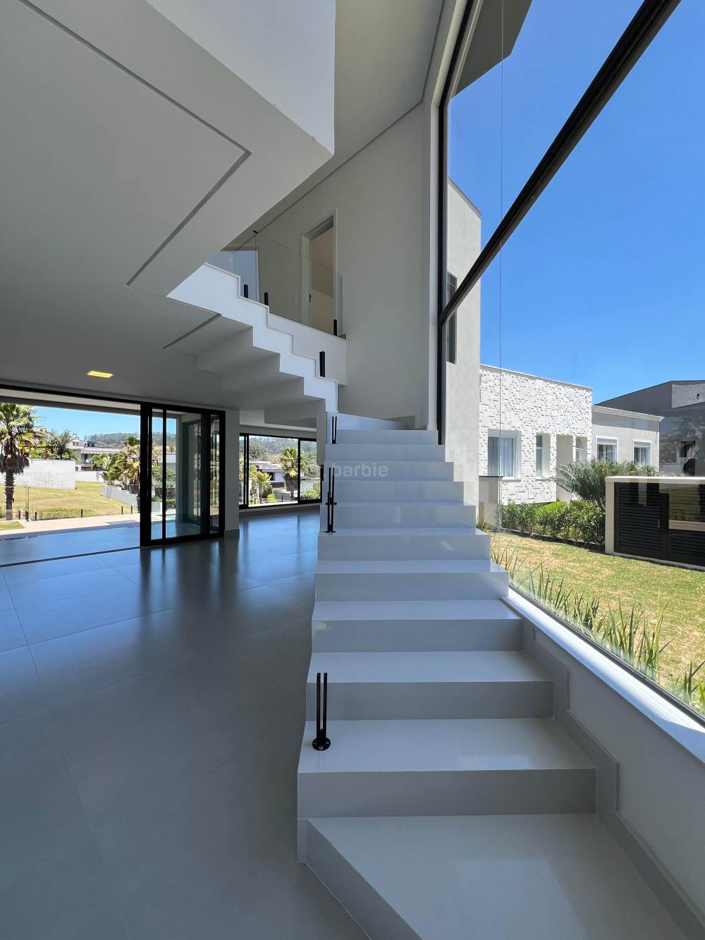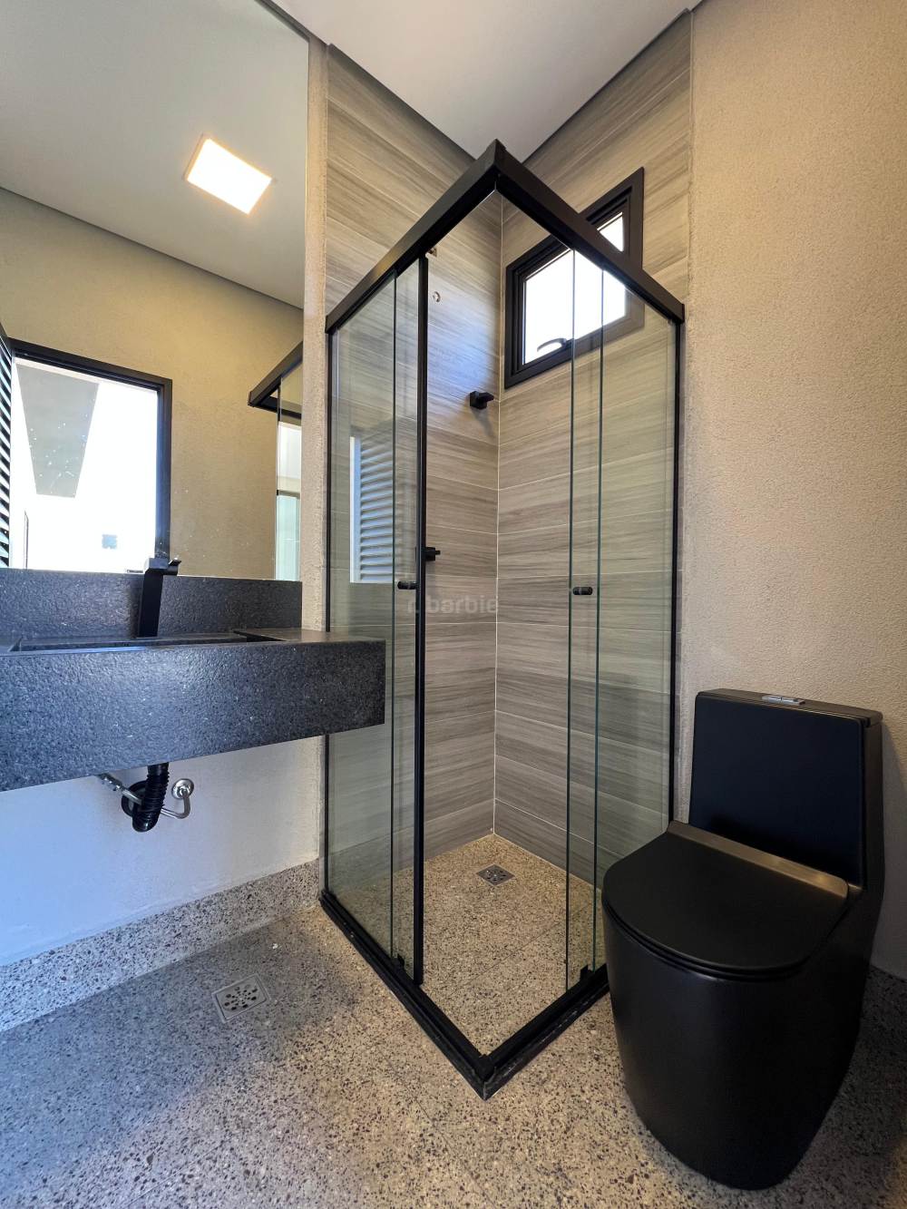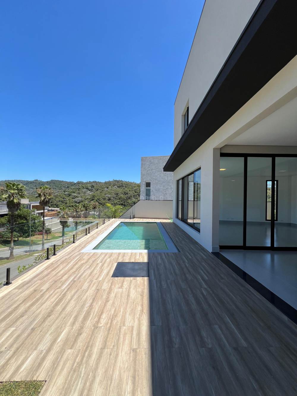 Casa recém construída com 4 suítes em Alphaville, 422 metros de terreno e 350 metros de área construída, living integrado para 3 ambientes, escritório, cozinha ampla, lavanderia, lavabo, dormitório para prestador de serviço, infra para ar condicionado nas suítes, área gourmet com churrasqueira, piscina e 4 vagas de garagem.