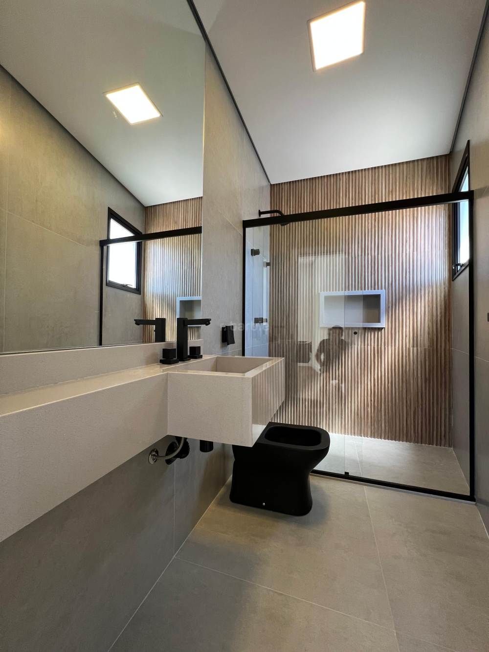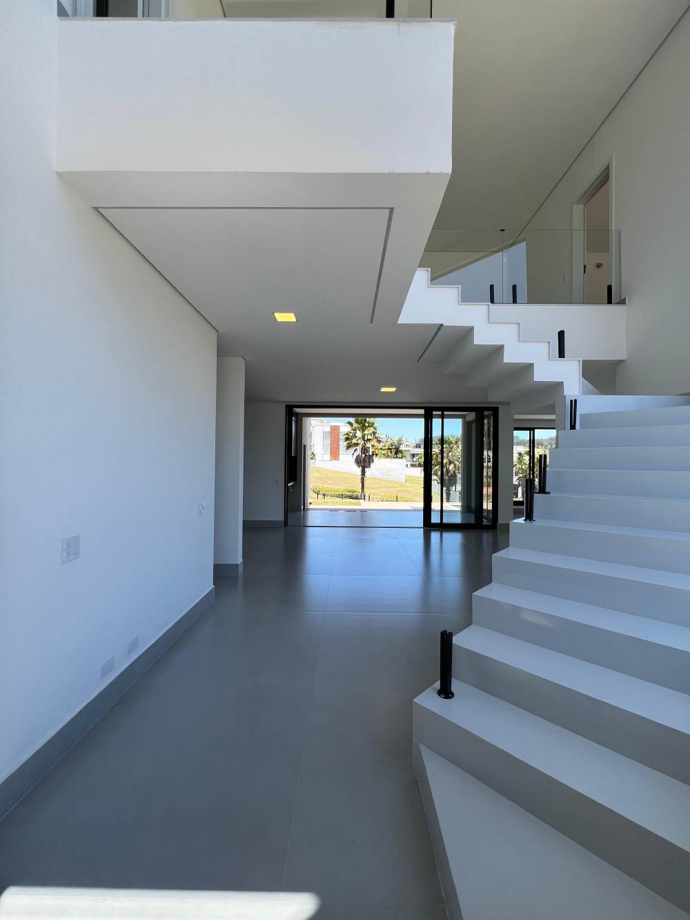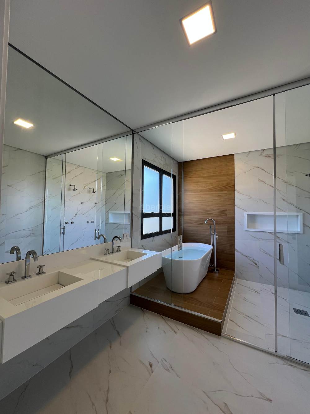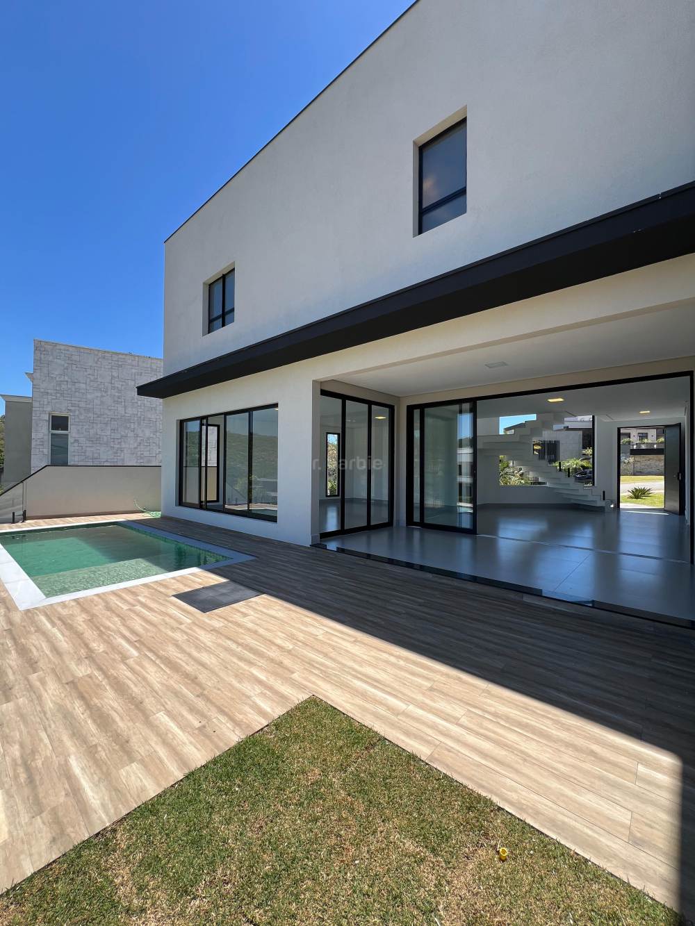Casa recém construída com 4 suítes em Alphaville, 422 metros de terreno e 350 metros de área construída, living integrado para 3 ambientes, escritório, cozinha ampla, lavanderia, lavabo, dormitório para prestador de serviço, infra para ar condicionado nas suítes, área gourmet com churrasqueira, piscina e 4 vagas de garagem.