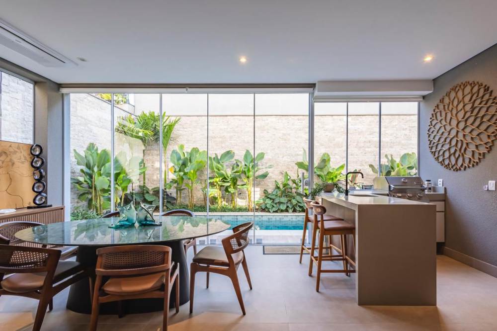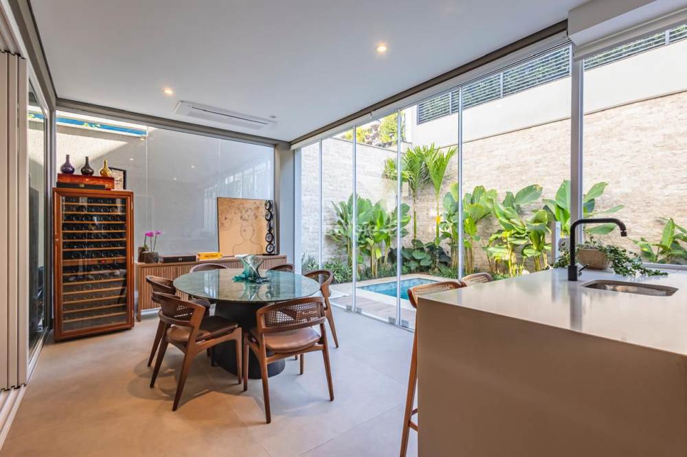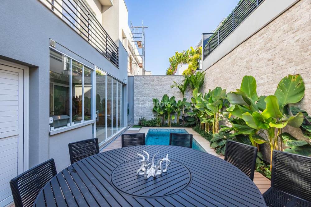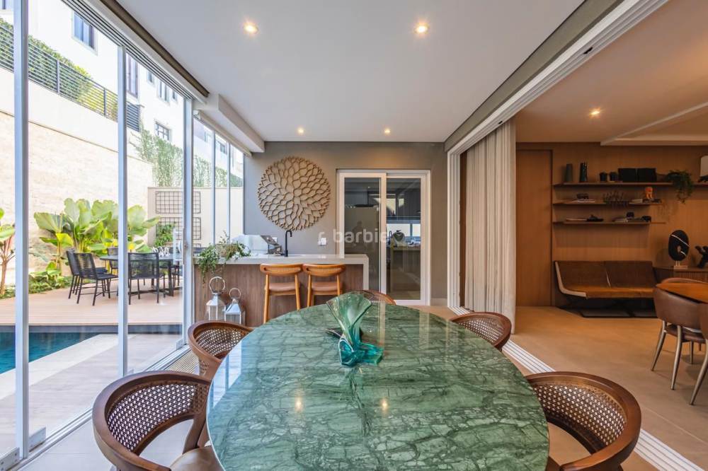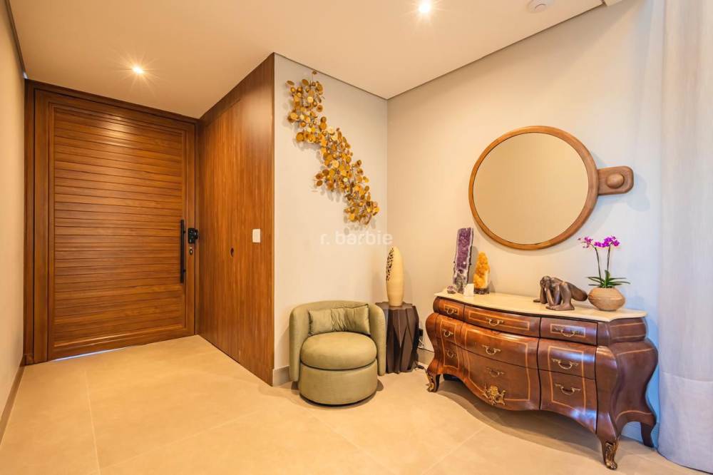 Casa em Alphaville com 420 metros de terreno e 390 metros de área construída, 4 suítes com closet e ar condicionado, living para 3 ambientes, cozinha em conceito aberto com armários planejados e embutidos, despensa, lavanderia, suíte para prestador de serviço, 7 banheiros, área gourmet com churrasqueira, piscina e garagem para 4 carros.