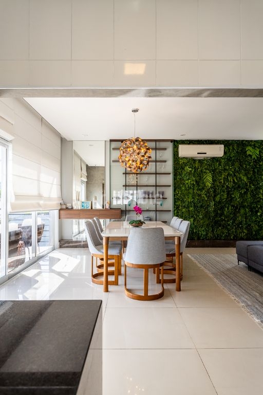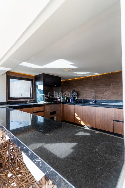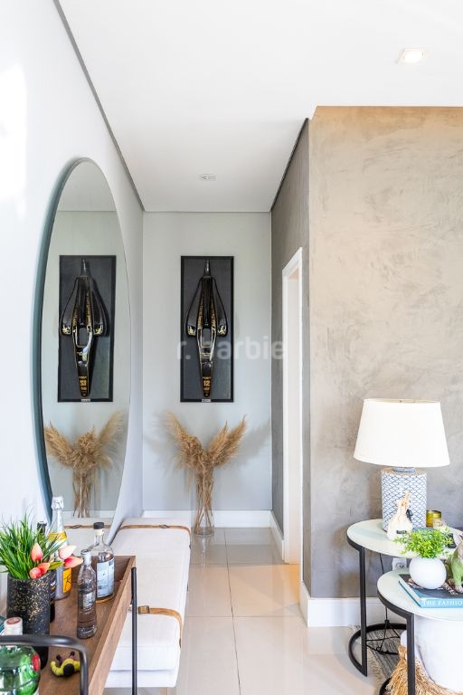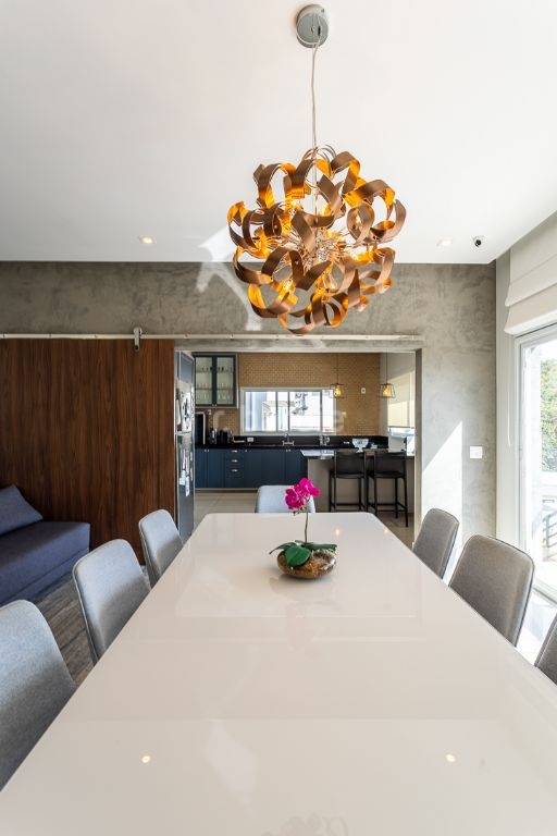 Casa em Alphaville com 404 metros de terreno e 315 metros de área construída, 4 suítes, living para 3 ambientes, cozinha ampla com armários planejados, lavanderia, 6 banheiros, área gourmet com churrasqueira, piscina e 4 vagas de garagem.