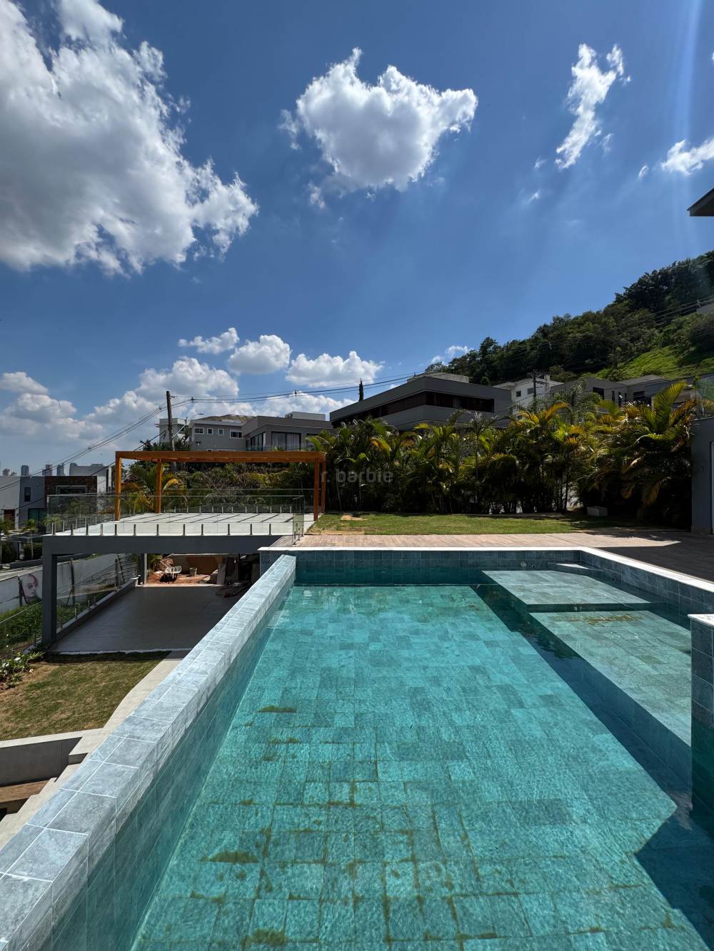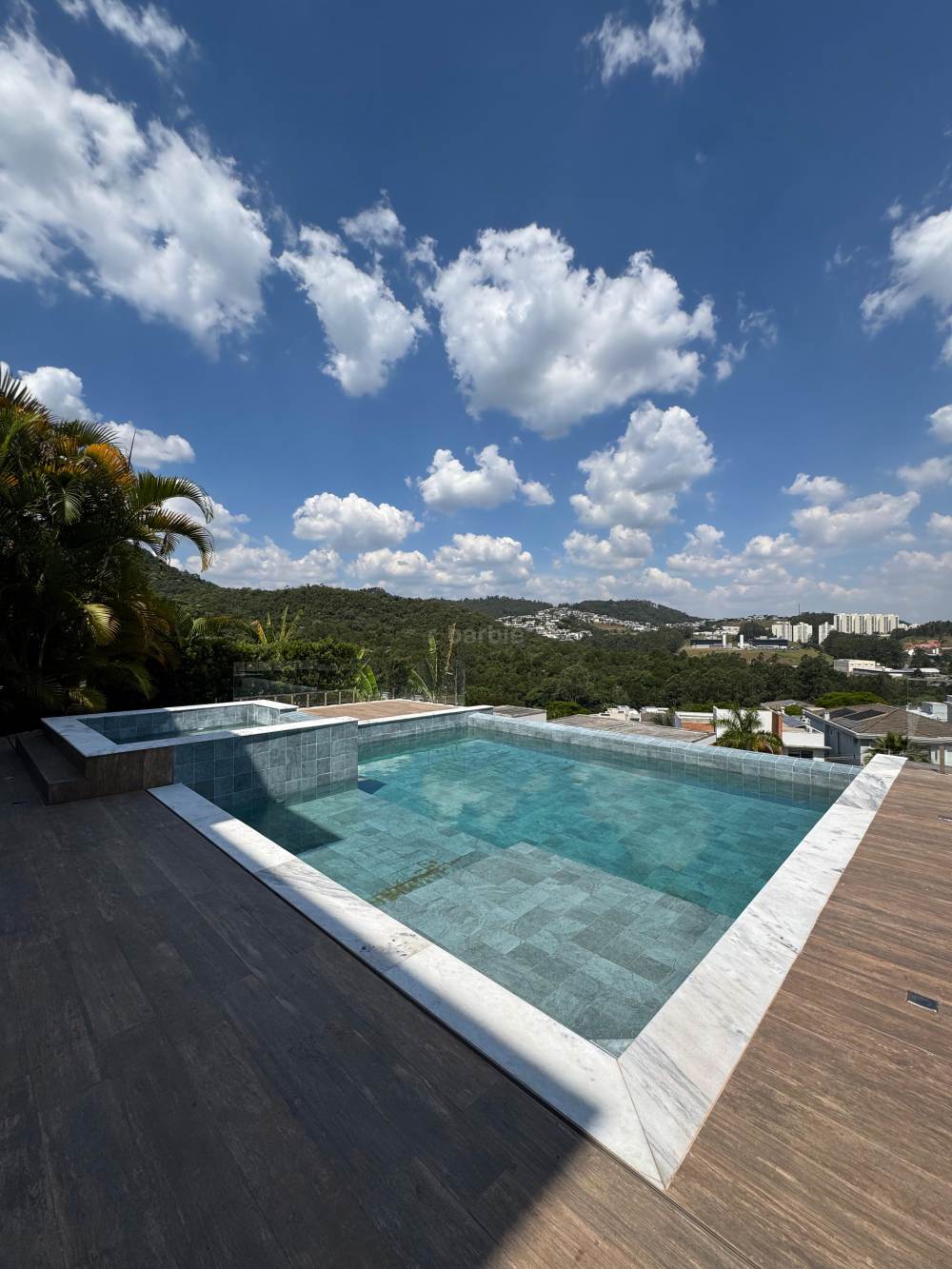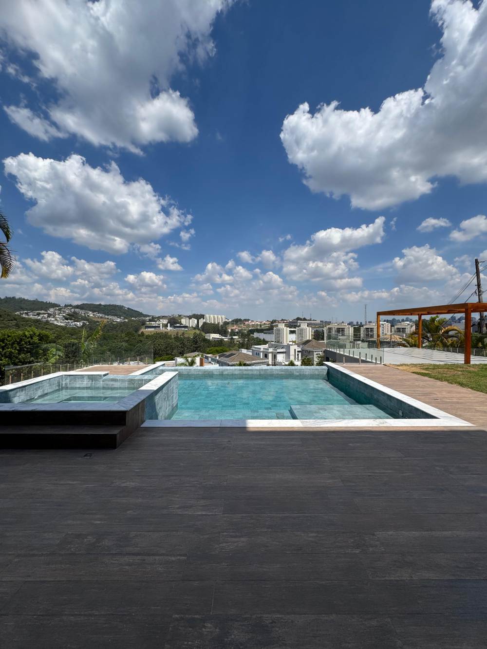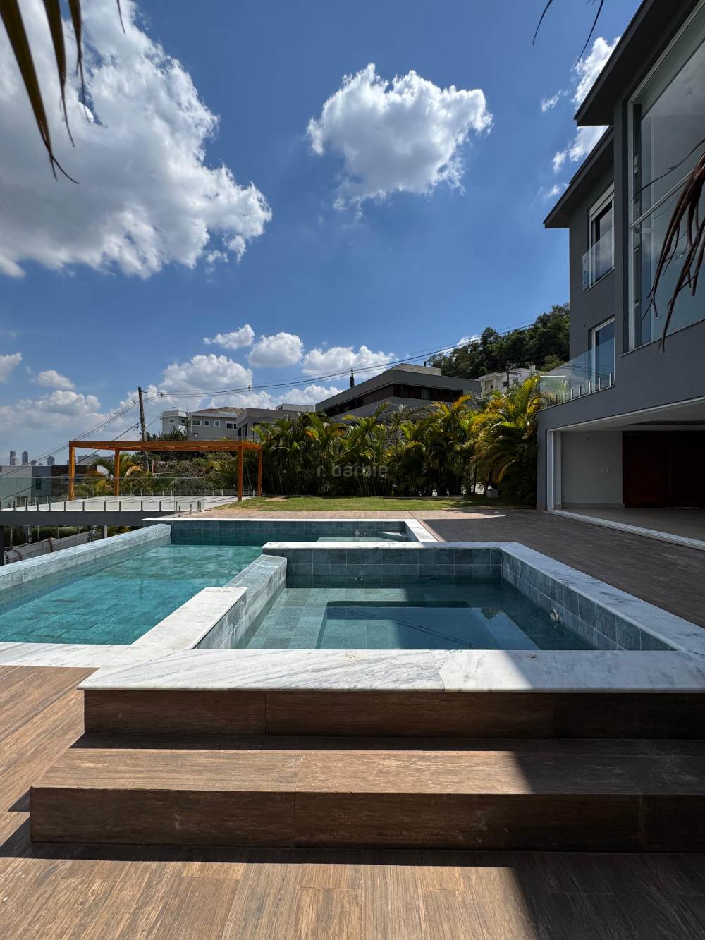 Casa com 5 suítes em Alphaville, 745 metros de terreno e 570 metros de área construída, living para 3 ambientes integrado, escritório, home teather, cozinha com armários planejados e ilha, lavanderia, despensa, 8 banheiros, área gourmet com churrasqueira e forno de pizza integrado ao salão de festa que possui entrada independente, piscina borda infinita com hidro, pergolado, deck, fire pit, sauna, vista panorâmica e garagem para 4 carros.