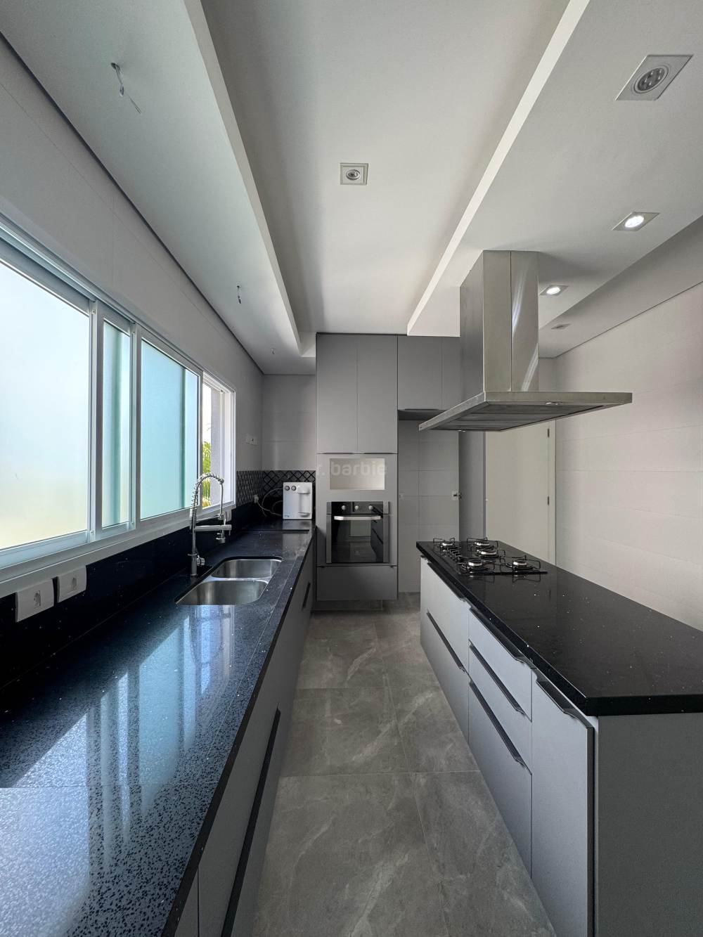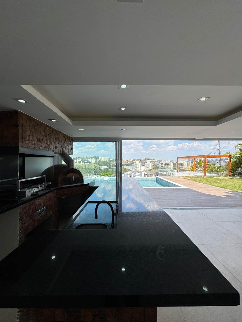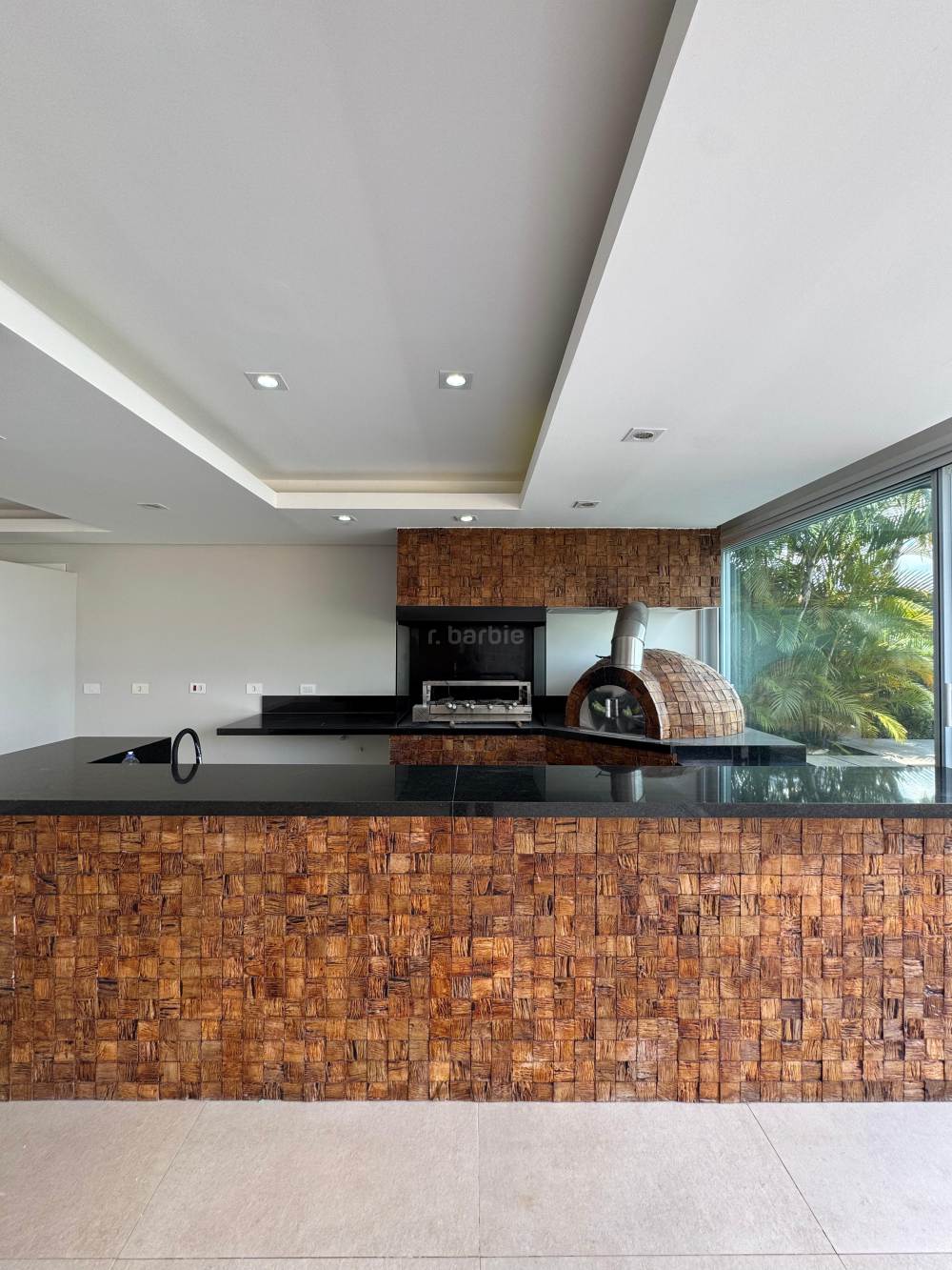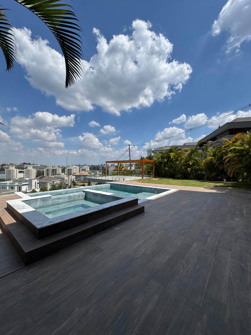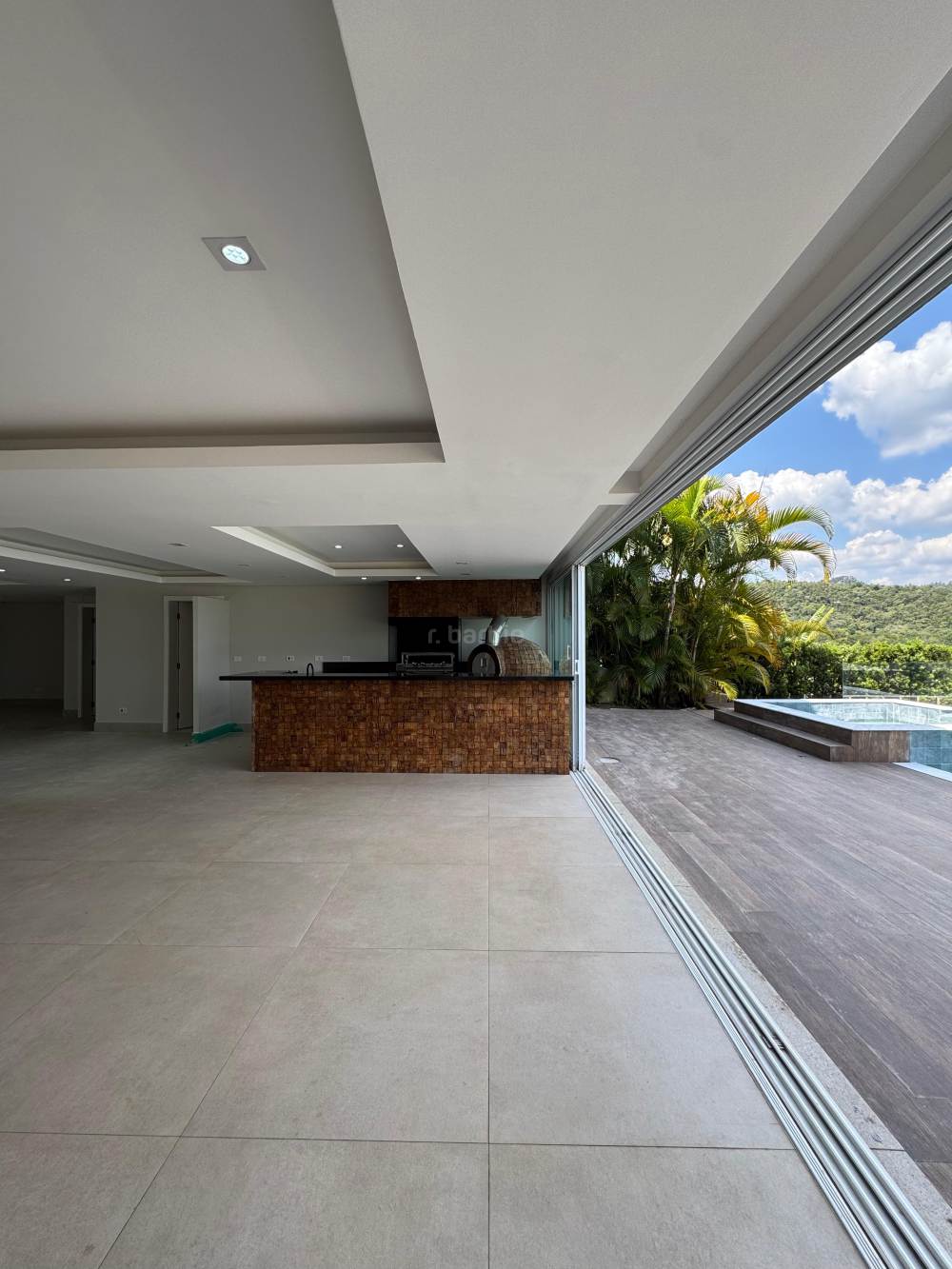 Casa com 5 suítes em Alphaville, 745 metros de terreno e 570 metros de área construída, living para 3 ambientes integrado, escritório, home teather, cozinha com armários planejados e ilha, lavanderia, despensa, 8 banheiros, área gourmet com churrasqueira e forno de pizza integrado ao salão de festa que possui entrada independente, piscina borda infinita com hidro, pergolado, deck, fire pit, sauna, vista panorâmica e garagem para 4 carros.