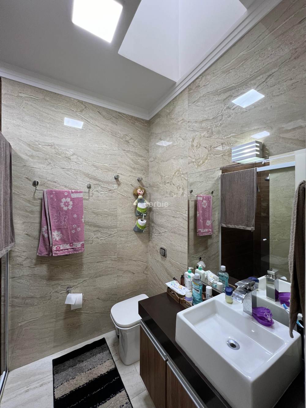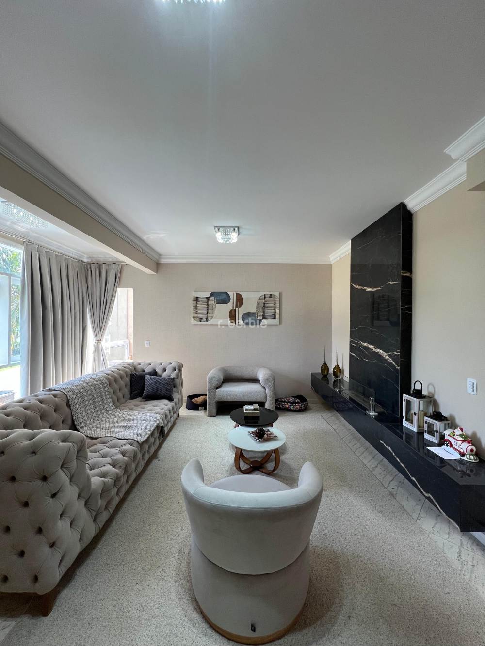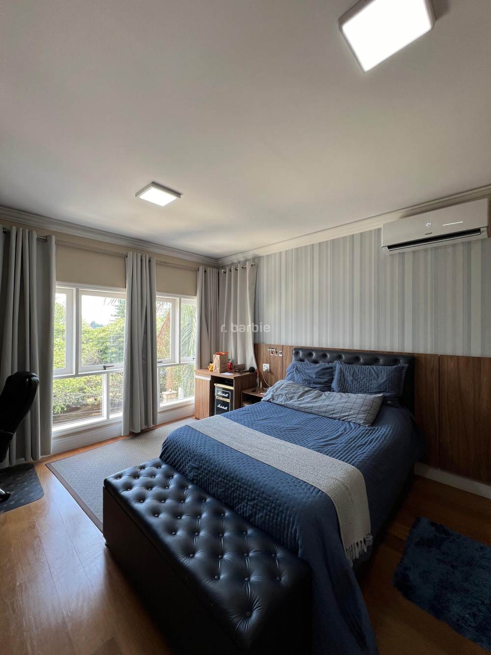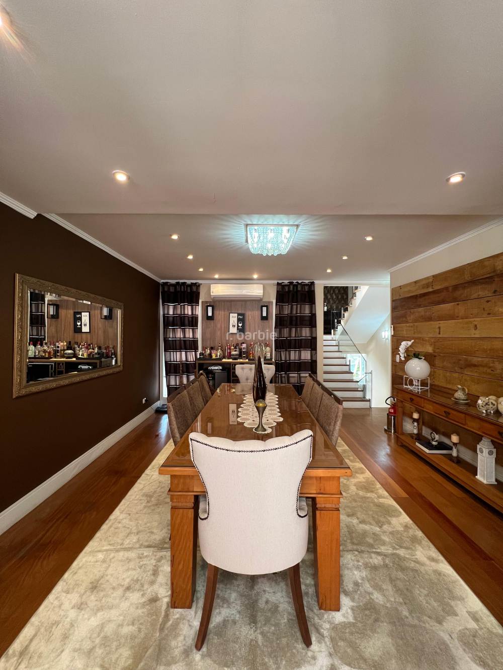 Casa em Alphaville com 5 suítes, 450 metros de terreno e 400 metros de área construída, living para 3 ambientes, cozinha ampla com armários planejados, escritório, adega, área gourmet com churrasqueira, piscina aquecida e 4 vagas de garagem.