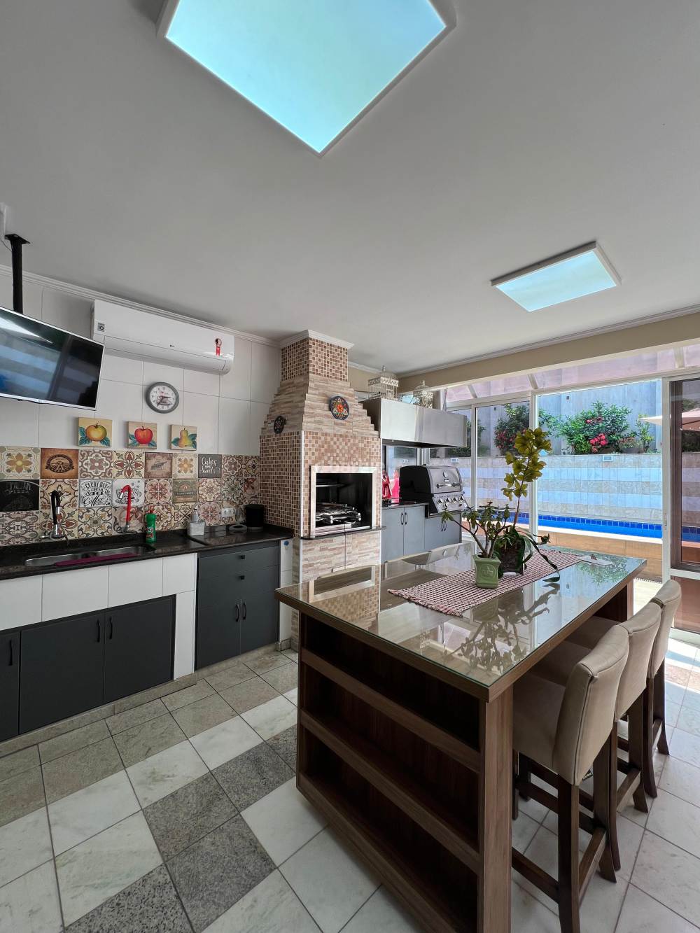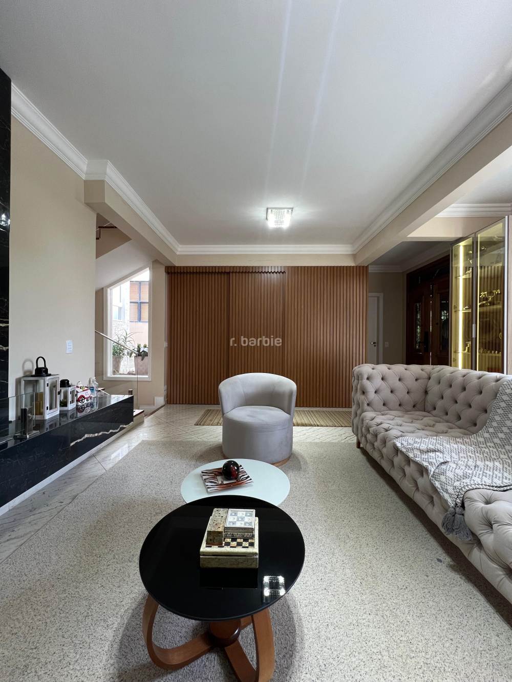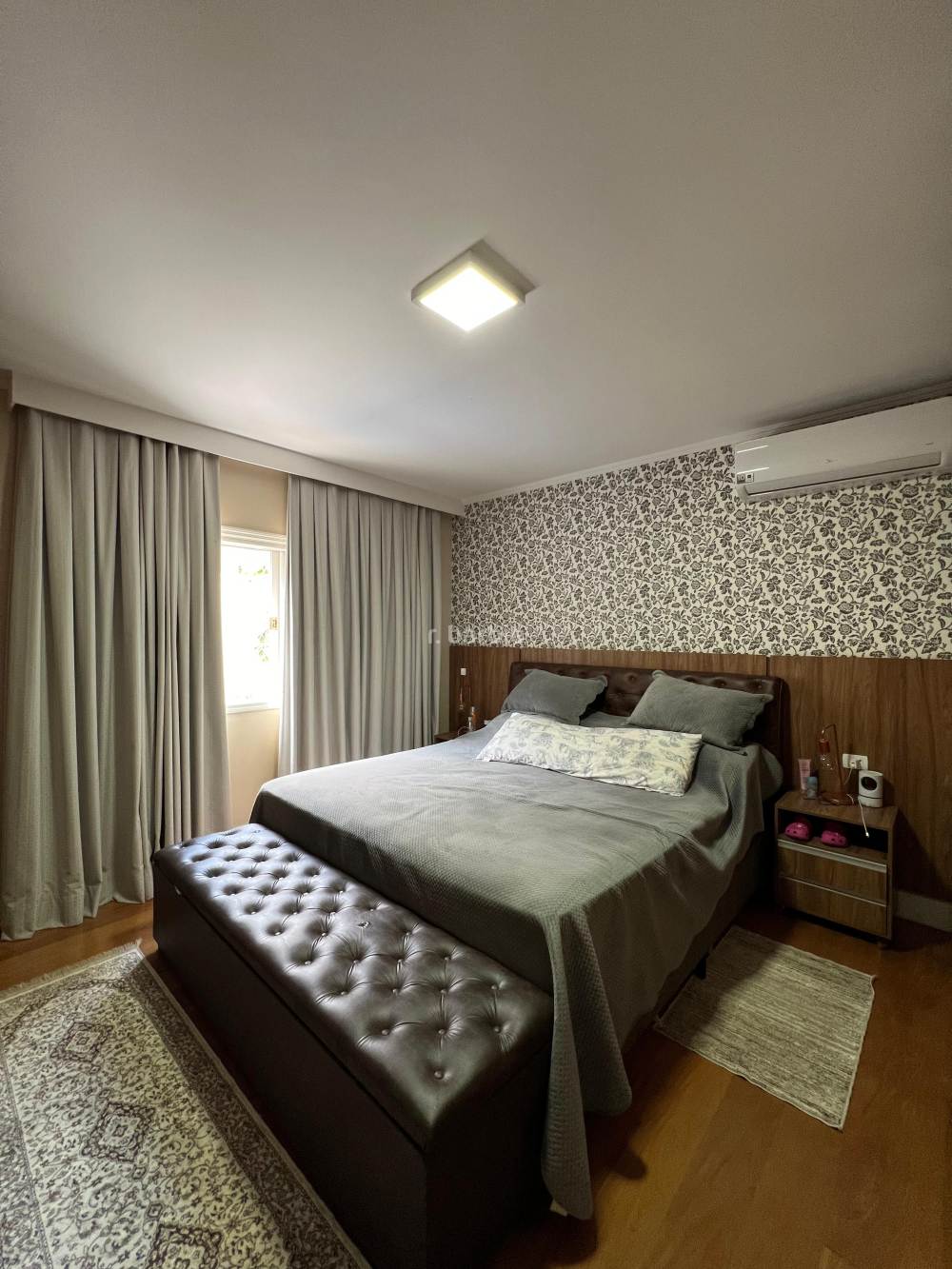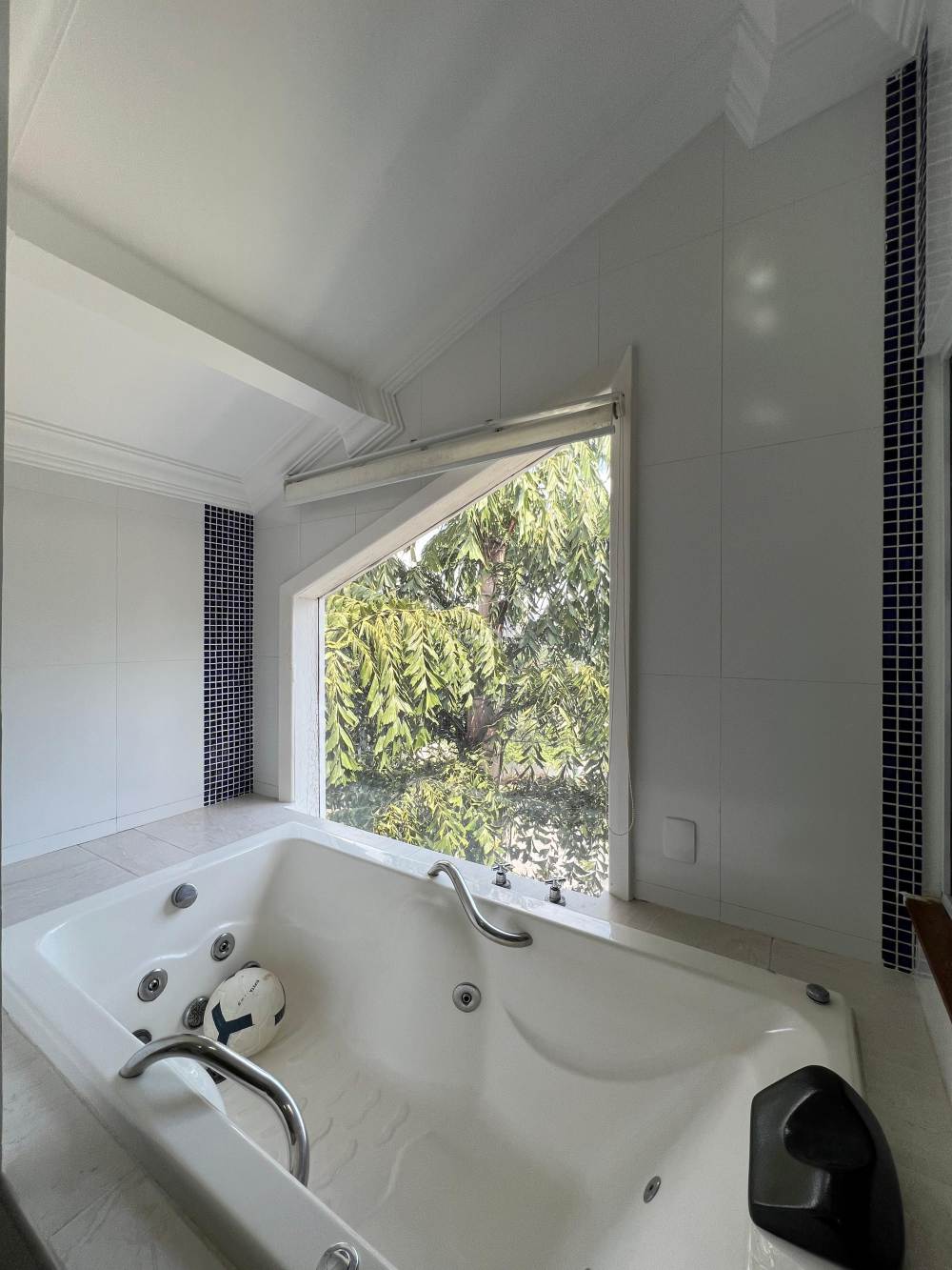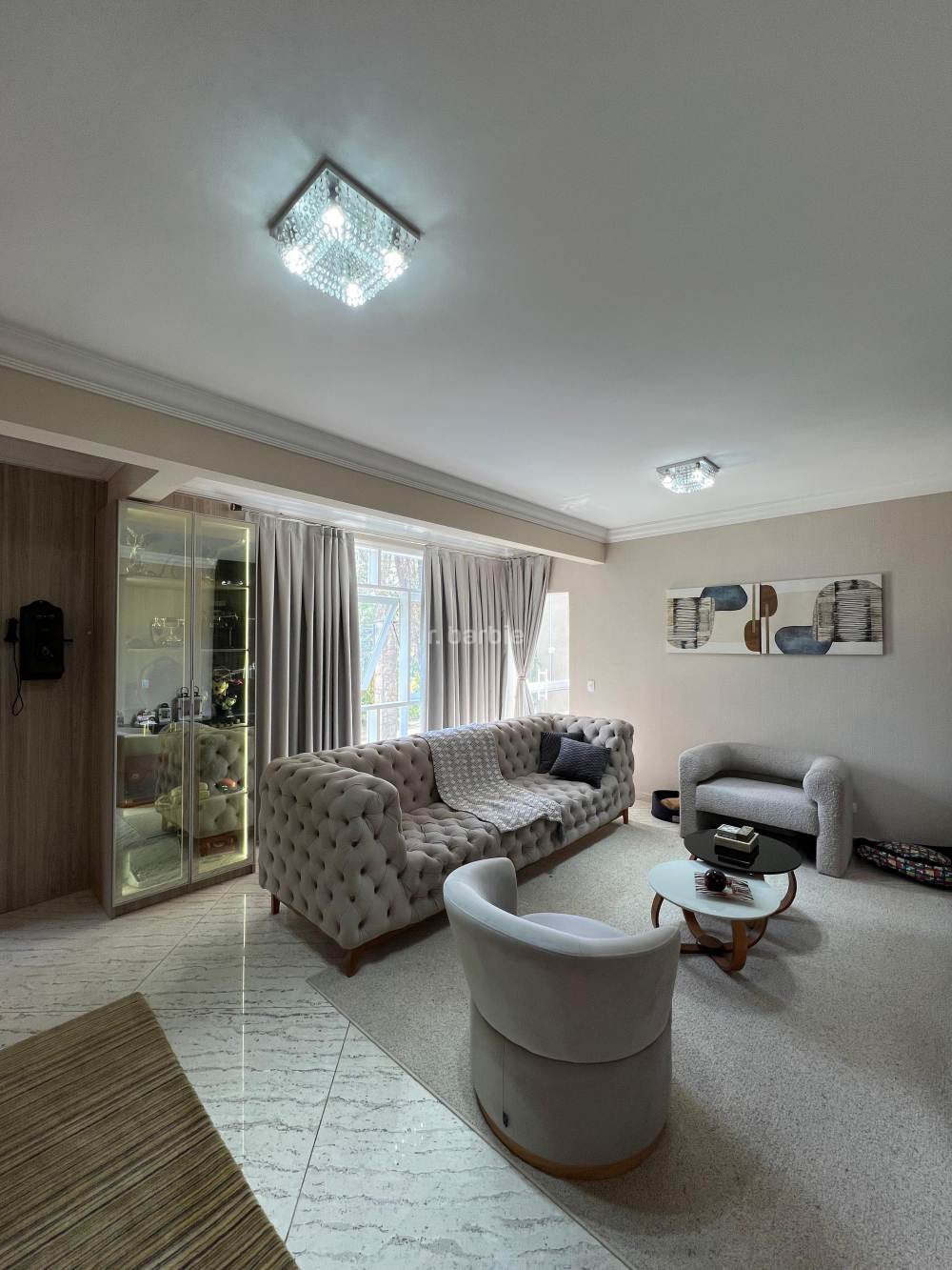 Casa em Alphaville com 5 suítes, 450 metros de terreno e 400 metros de área construída, living para 3 ambientes, cozinha ampla com armários planejados, escritório, adega, área gourmet com churrasqueira, piscina aquecida e 4 vagas de garagem.