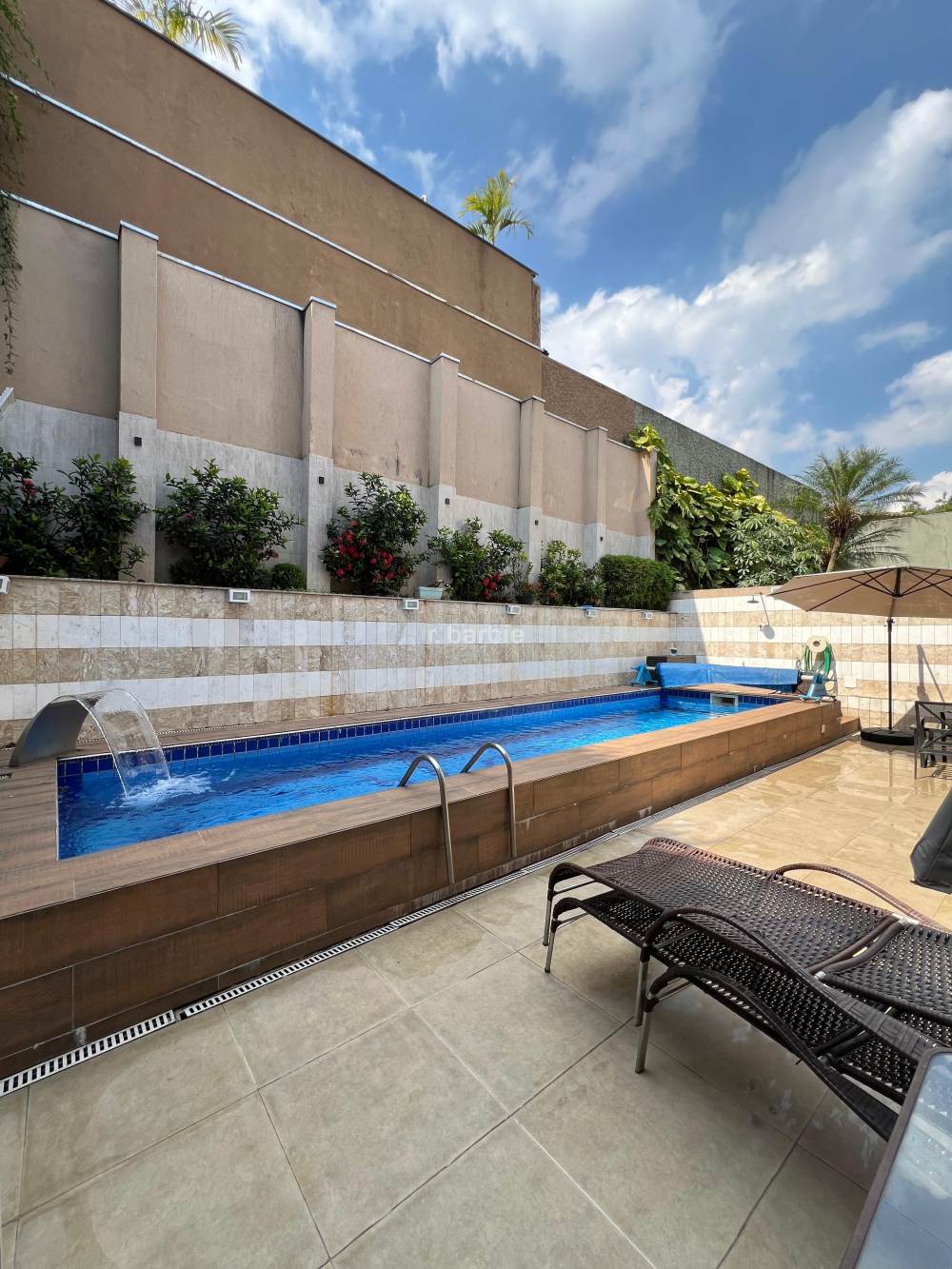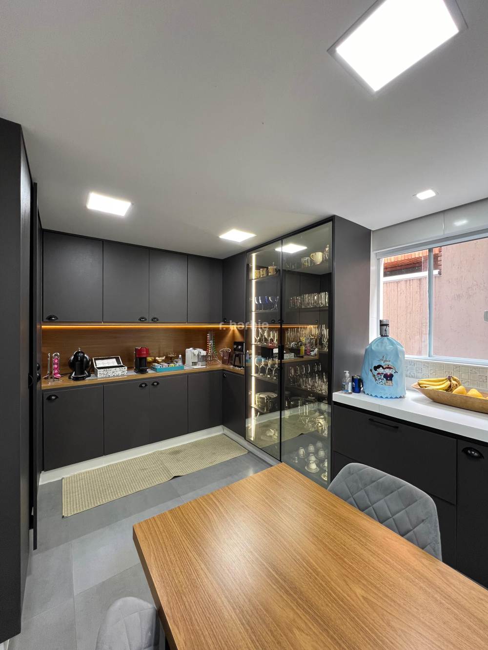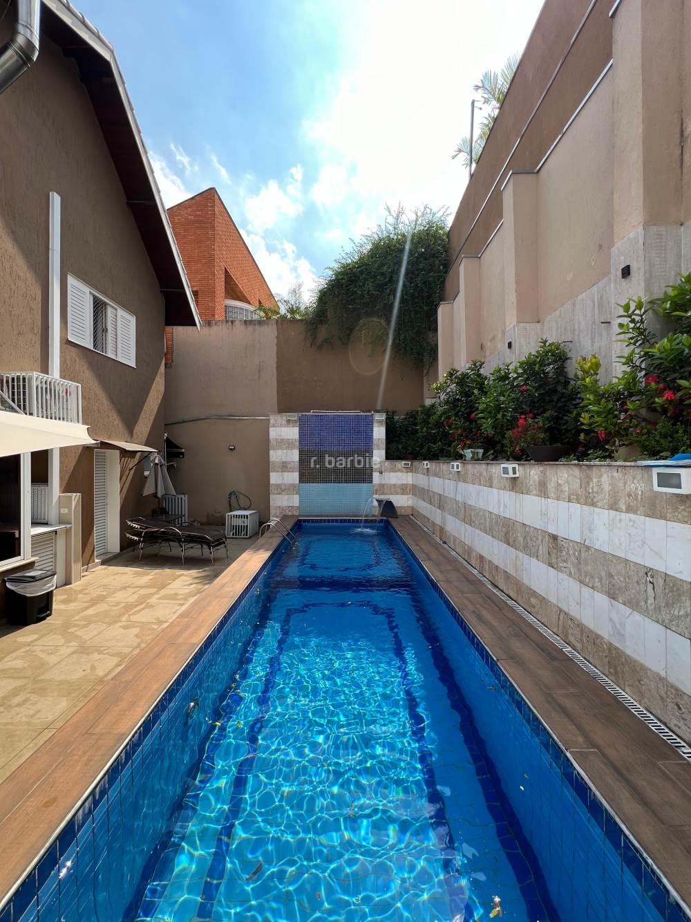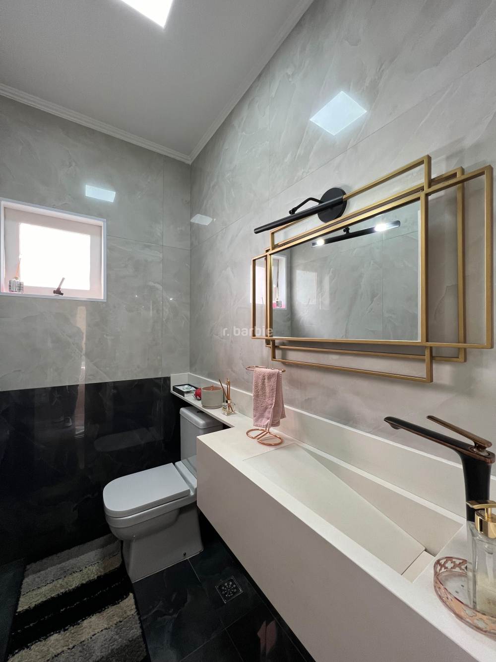 Casa em Alphaville com 5 suítes, 450 metros de terreno e 400 metros de área construída, living para 3 ambientes, cozinha ampla com armários planejados, escritório, adega, área gourmet com churrasqueira, piscina aquecida e 4 vagas de garagem.