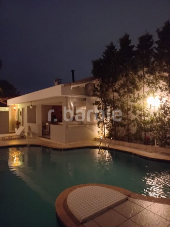 Casa com 540 metros de terreno e 520 metros de área construída, amplo living, 5 suítes, lareira, área gourmet com forno a lenha, piscina aquecida, salão e 6 vagas de garagem.