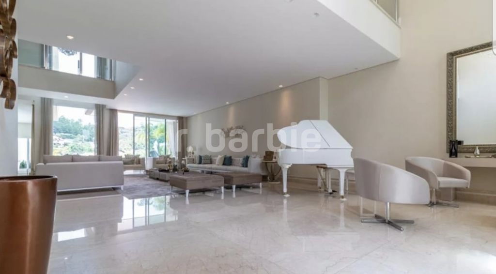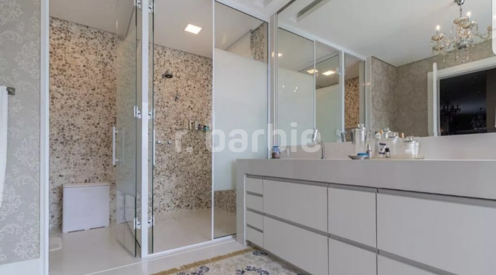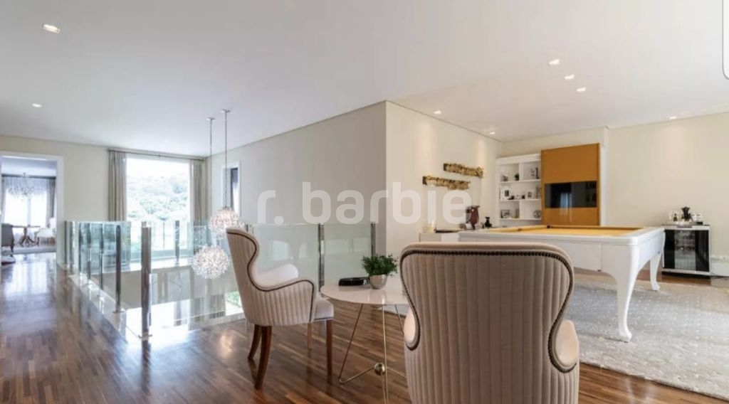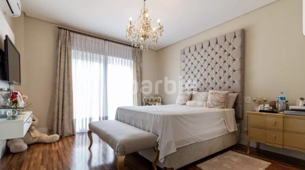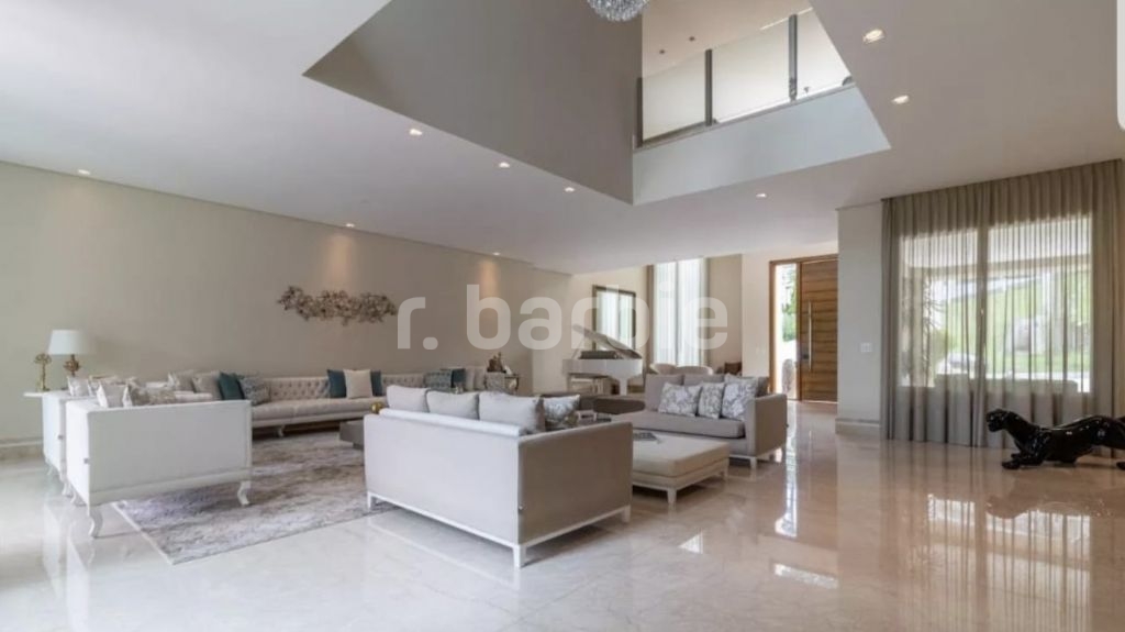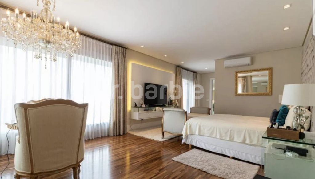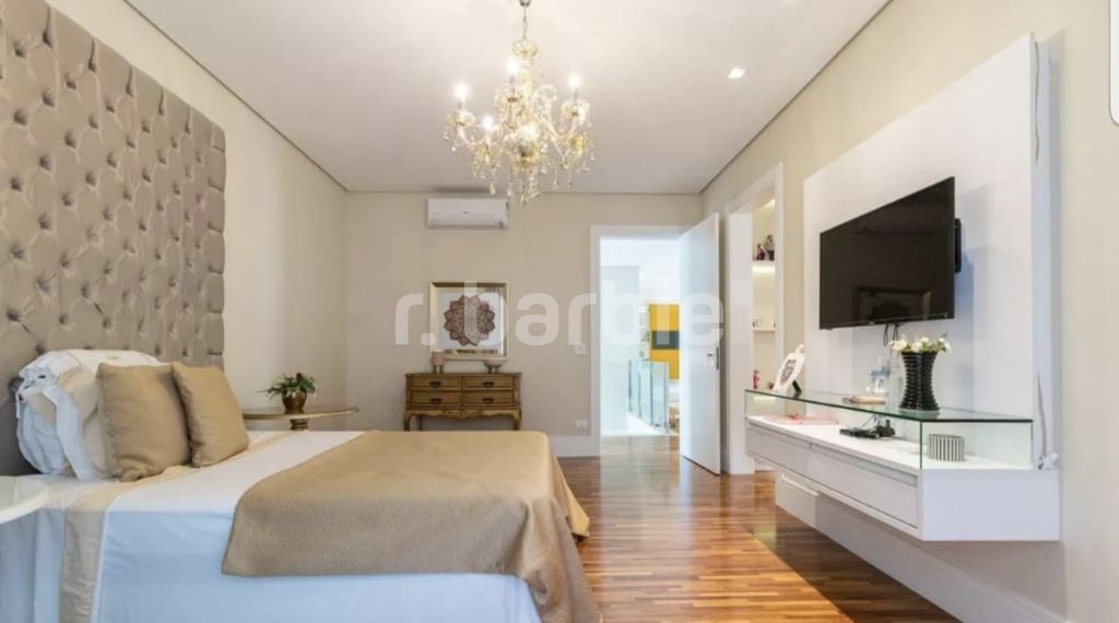 Casa mobiliada e decorada com 5 suítes em Alphaville, 835 metros de terreno e 740 metros de área construída, com uma frente de 18 metros, entrada com pé direito duplo, escritório, amplo living com piano de calda, área gourmet e piscina com borda infinita e deck, sala íntima e home theater, com infra estrutura para aquecimento solar e na piscina, aspiração central, captação de água de chuva para 10.000 litros, iluminação projetada e 4 vagas de garagem.