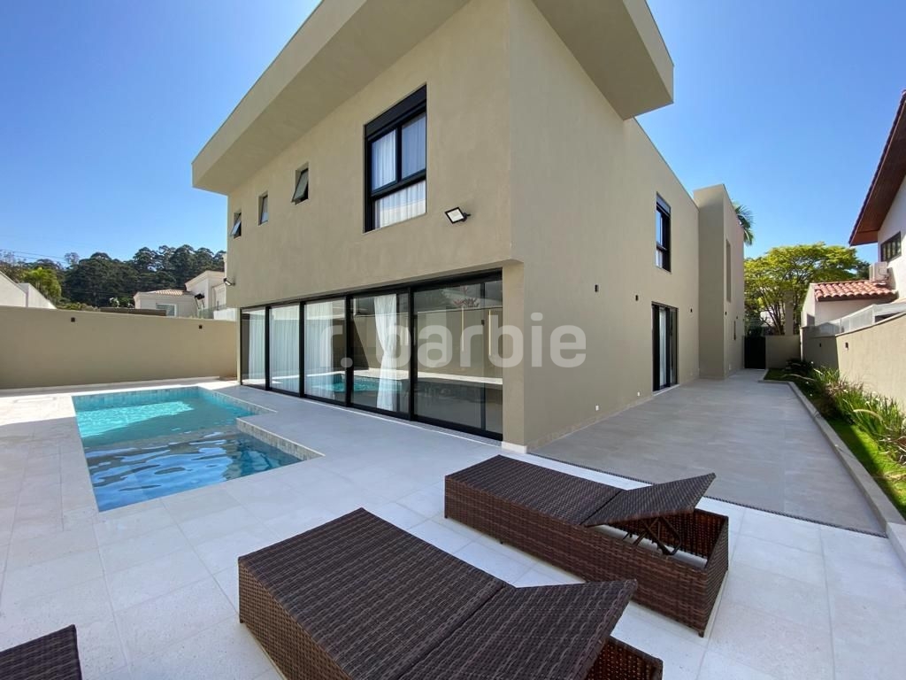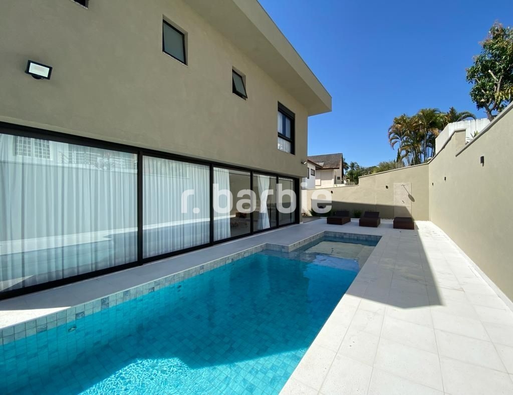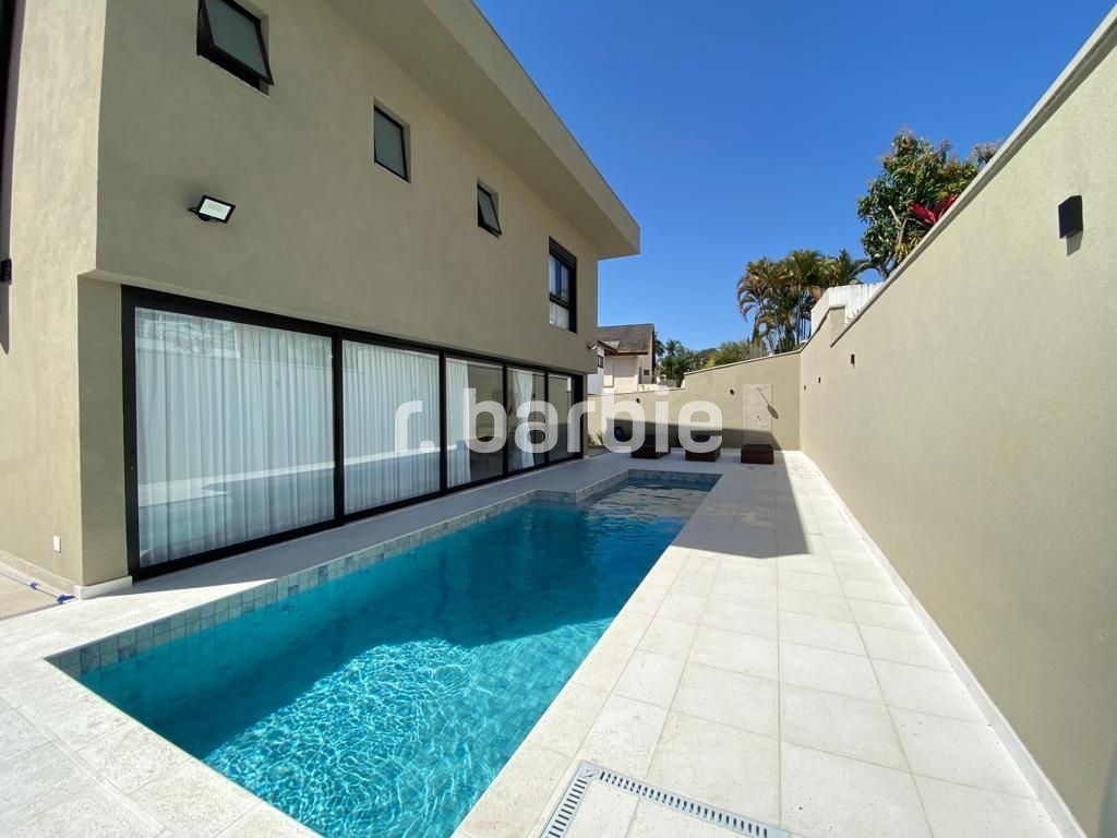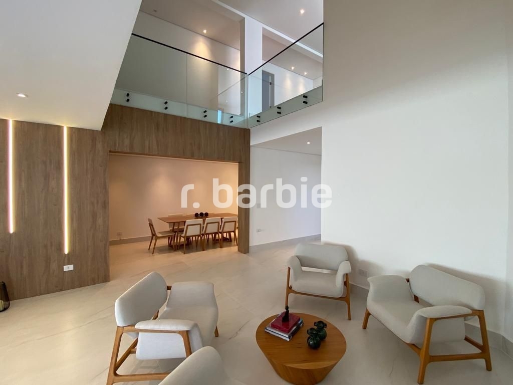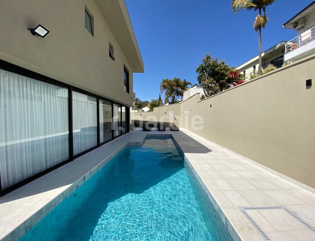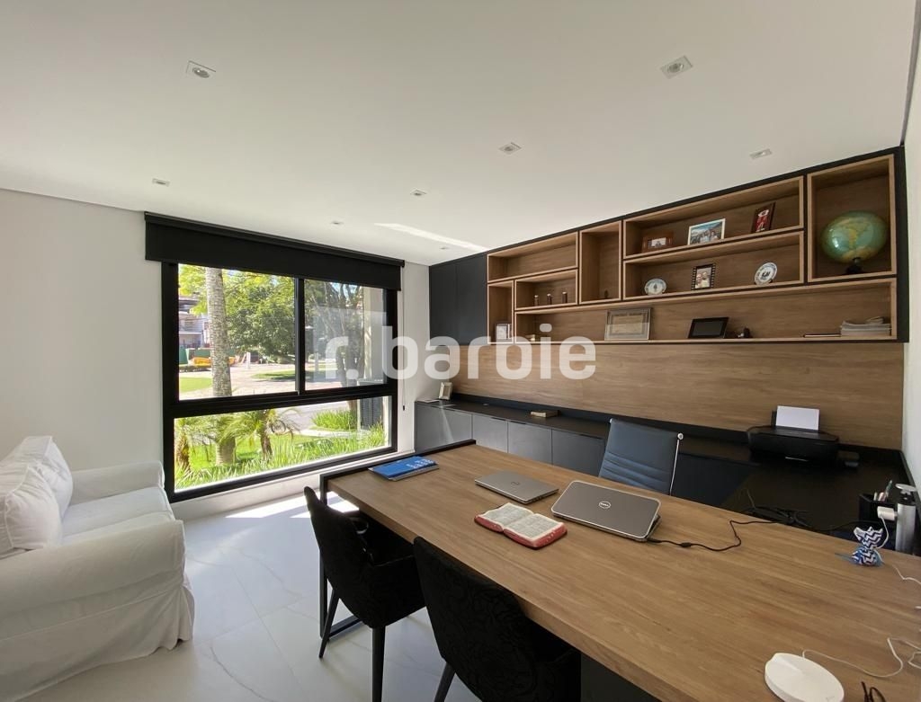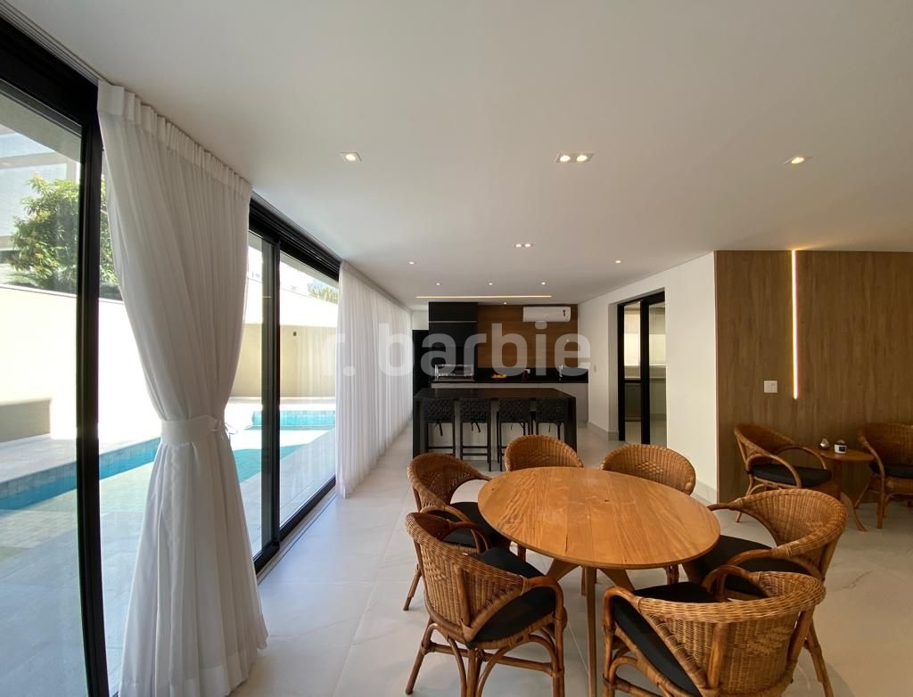 Belíssima casa com 610 metros de terreno e 548 metros de área construída sendo 5 suítes, suíte master com amplo closet, living para 4 ambientes, acabamentos de extremo bom gosto, pé direto duplo, home, escritório, dependência de empregada, projeto de iluminação, ar condicionado, excelente localização dentro do condomínio, área gourmet integrada com a piscina aquecida e 6 vagas de garagem.