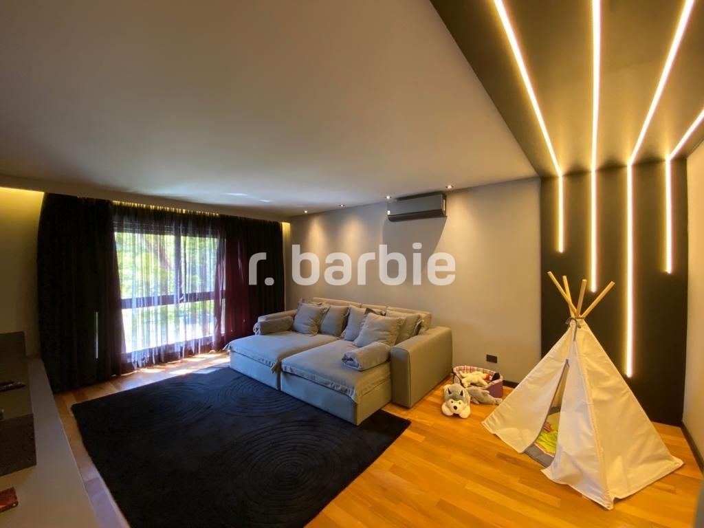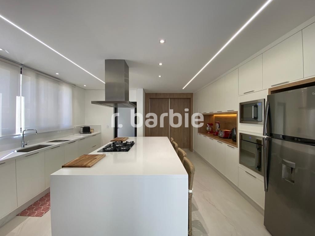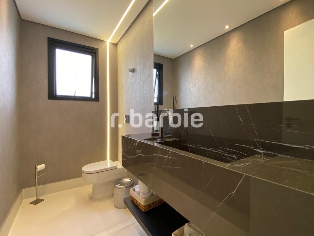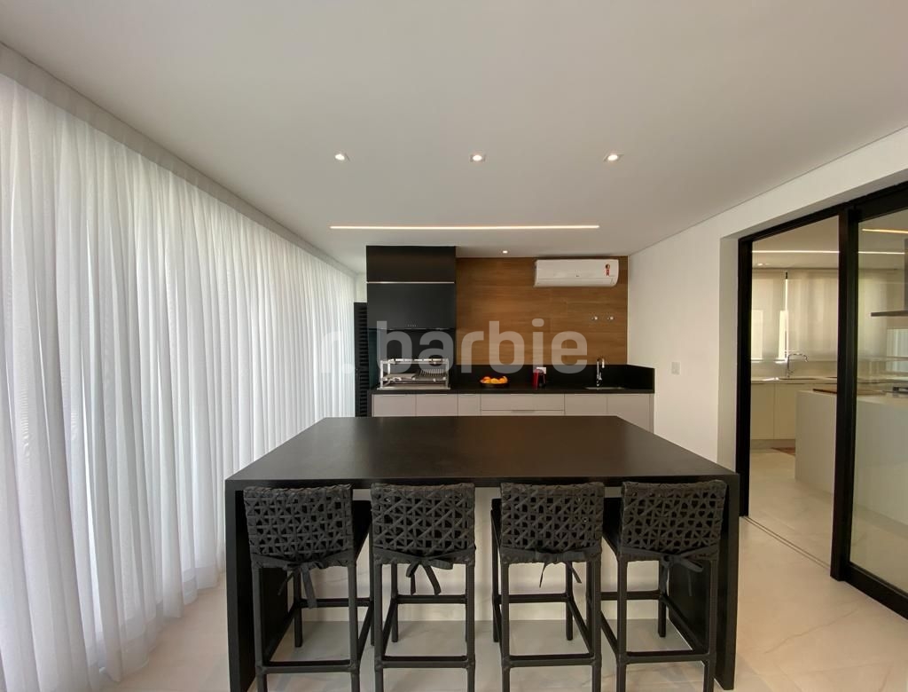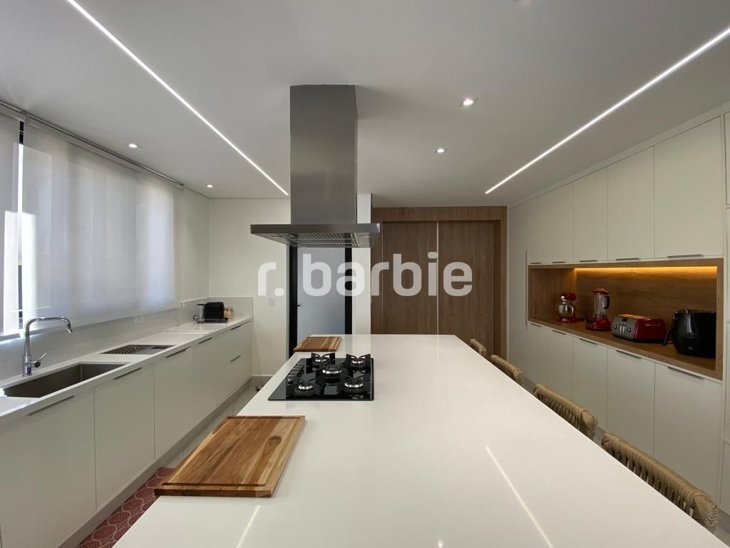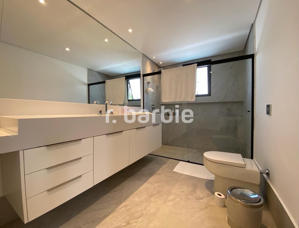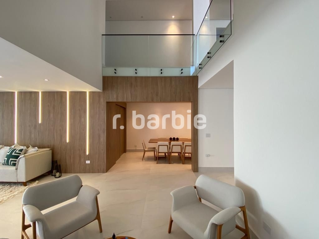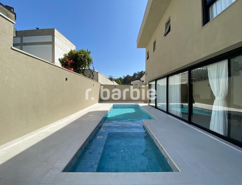 Belíssima casa com 610 metros de terreno e 548 metros de área construída sendo 5 suítes, suíte master com amplo closet, living para 4 ambientes, acabamentos de extremo bom gosto, pé direto duplo, home, escritório, dependência de empregada, projeto de iluminação, ar condicionado, excelente localização dentro do condomínio, área gourmet integrada com a piscina aquecida e 6 vagas de garagem.