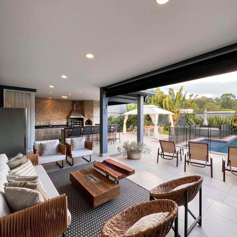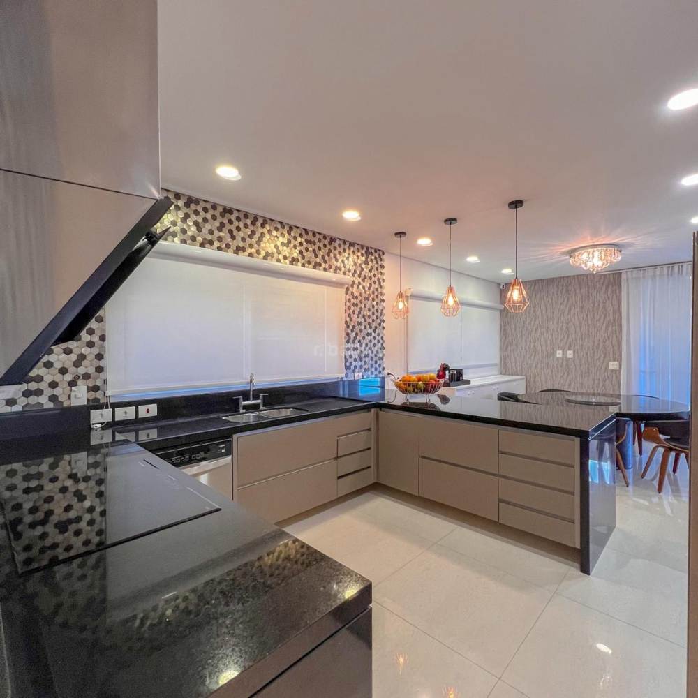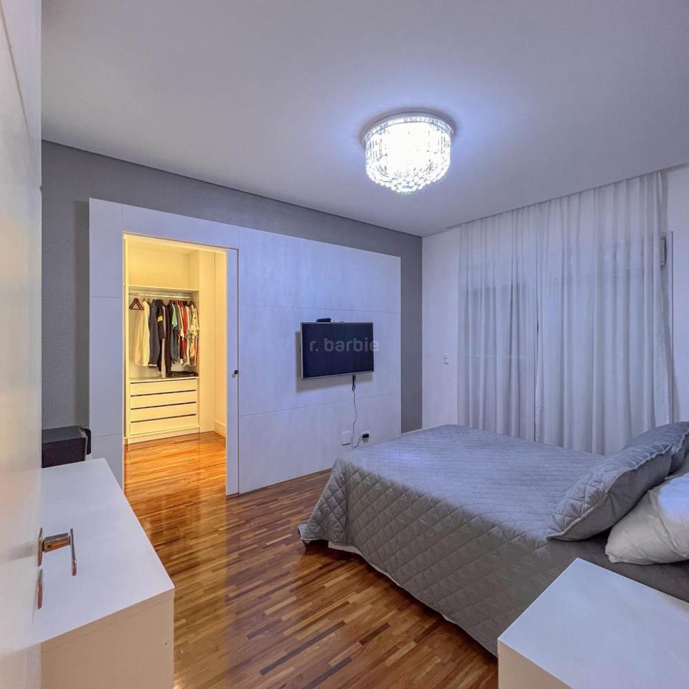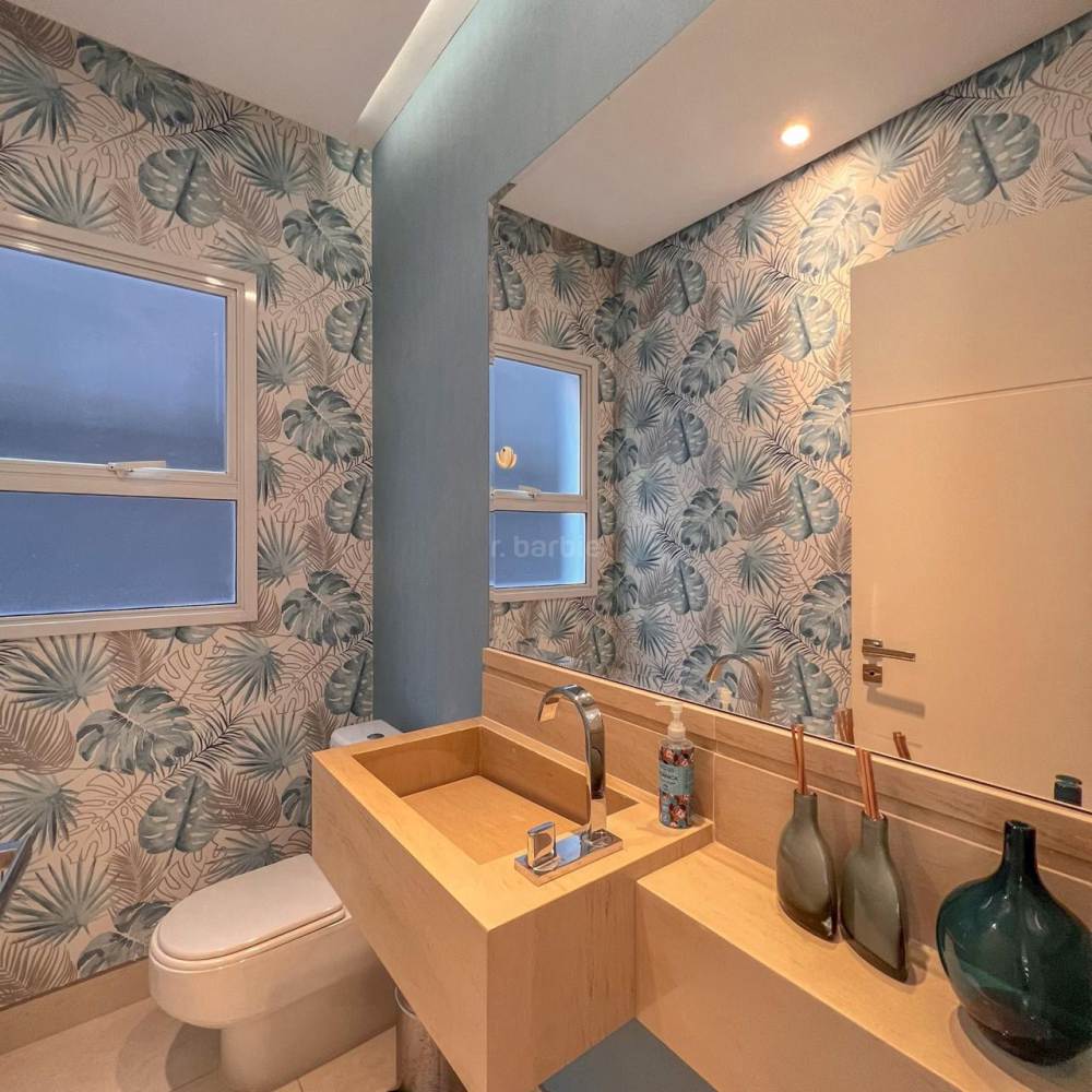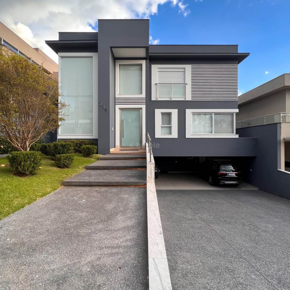 Casa mobiliada em Alphaville, 5 suítes sendo master com hidromassagem e varanda privativa, 598 metros de terreno e 515 metros de área construída, living integrado para 3 ambientes, cozinha ampla com armários planejados e eletrodomésticos, lavanderia, lavabo, dormitório para prestador de serviço, área gourmet com churrasqueira e forno de pizza, piscina com deck, sauna e garagem para 4 carros.