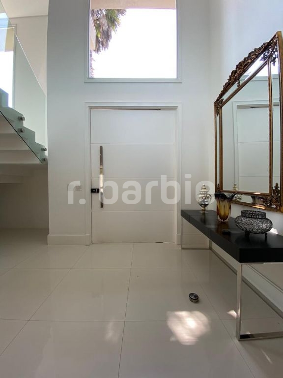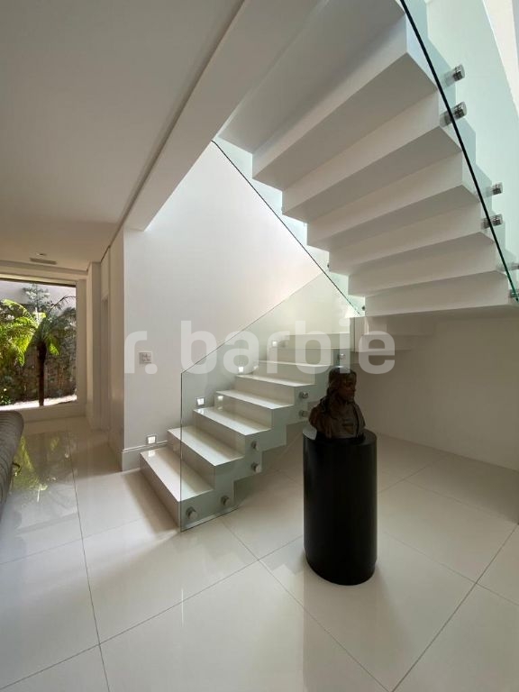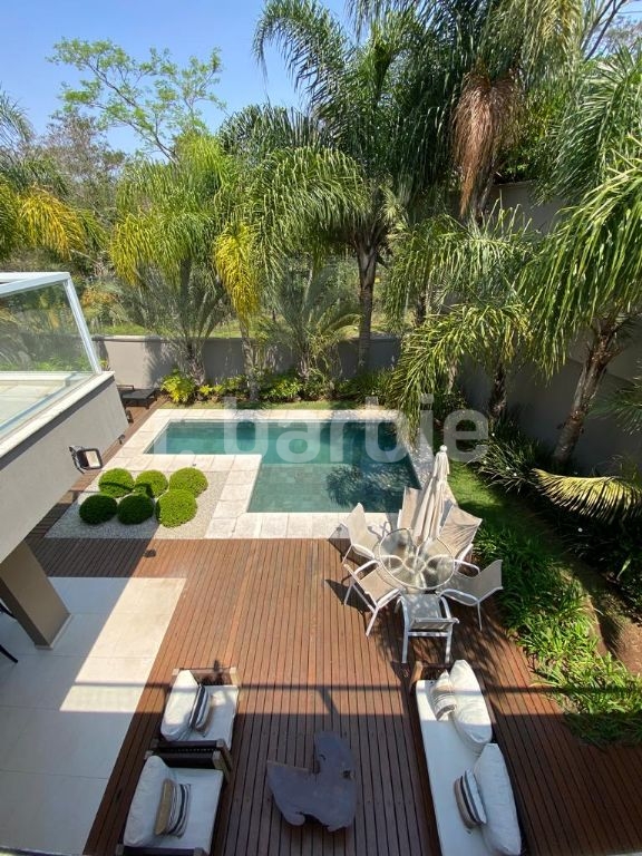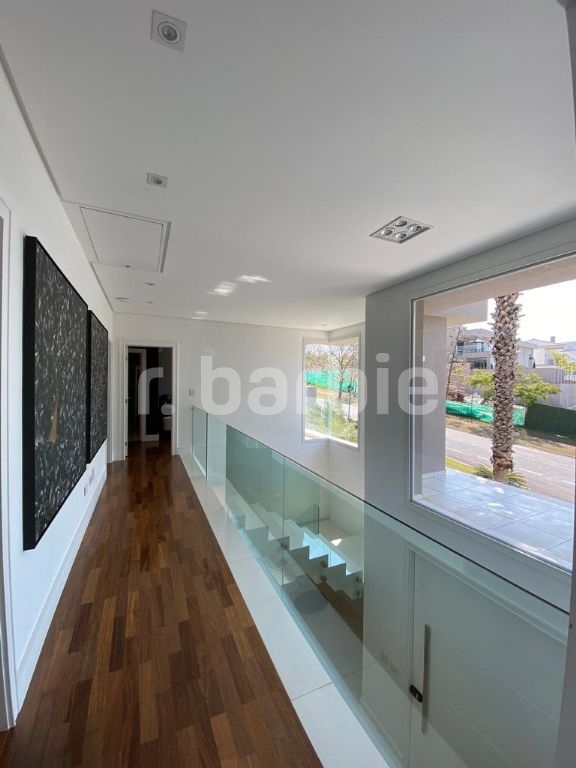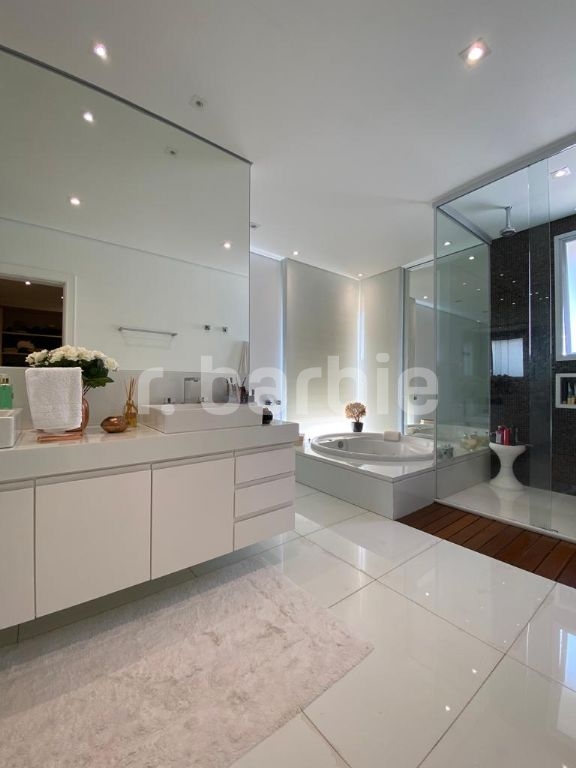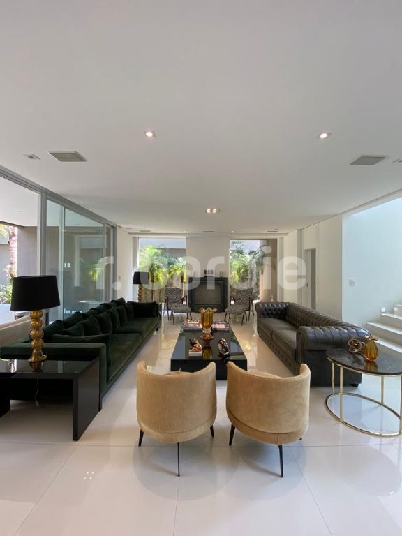 Belíssima casa com linda vista para reserva, com 672 metros de terreno e 460 metros de área construída, sendo 5 suítes todas com ar condicionado sendo uma suíte no piso térreo, podendo reverter para escritório, suíte master com amplo closet e banheira de hidromassagem, living para 4 ambientes todos integrados, área gourmet integrando os ambientes, piscina com deck, lareira, lavabo, suíte de empregada e 6 vagas de garagem.