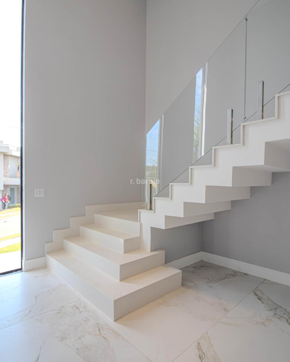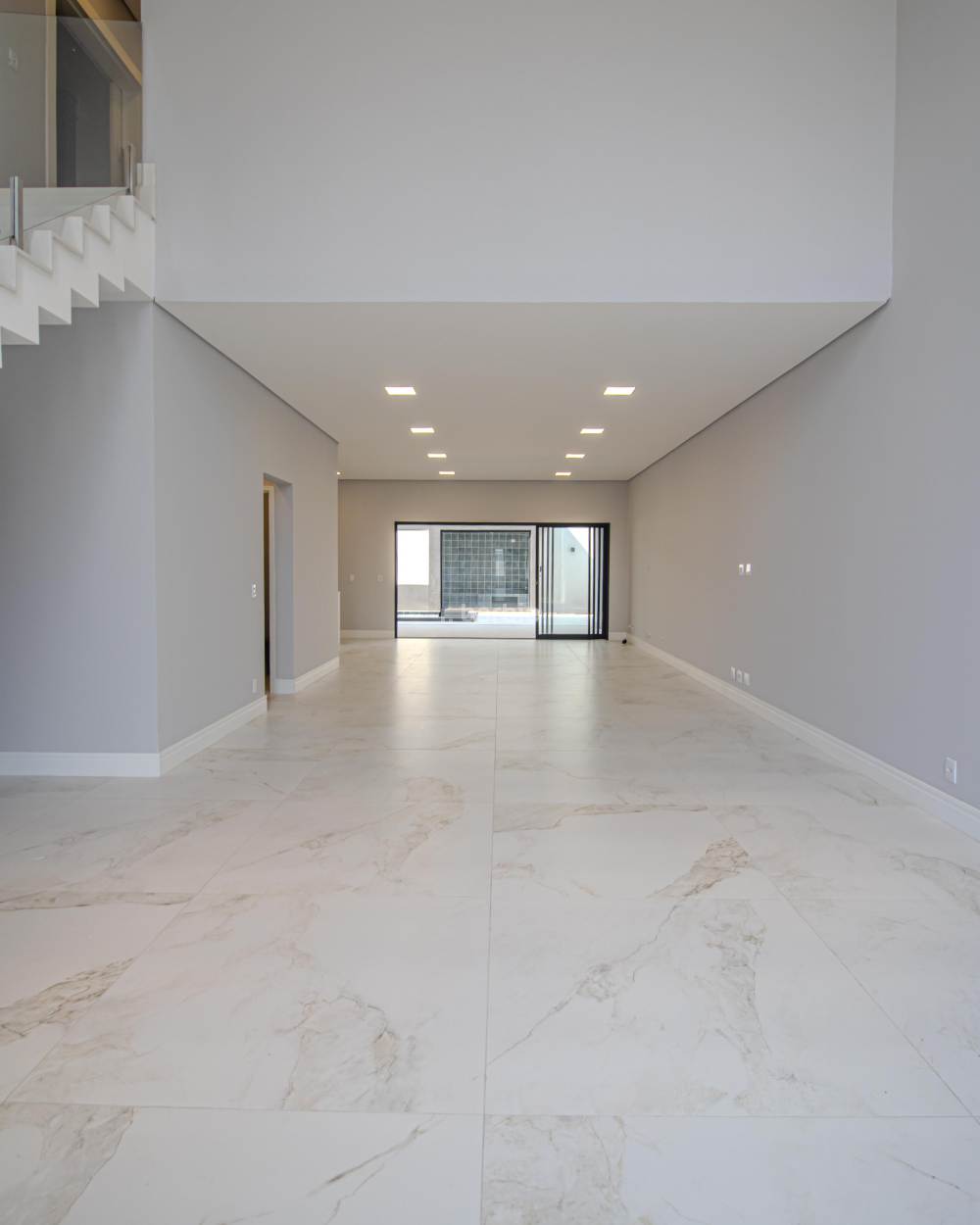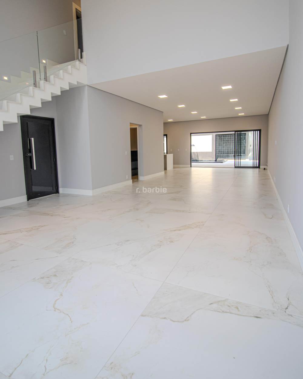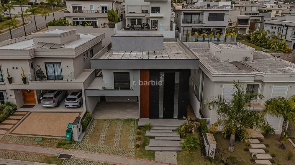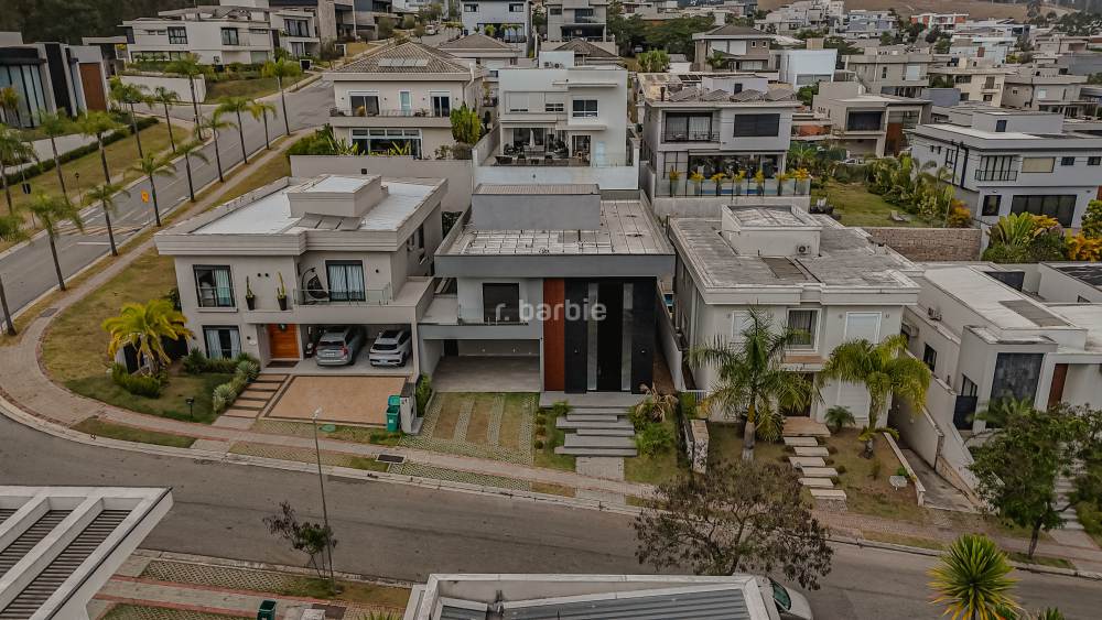 Casa recém construída com 5 suítes sendo 1 térrea em Aphaville, 420 metros de terreno e 392 metros de área construída, living integrado para 3 ambientes, cozinha ampla com ilha, lavanderia, lavabo, despensa, área gourmet com churrasqueira, piscina, sauna e garagem para 4 carros.