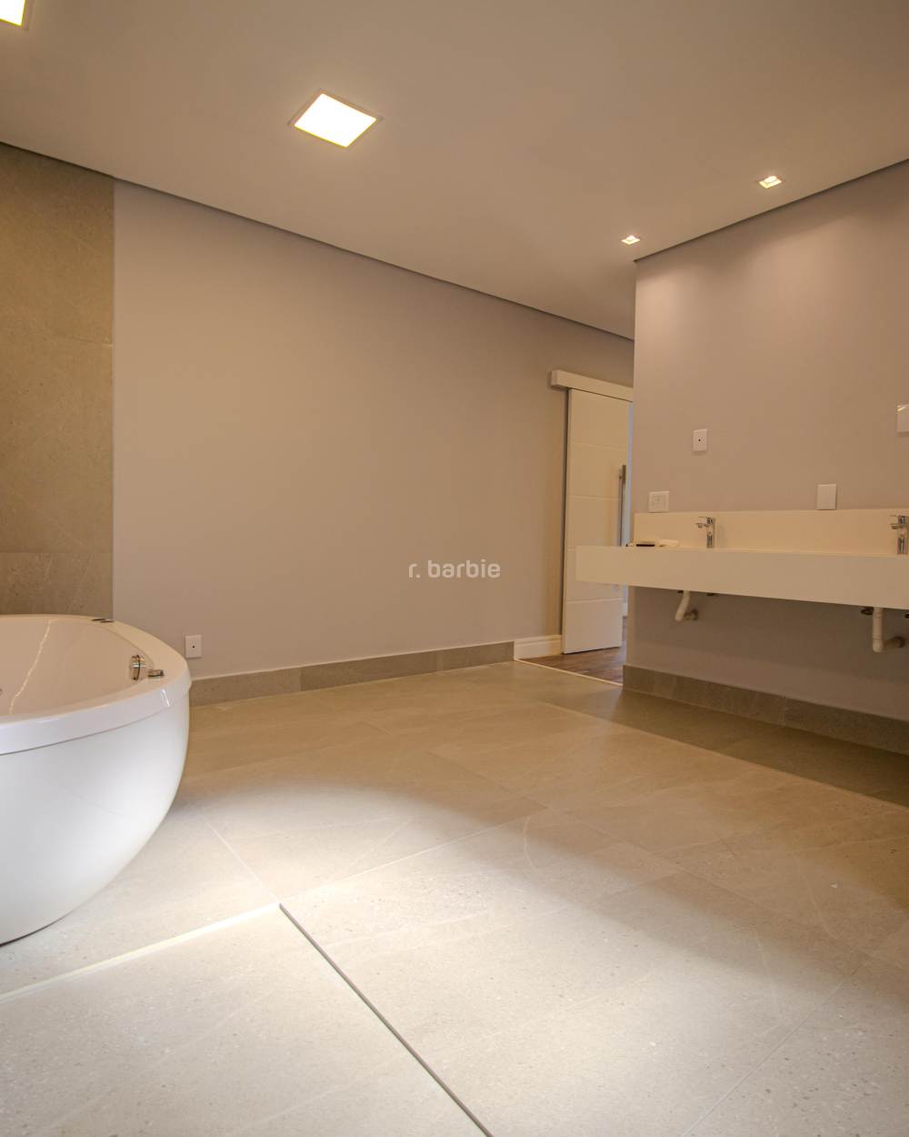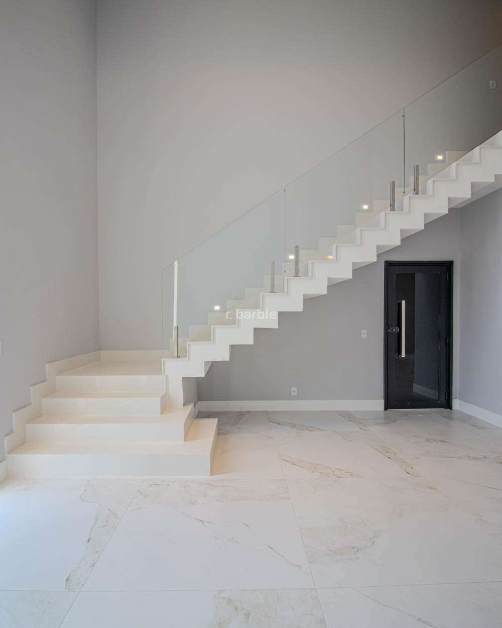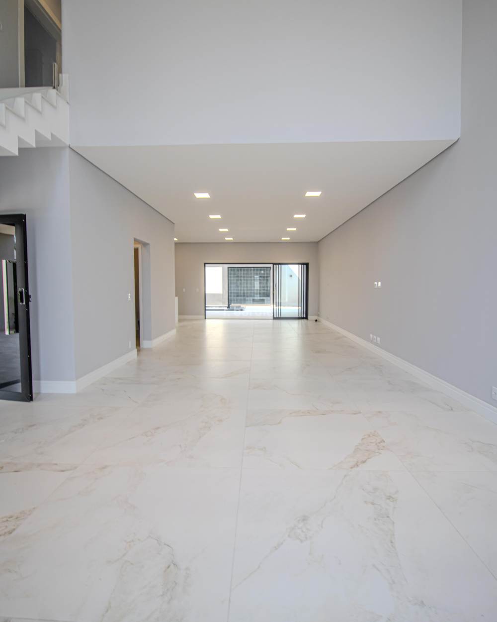 Casa recém construída com 5 suítes sendo 1 térrea em Aphaville, 420 metros de terreno e 392 metros de área construída, living integrado para 3 ambientes, cozinha ampla com ilha, lavanderia, lavabo, despensa, área gourmet com churrasqueira, piscina, sauna e garagem para 4 carros.