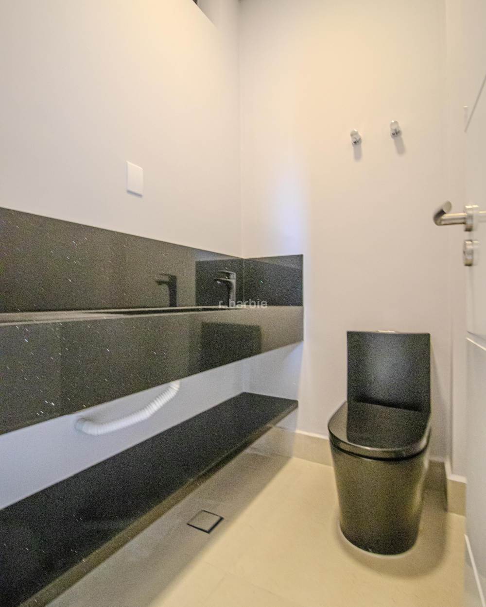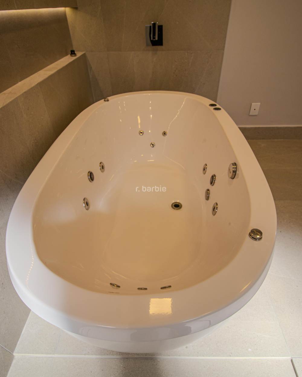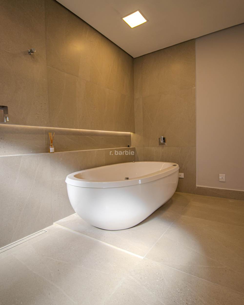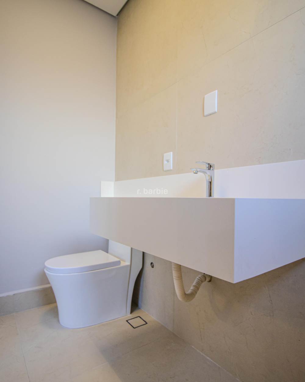 Casa recém construída com 5 suítes sendo 1 térrea em Aphaville, 420 metros de terreno e 392 metros de área construída, living integrado para 3 ambientes, cozinha ampla com ilha, lavanderia, lavabo, despensa, área gourmet com churrasqueira, piscina, sauna e garagem para 4 carros.
